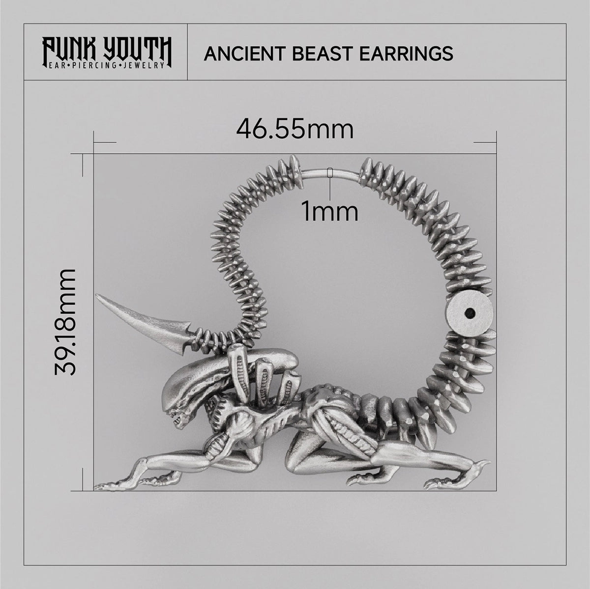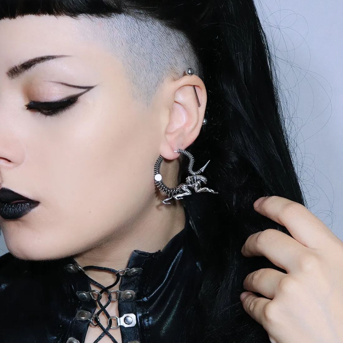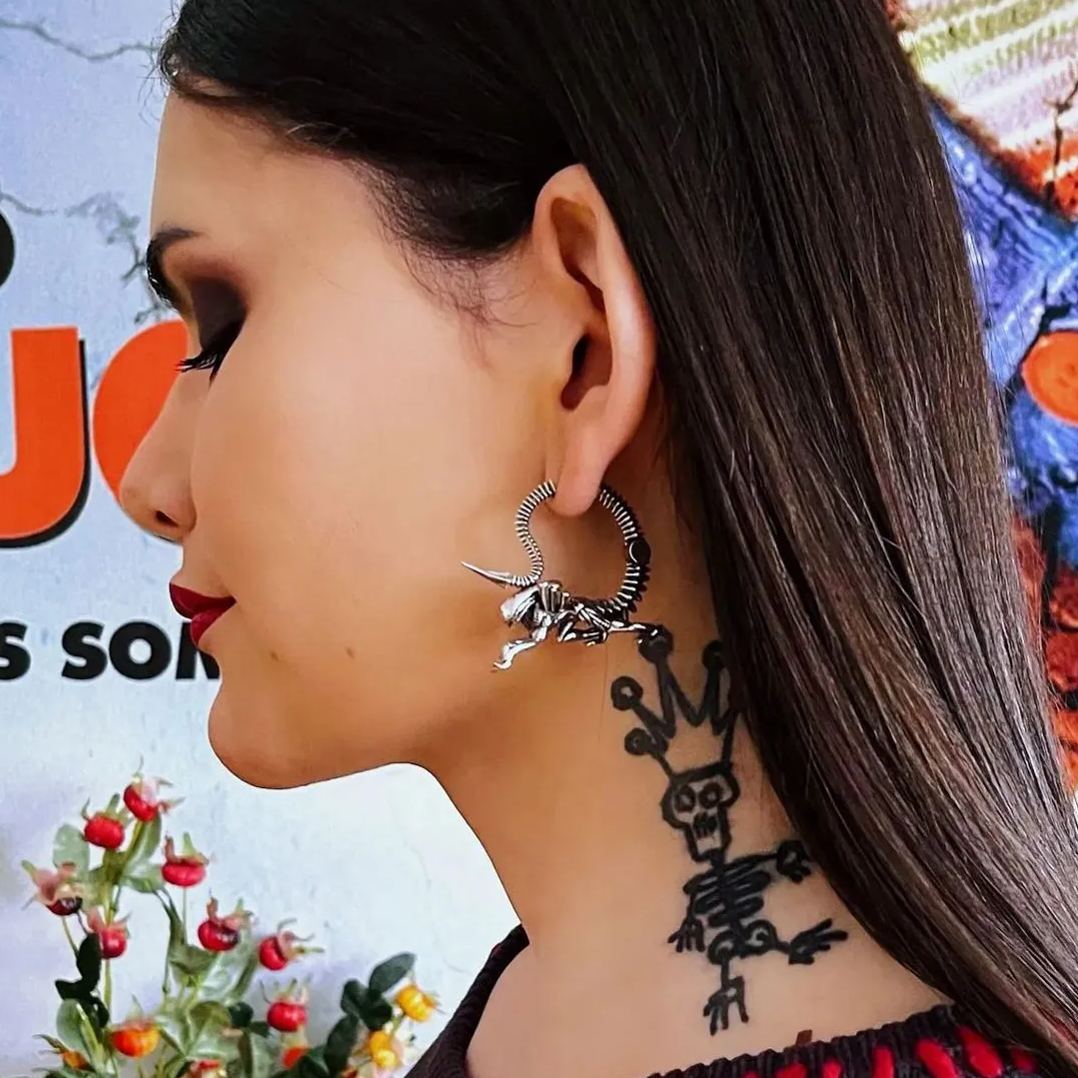 Drawing inspiration from sci-fi movies and biomechanical art, these earrings blend futuristic elements with organic forms.