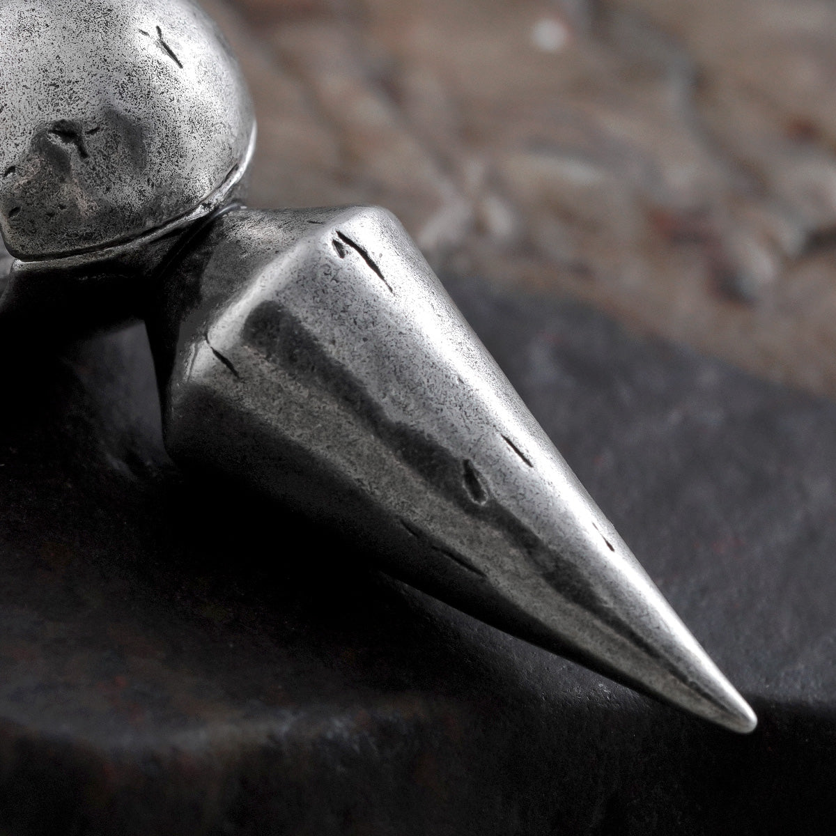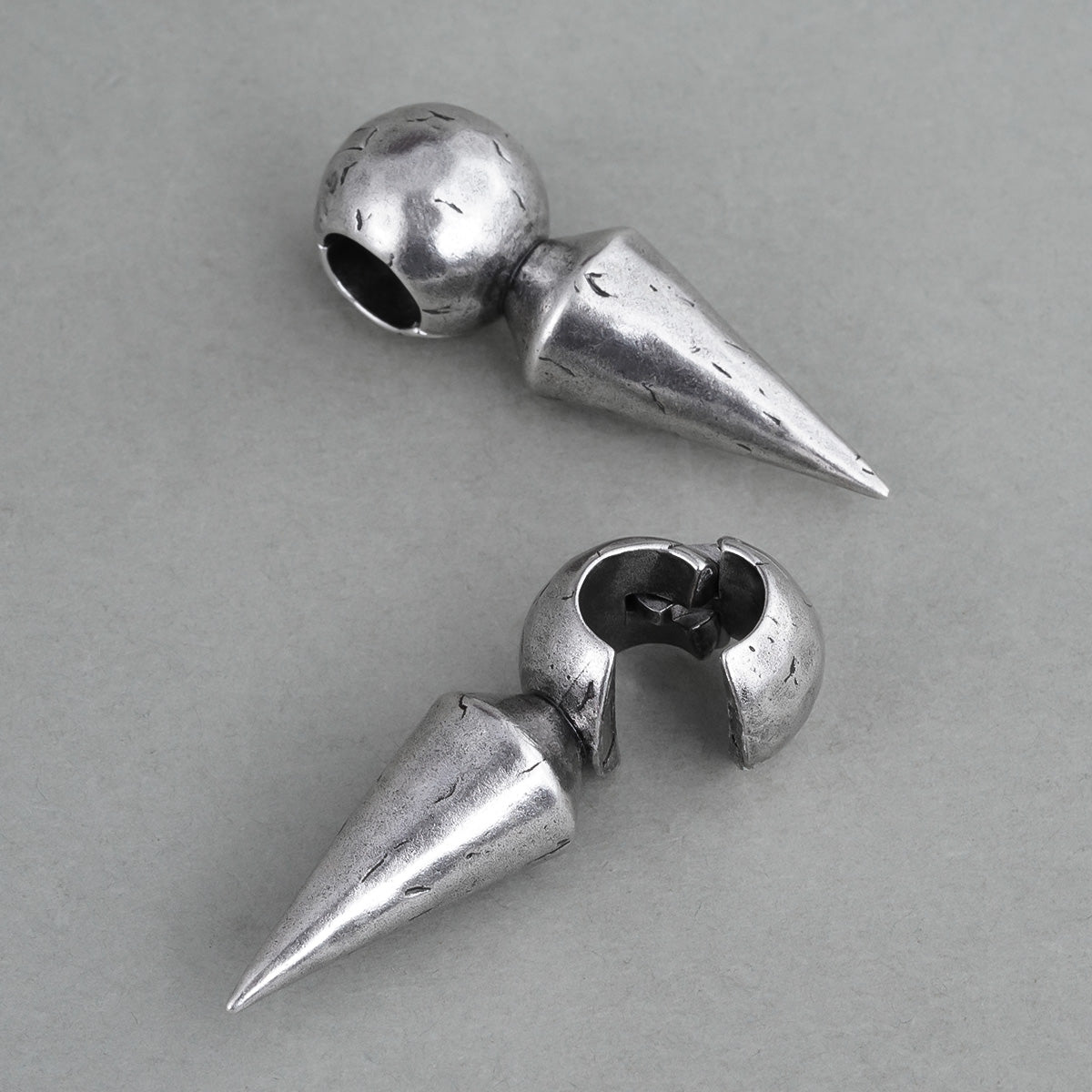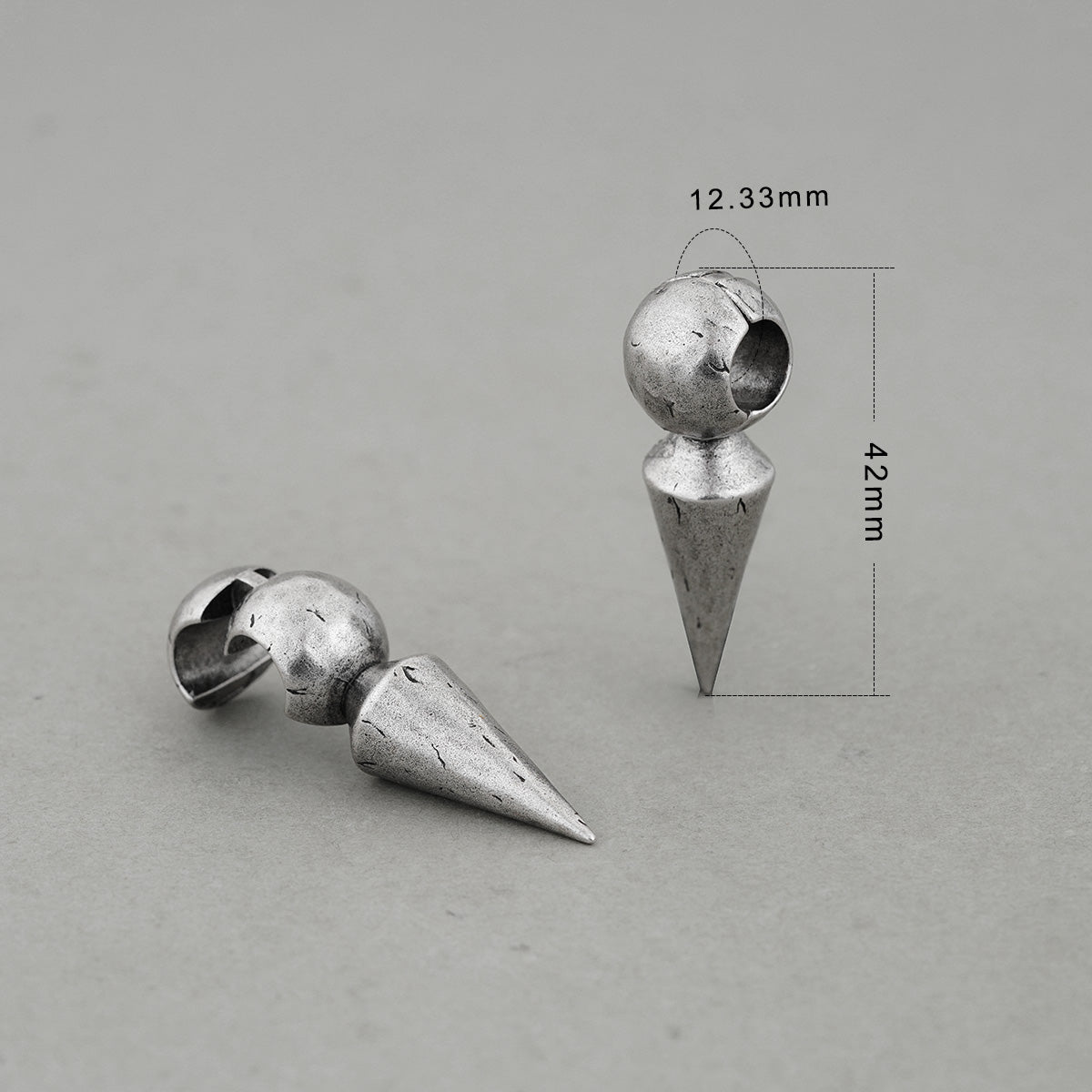 The Ancient Geometry Ear Weight features a minimalist design with a spherical top and conical bottom, finished with a textured, weathered look. This item is sold as a pair.