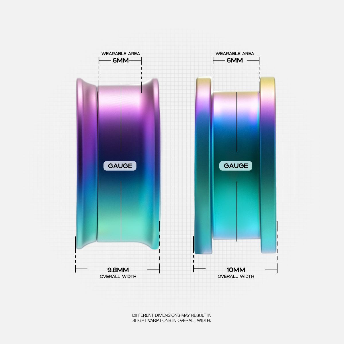 Aurora Glow Tunnel brings radiant color shifts in a sleek, double-flare design. This item is sold as a pair.