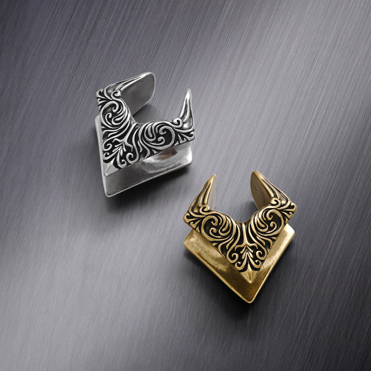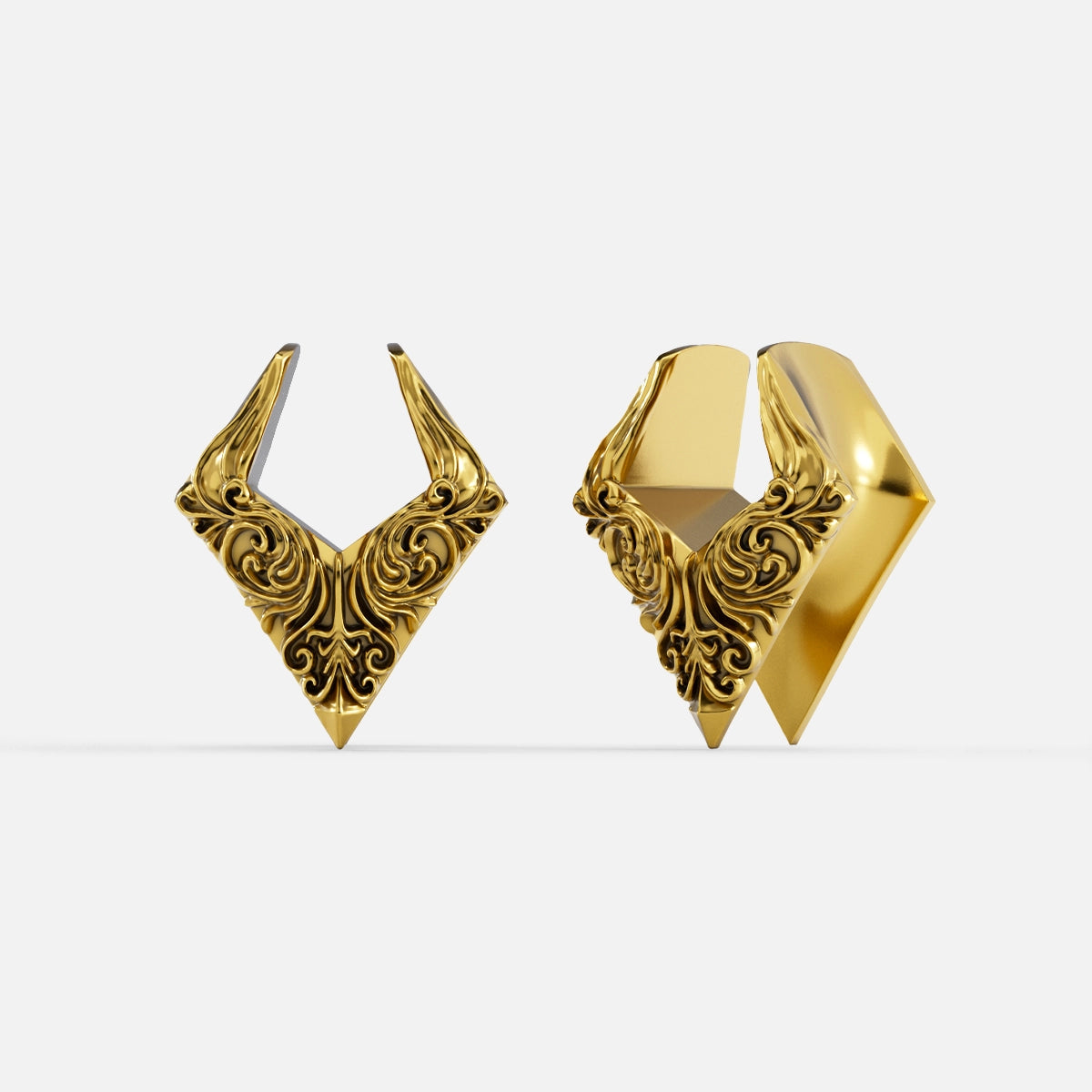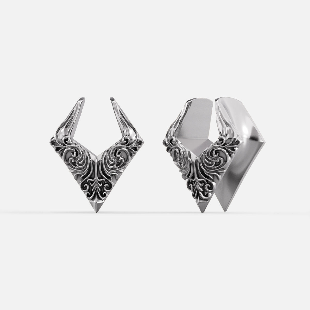 Baroque Helix Tunnels showcase intricate spirals and elegant curves, embodying a timeless aesthetic. This item is sold as a pair.