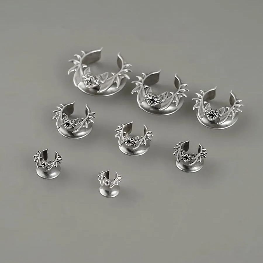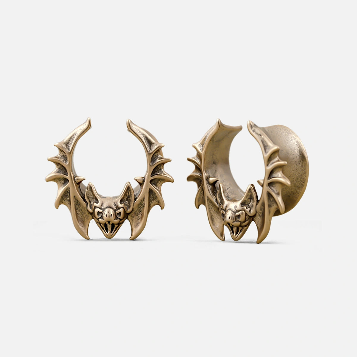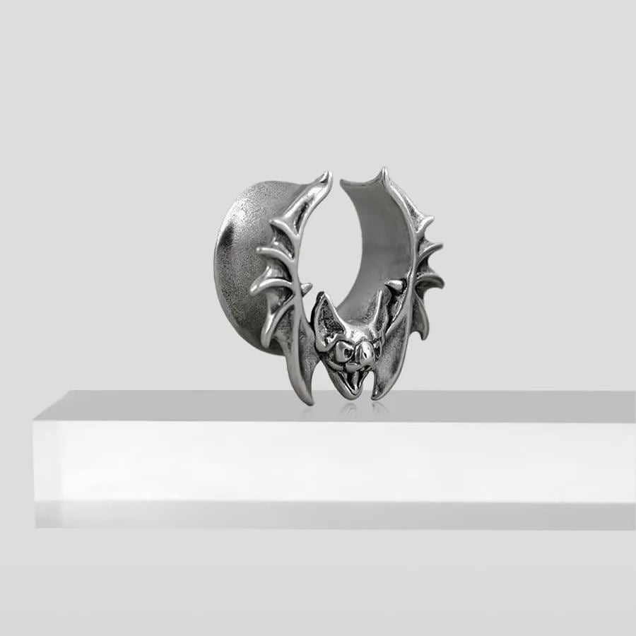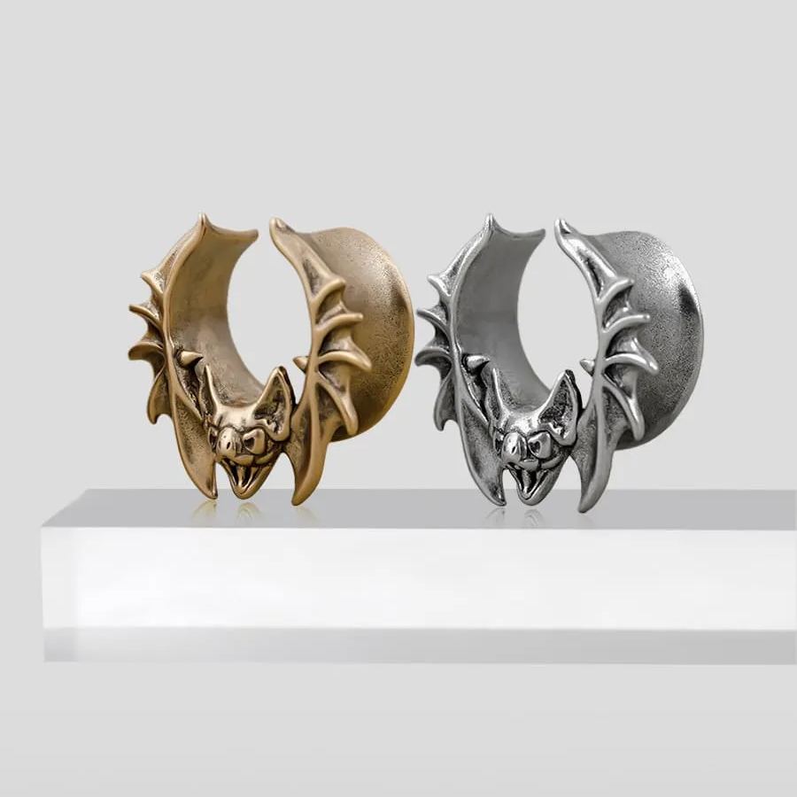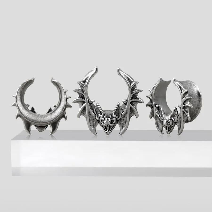 The design features a detailed bat with outstretched wings, creating a striking and gothic visual.This item is sold as a pair.