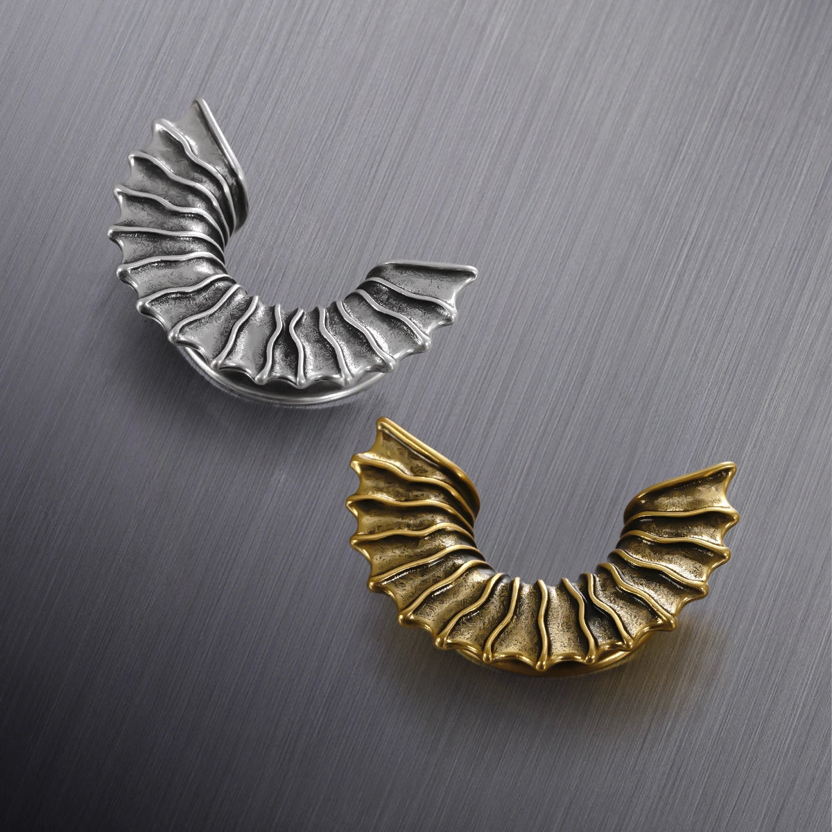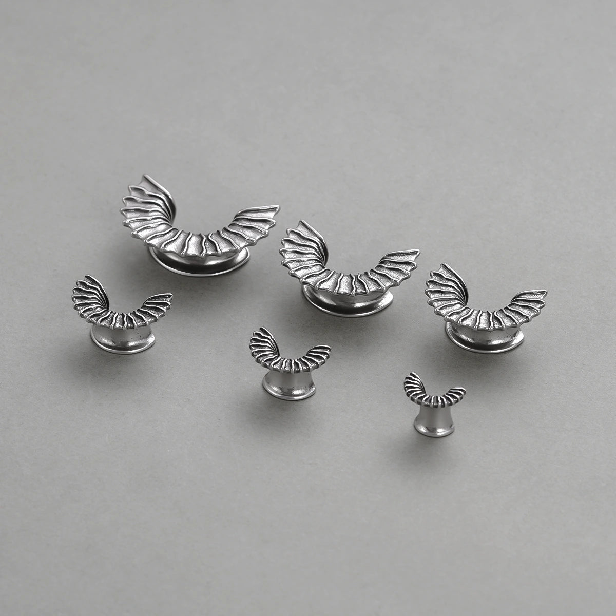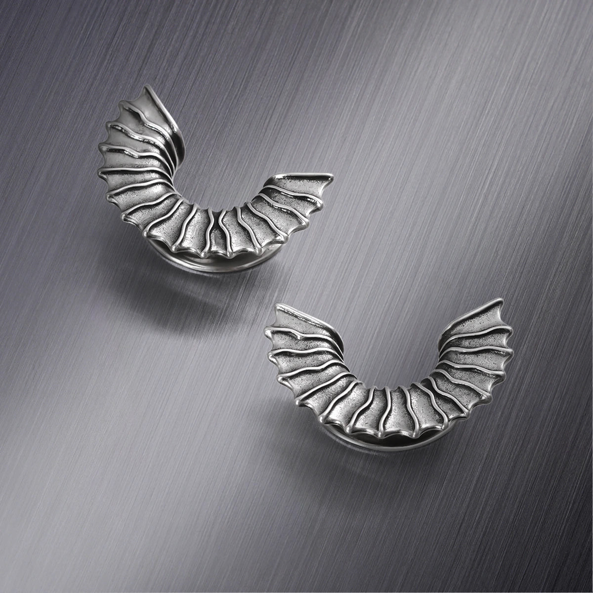 These Bat Wing Tunnels feature an intricate design inspired by the elegant curves of bat wings, offering a bold and mysterious look. This item is sold as a pair.