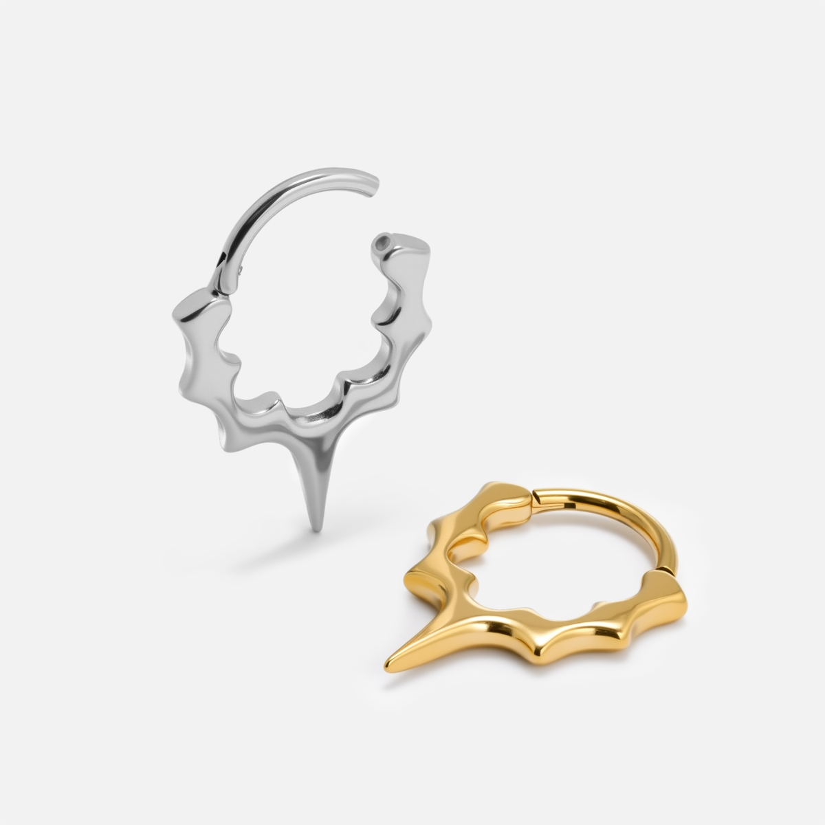 Blade Crest Septum Clicker features a sculptural, spiked silhouette and high-polish steel finish. This item is sold individually.