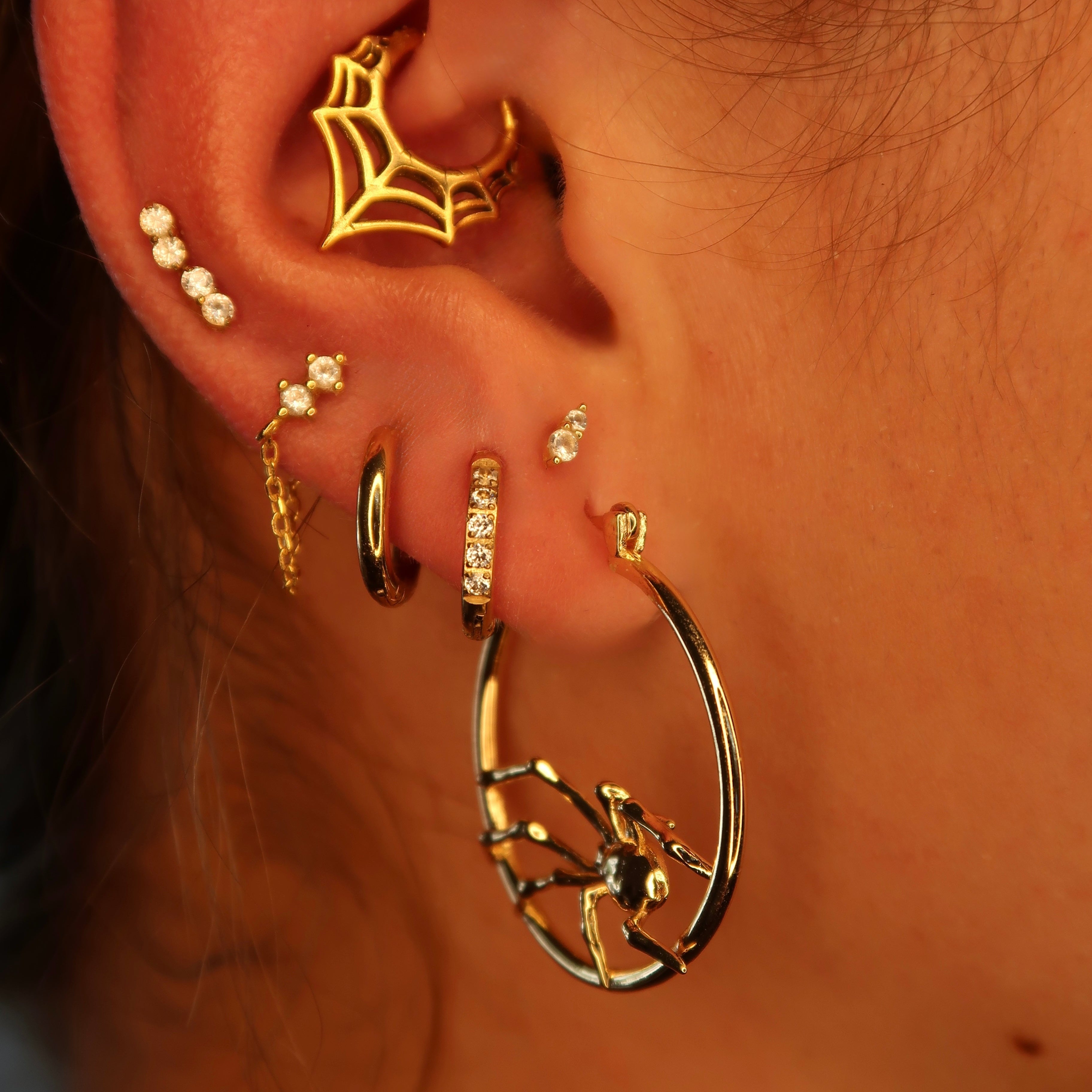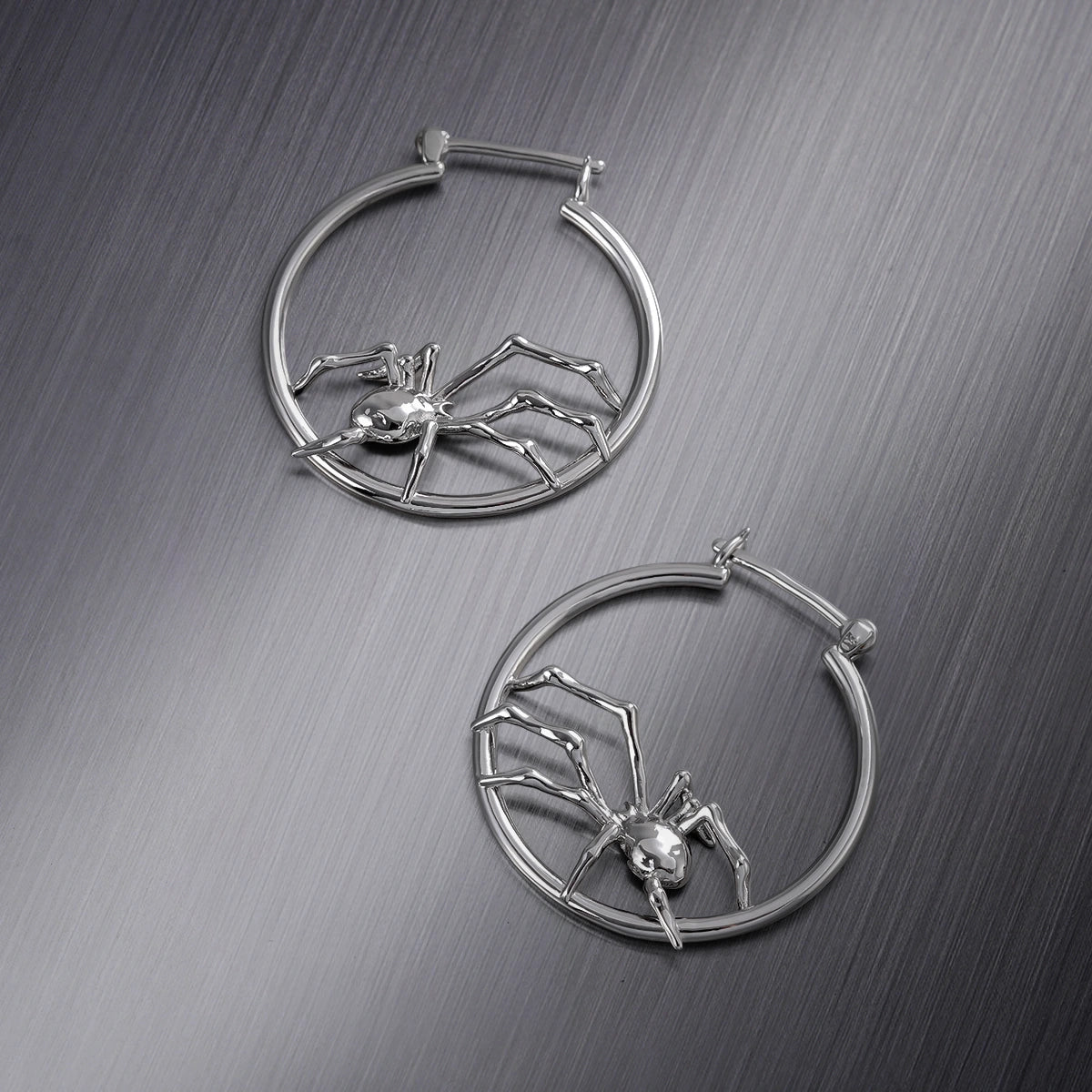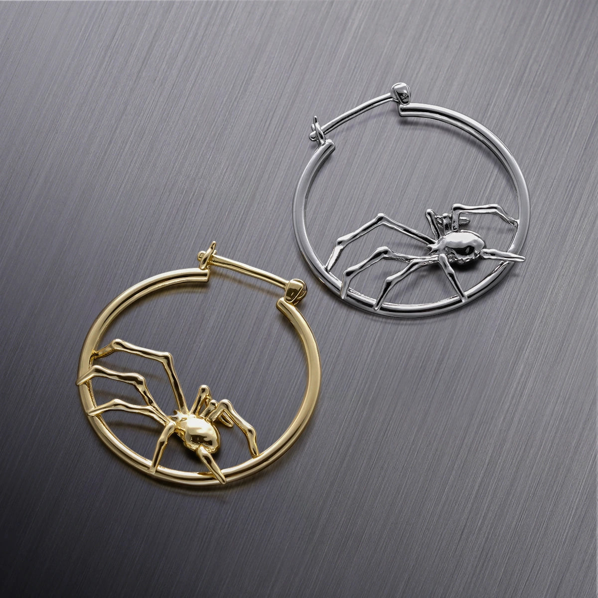 This Bold Arachnid earring features an intricate spider design, showcasing a unique piercing jewelry aesthetic that combines meticulous craftsmanship with natural inspiration, exuding a captivating charm. This item is sold as a pair.