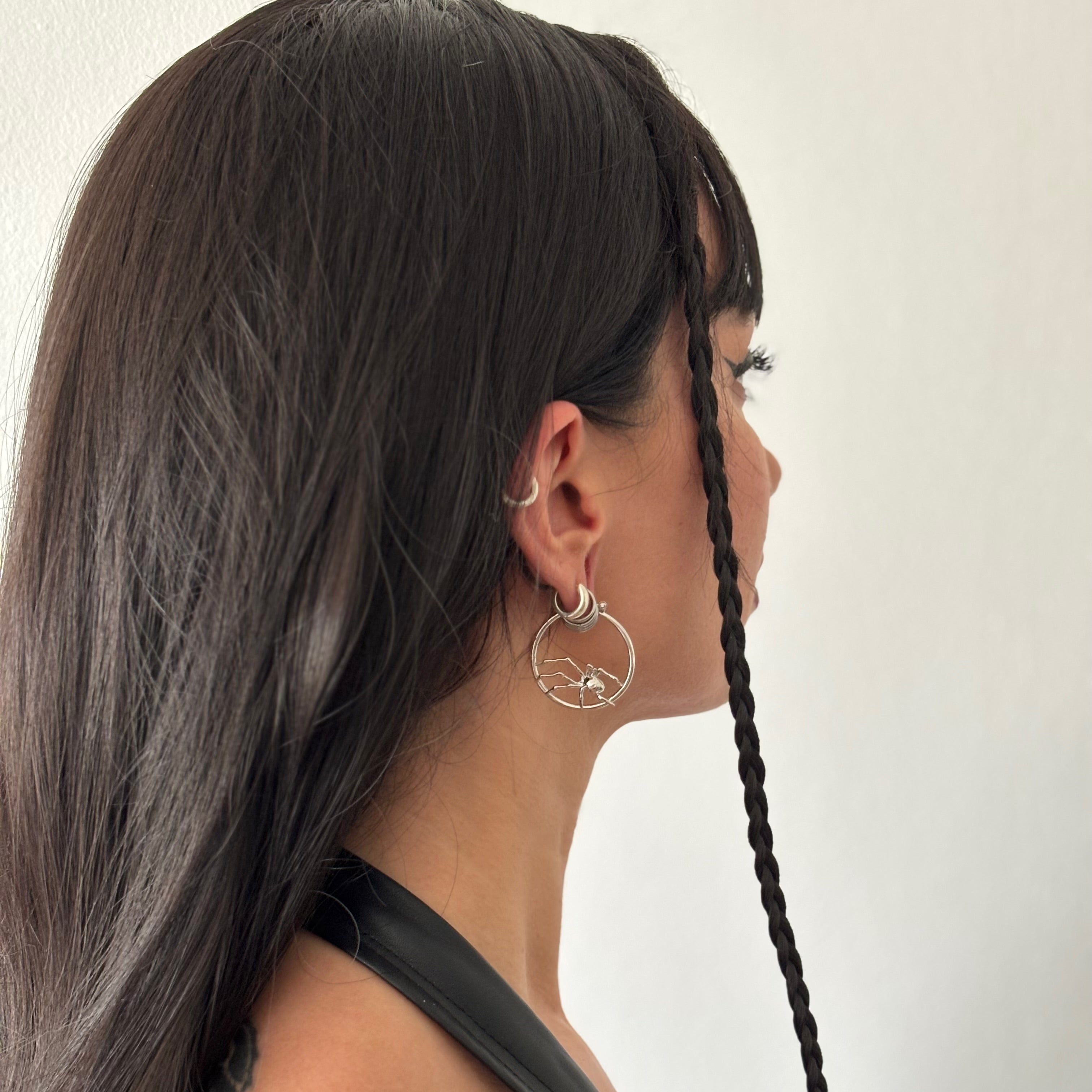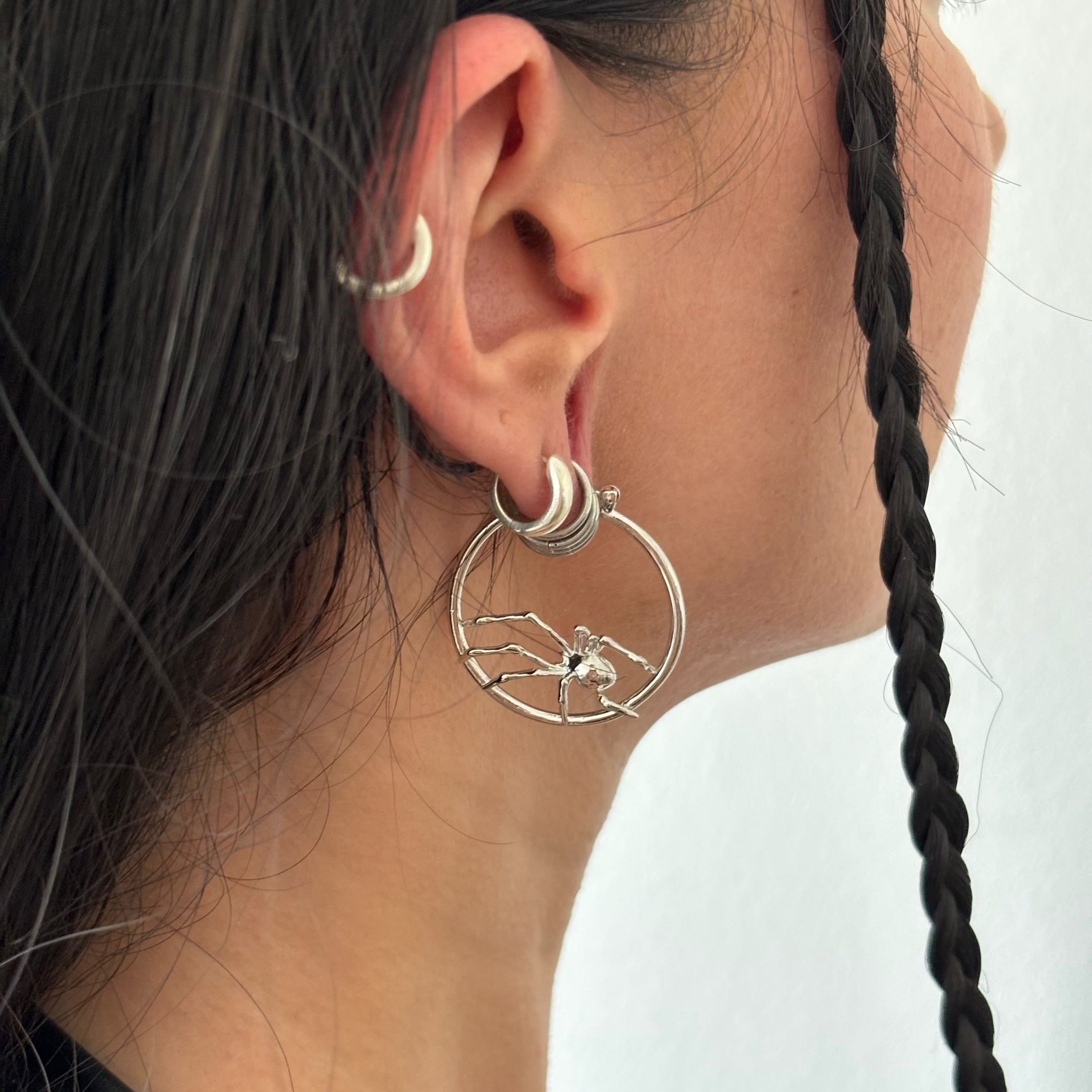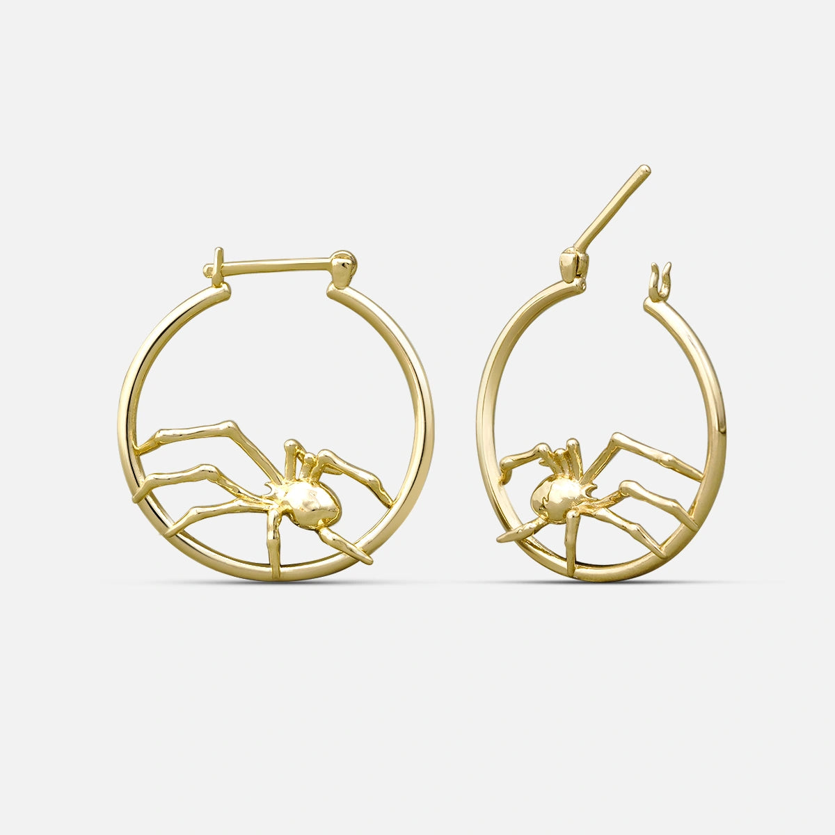 This Bold Arachnid earring features an intricate spider design, showcasing a unique piercing jewelry aesthetic that combines meticulous craftsmanship with natural inspiration, exuding a captivating charm. This item is sold as a pair.