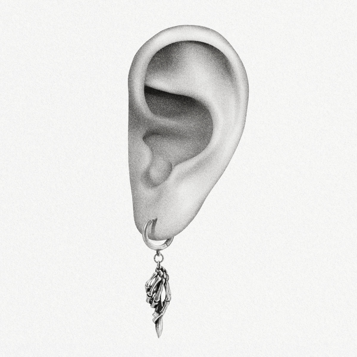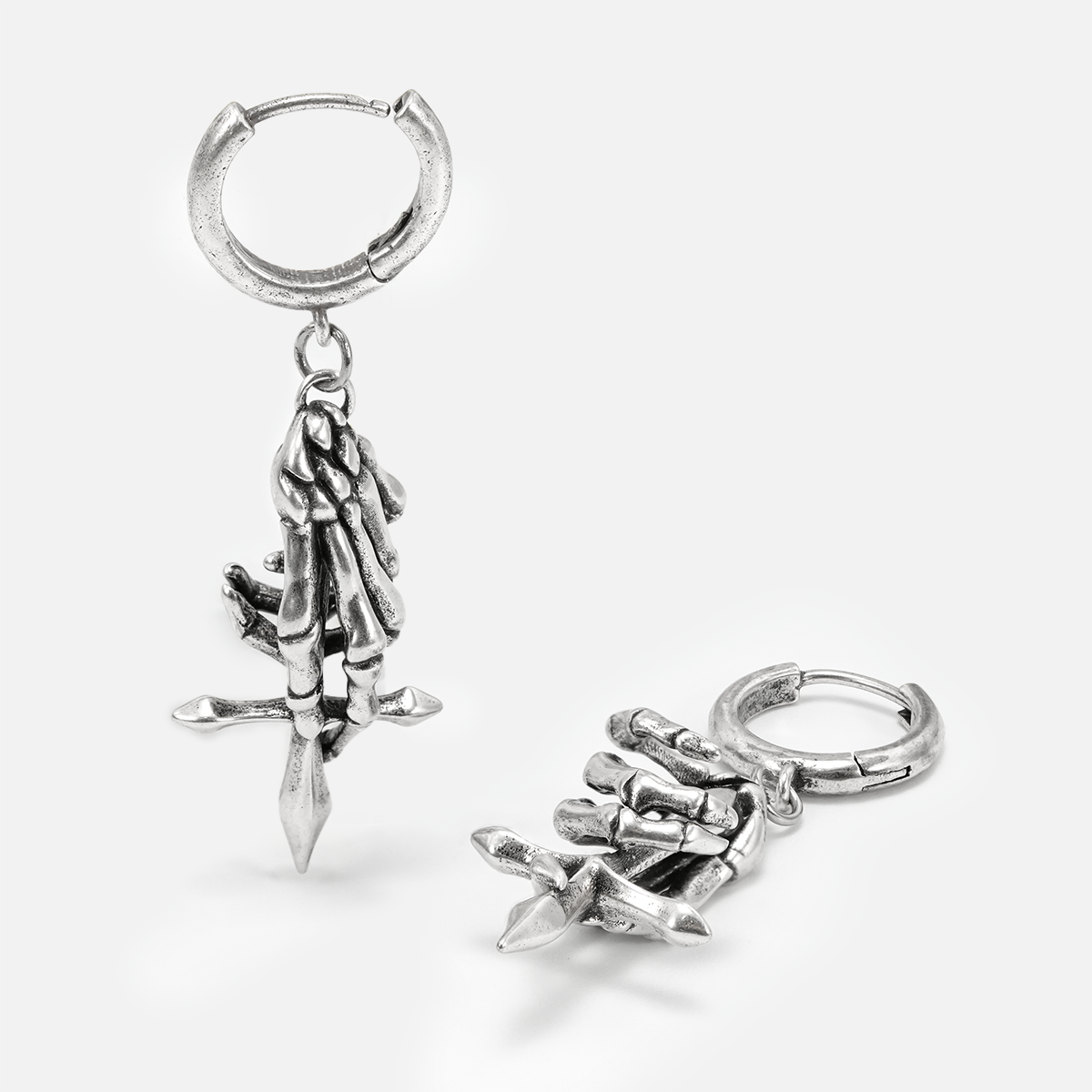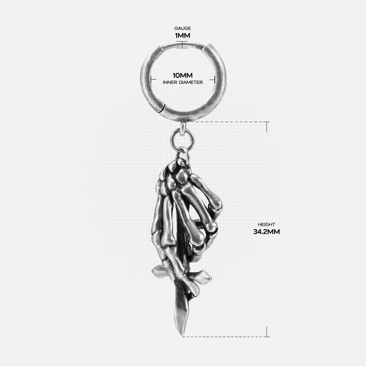 The Bone Charmed Earrings feature a striking skeletal design, intricately crafted to evoke ethereal beauty. This item is sold as a pair.