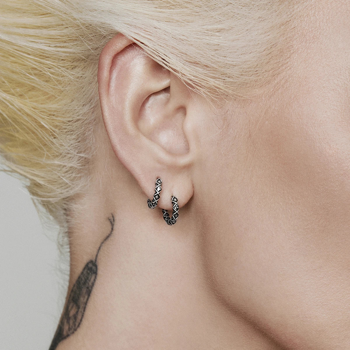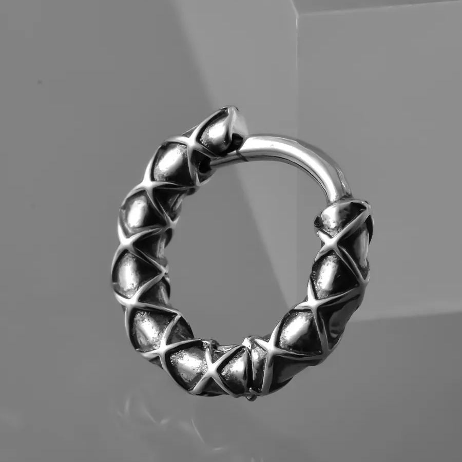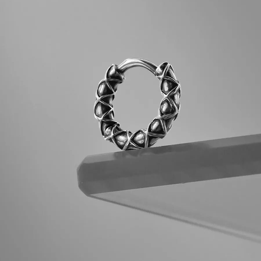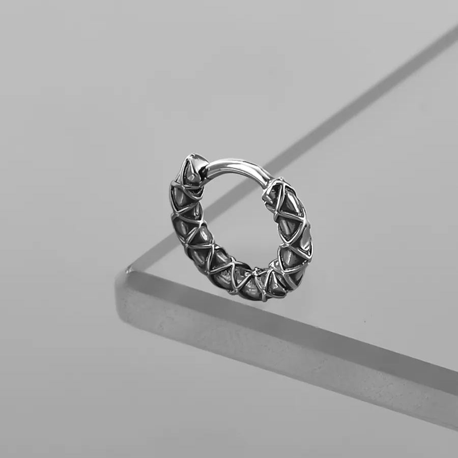 These earrings feature a unique woven or braided texture, giving them an intricate and robust look.This item is sold as a pair.