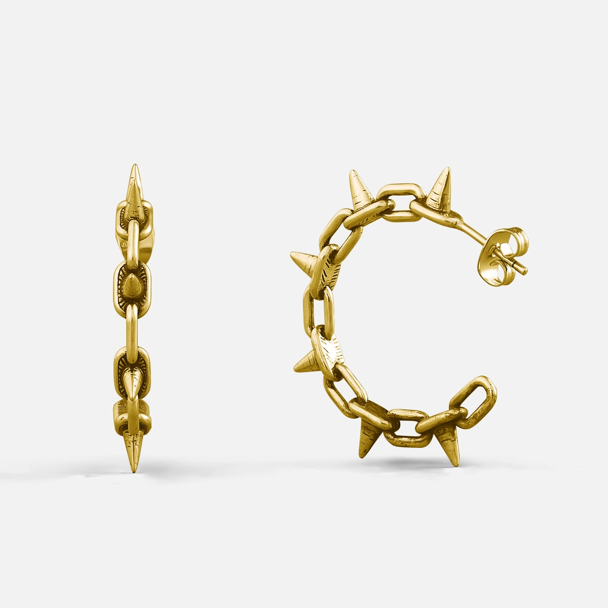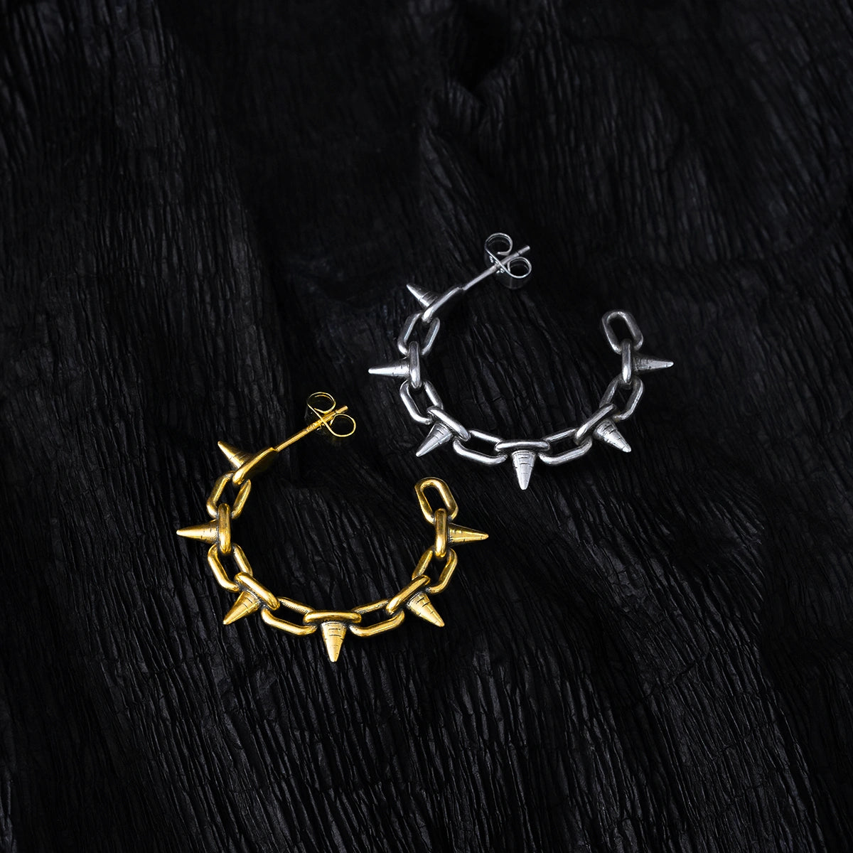 Inspired by the rebellious spirit of punk rock and industrial art, these earrings evoke strength and individuality.