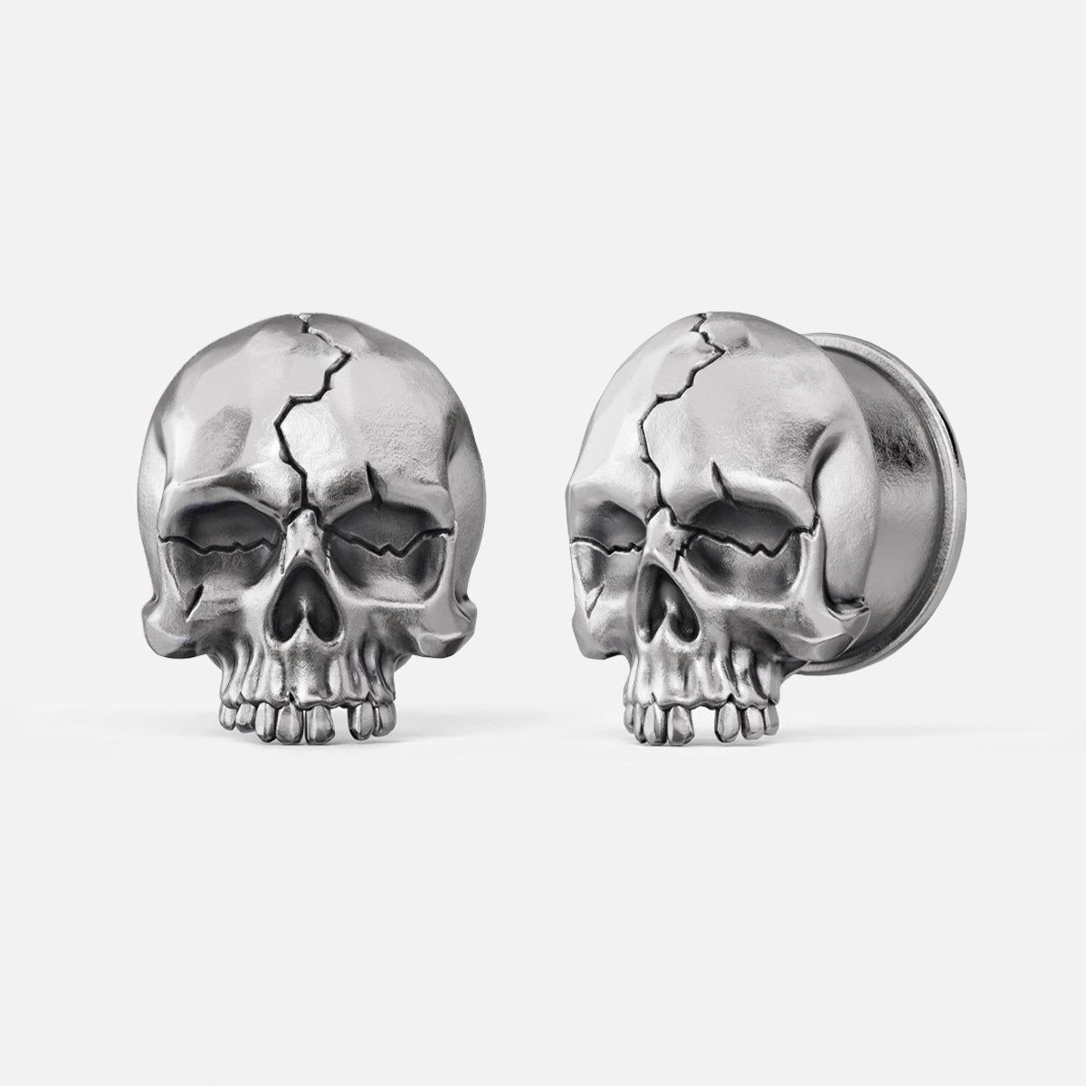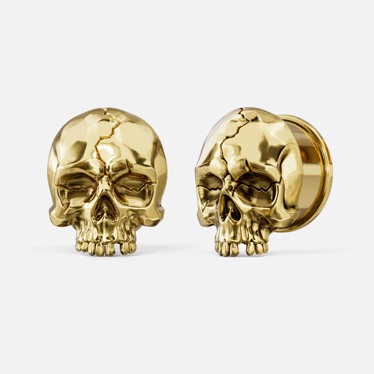 These plugs feature a circular design with intricate gothic patterns and a central door knocker element, offering a bold, vintage aesthetic. This item is sold as a pair.