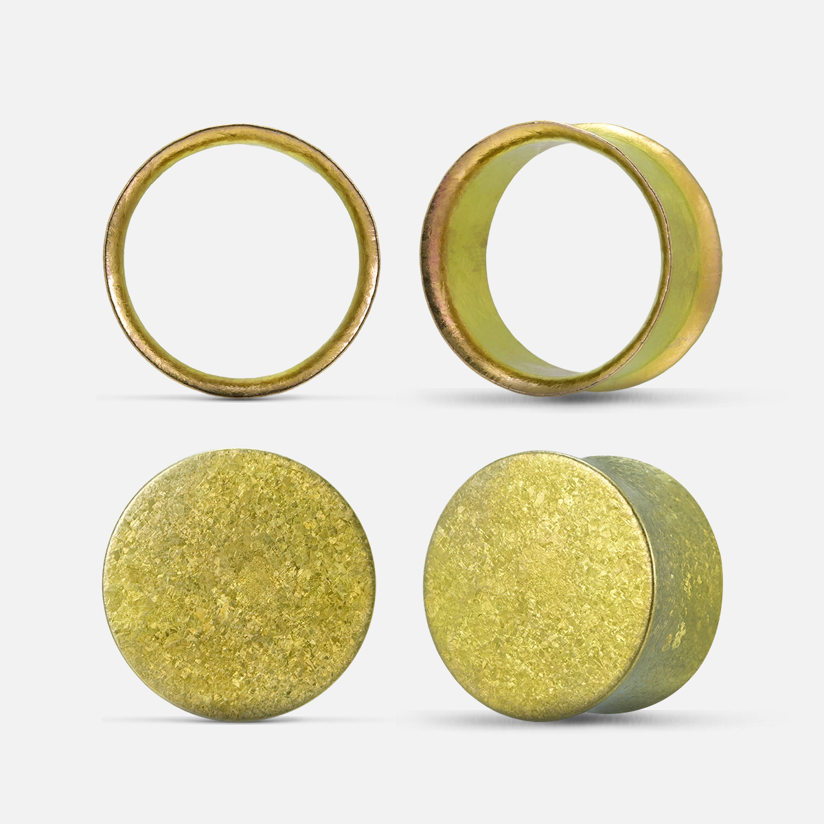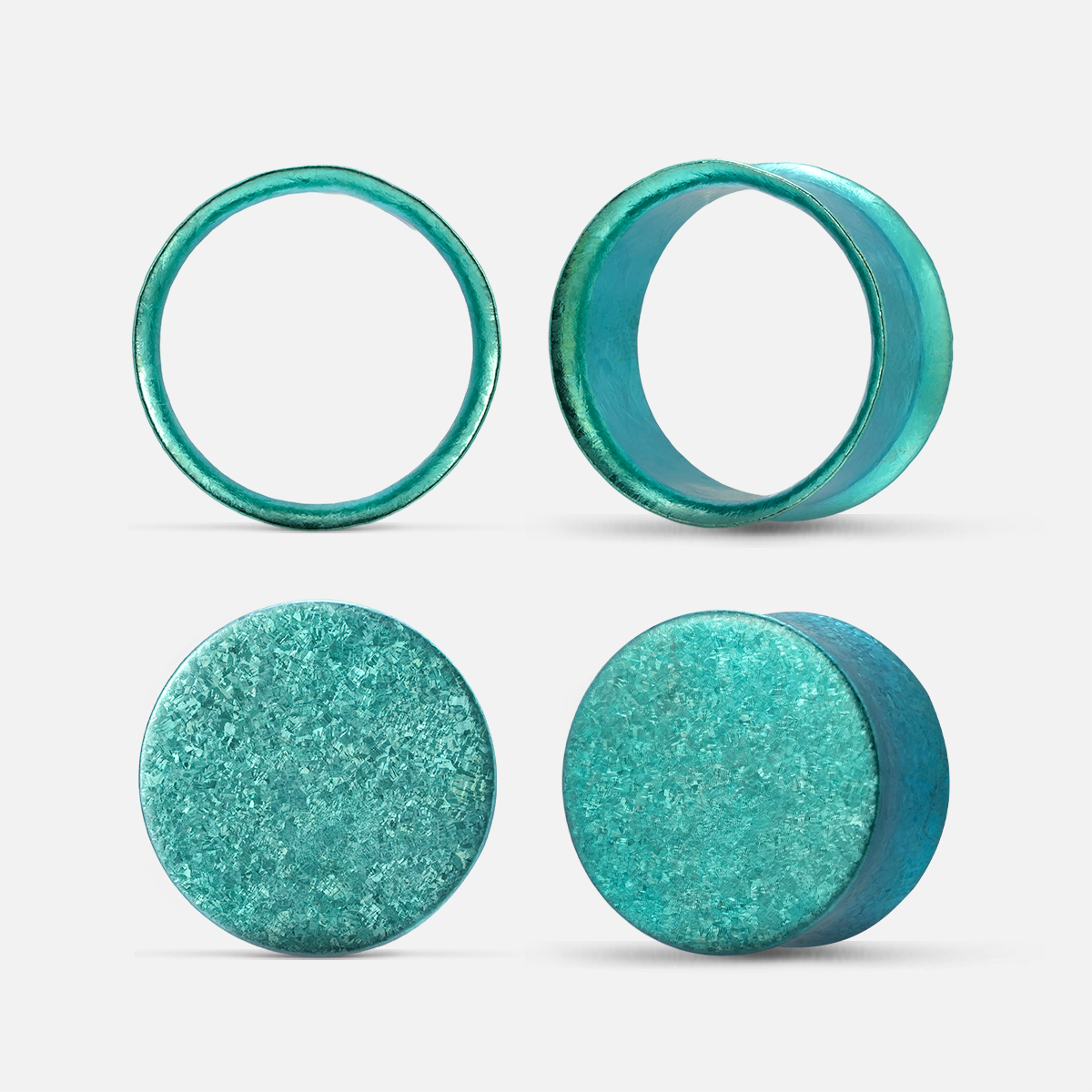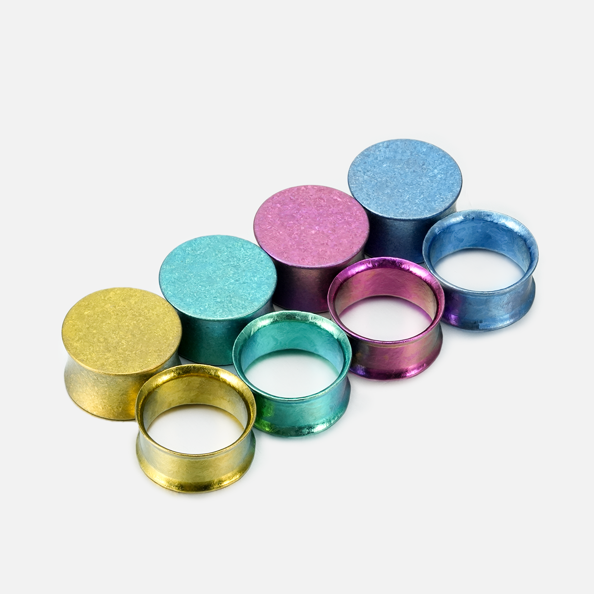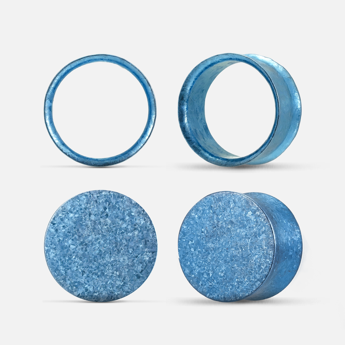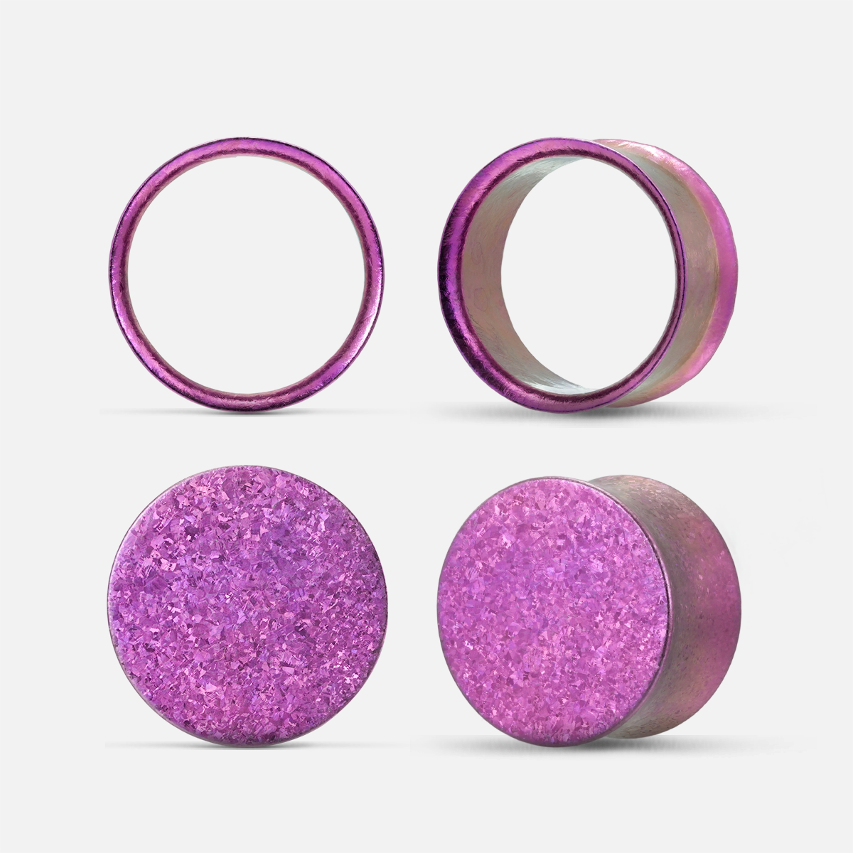 Crystallization Titanium Plugs feature a unique crystallized surface formed at 1800°C, offering a vibrant, eye-catching effect. Available in gold, green, blue, and purple, these plugs blend modern and natural aesthetics. This item is sold as two pairs.