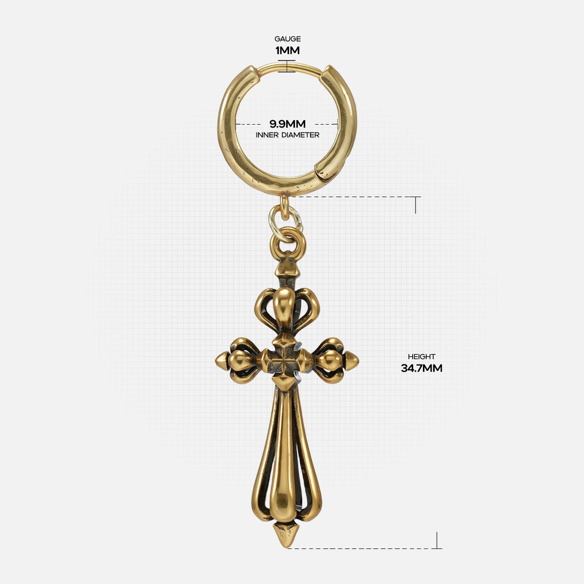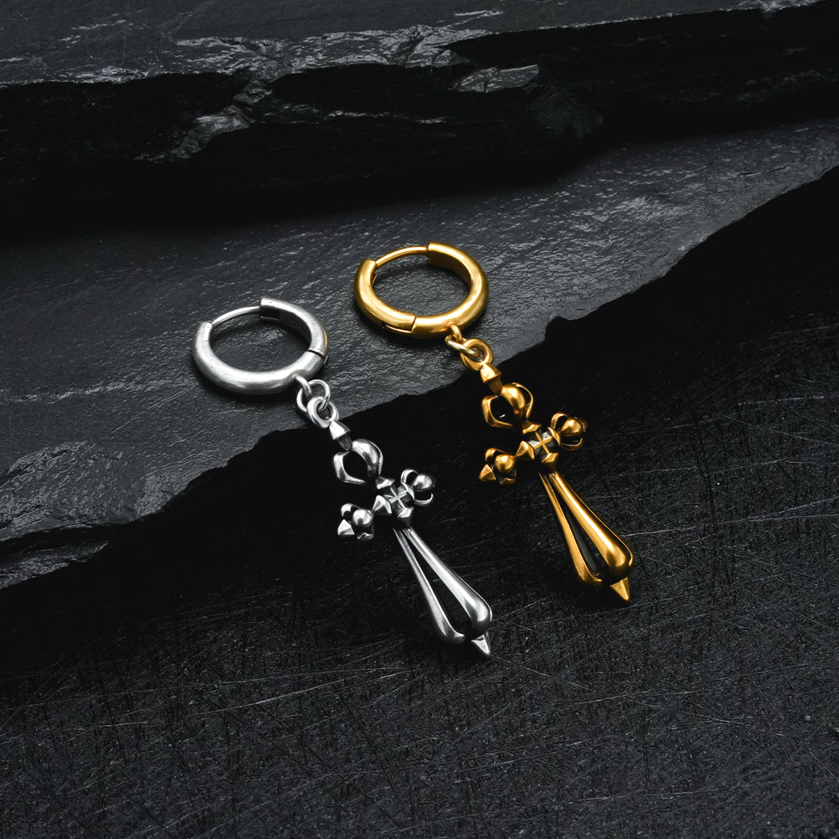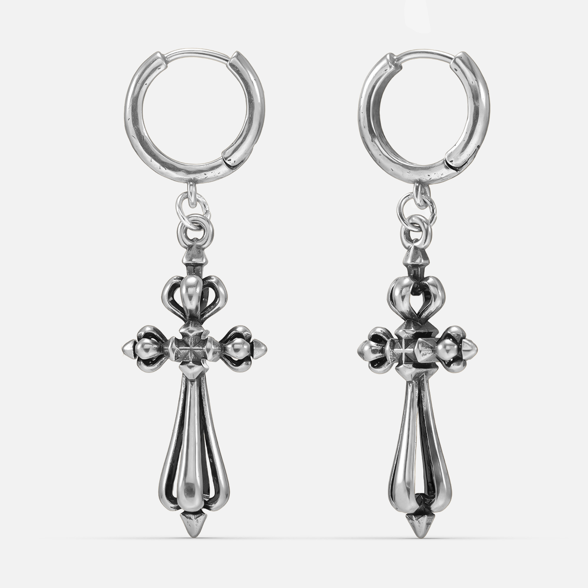 The Elegance Cross Earrings showcase a refined design with delicate curves and sharp angles, crafted from premium materials for a timeless appeal. This item is sold as a pair.