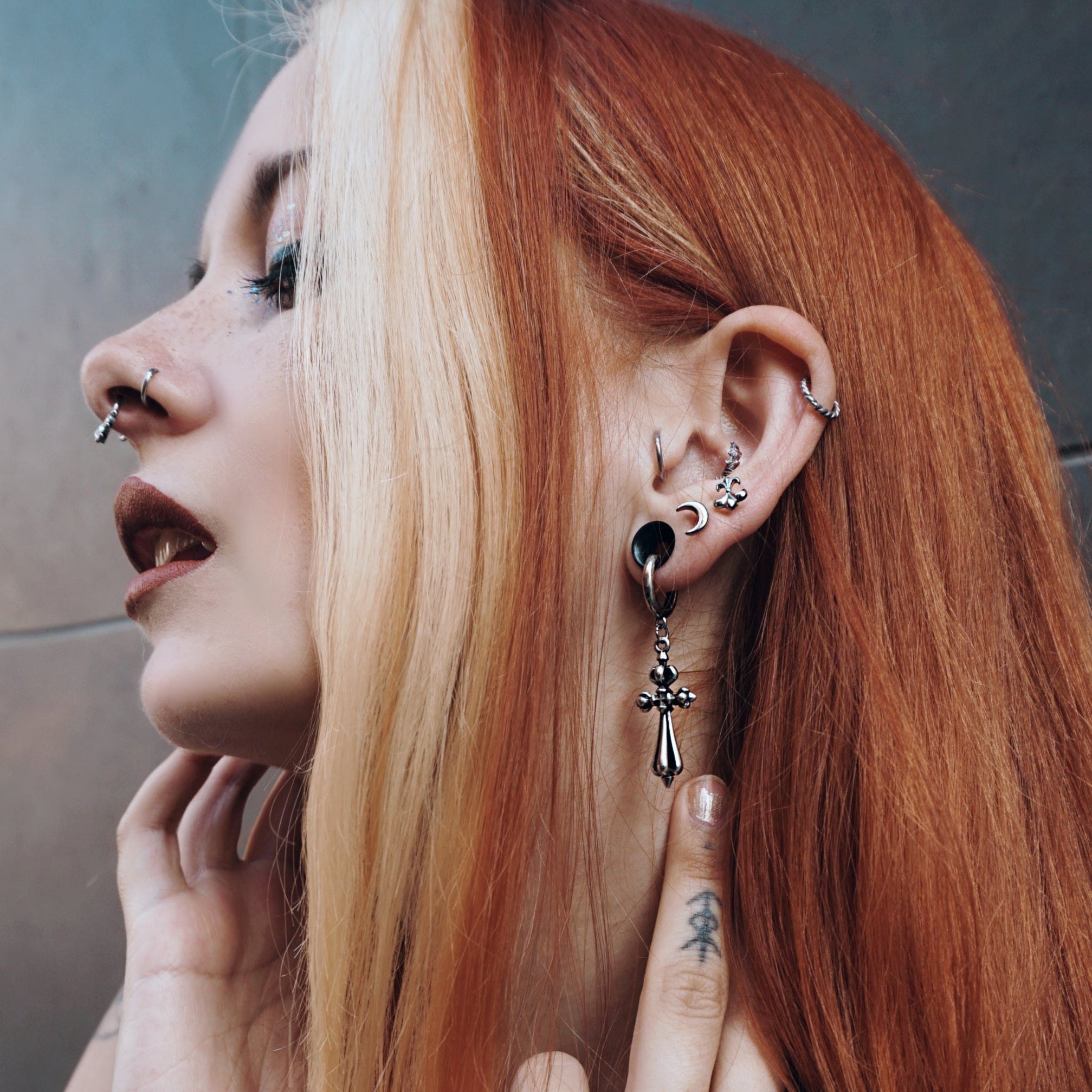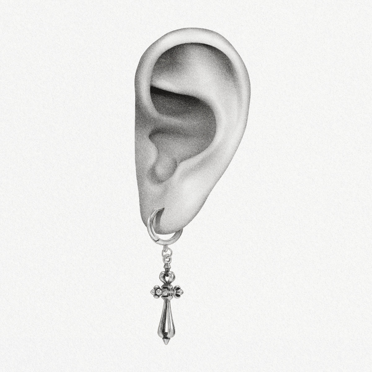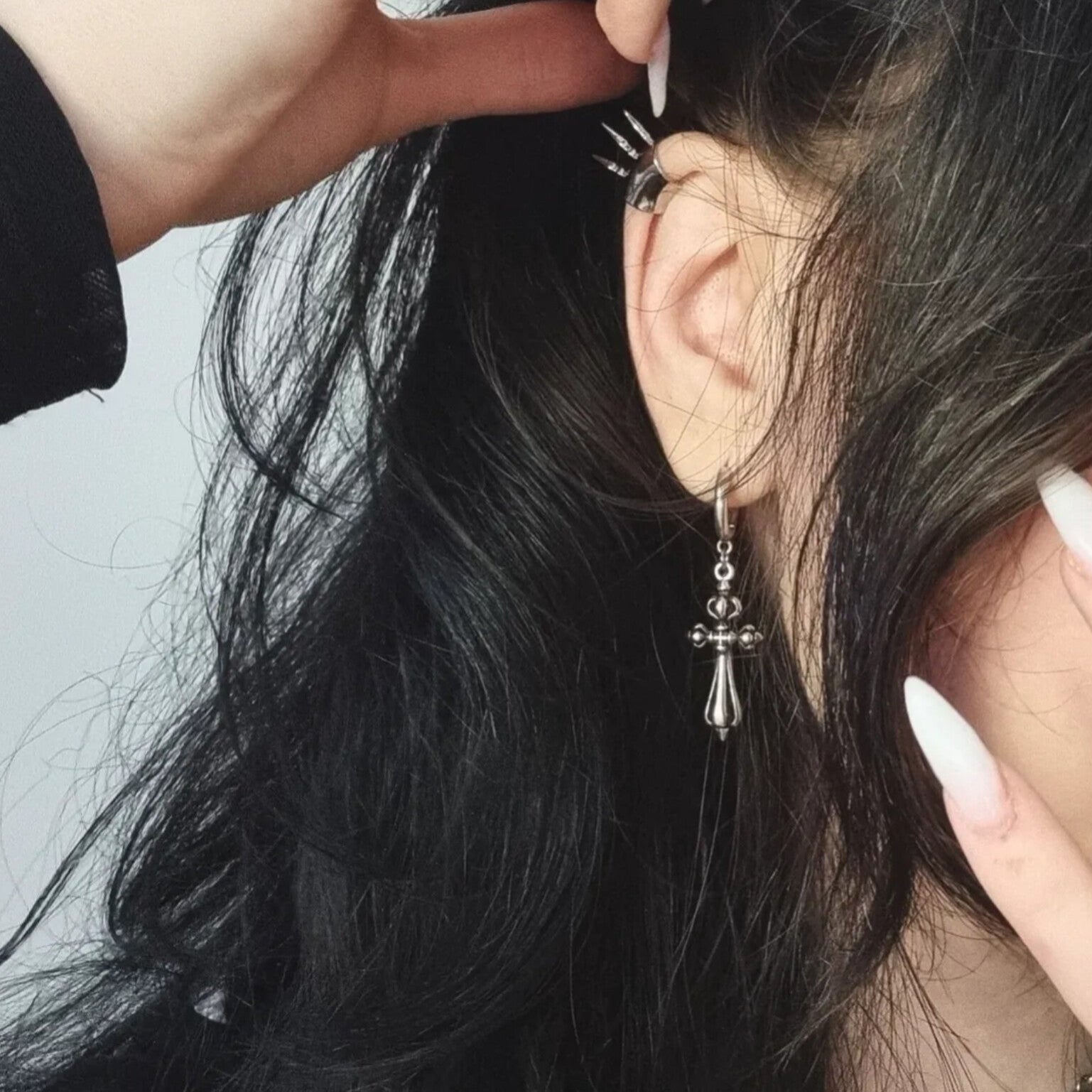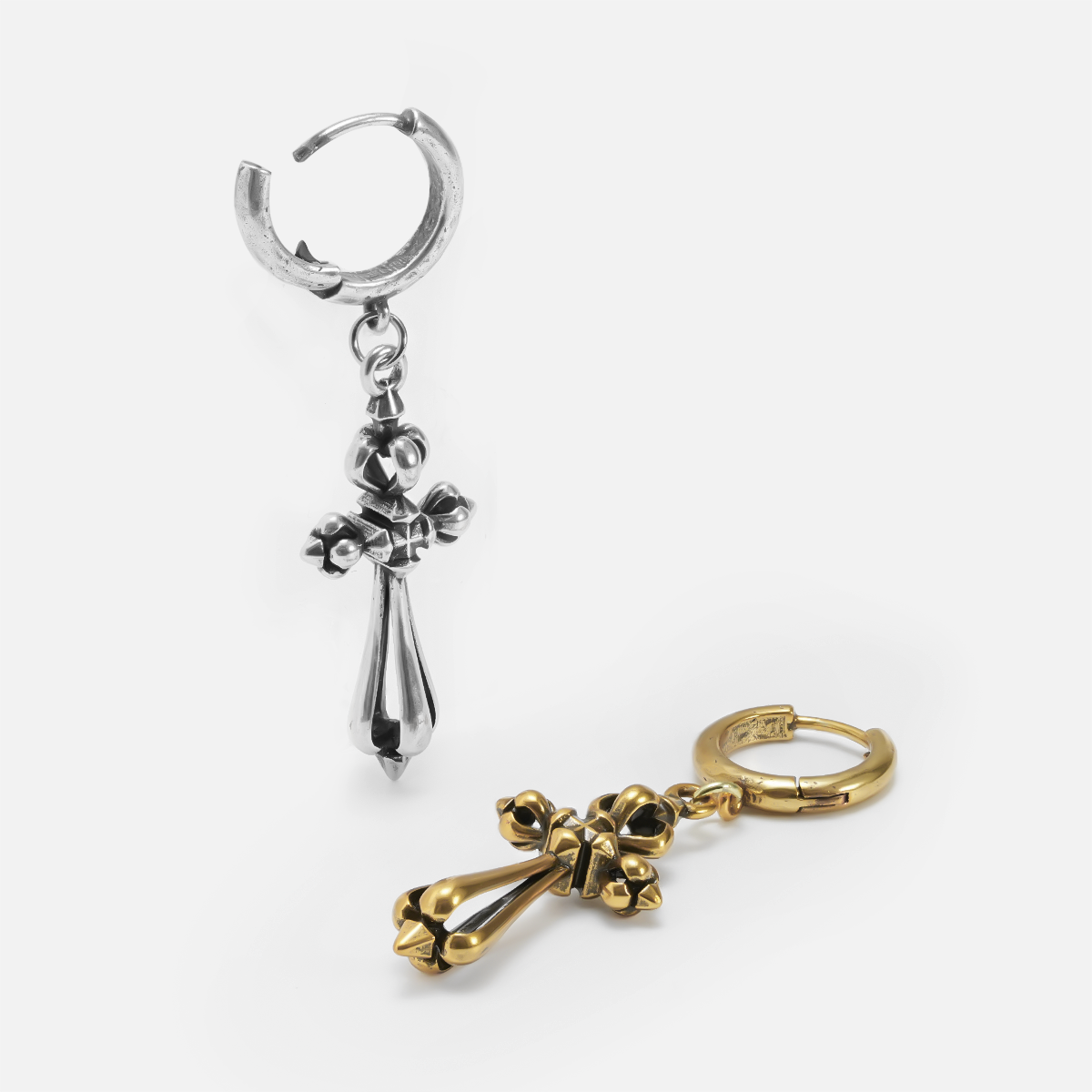 The Elegance Cross Earrings showcase a refined design with delicate curves and sharp angles, crafted from premium materials for a timeless appeal. This item is sold as a pair.