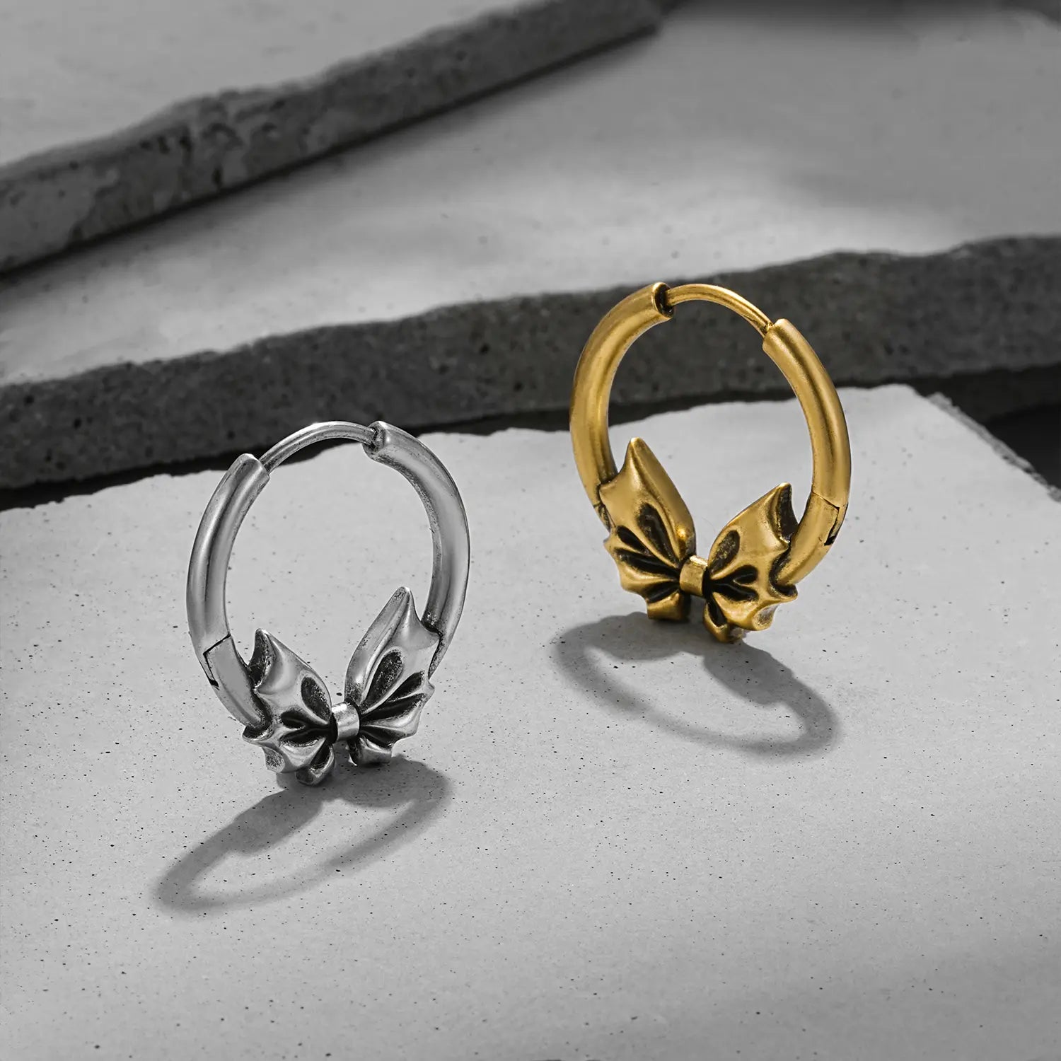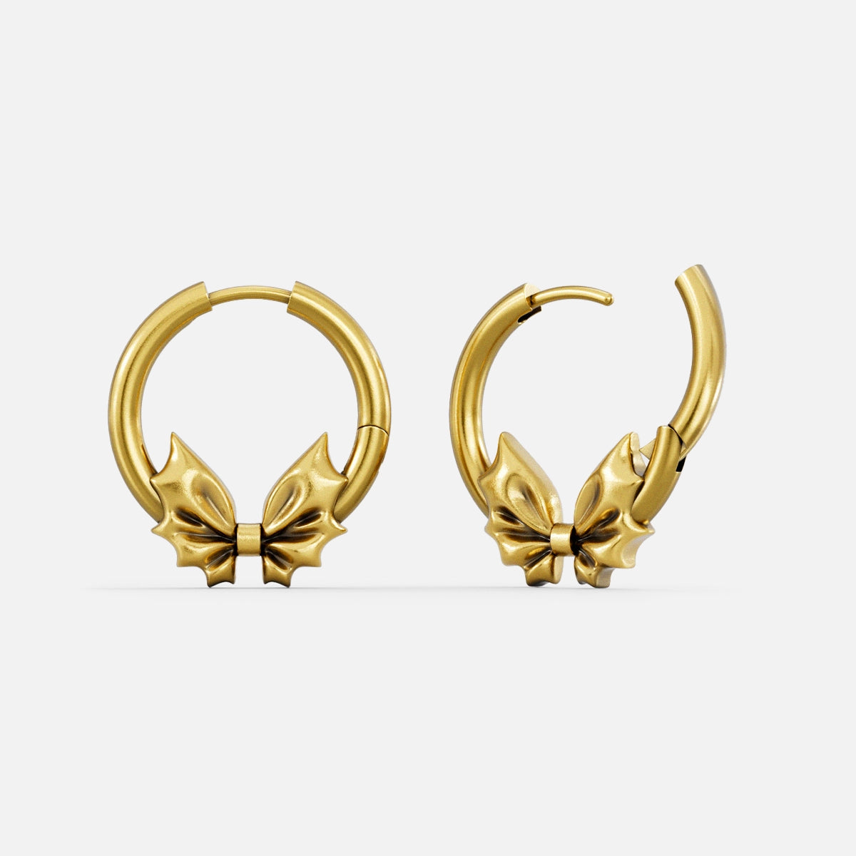 Elegant Unity Bow Earrings feature polished hoops with intricate bow accents, offering a timeless and refined look. This item is sold as a pair.