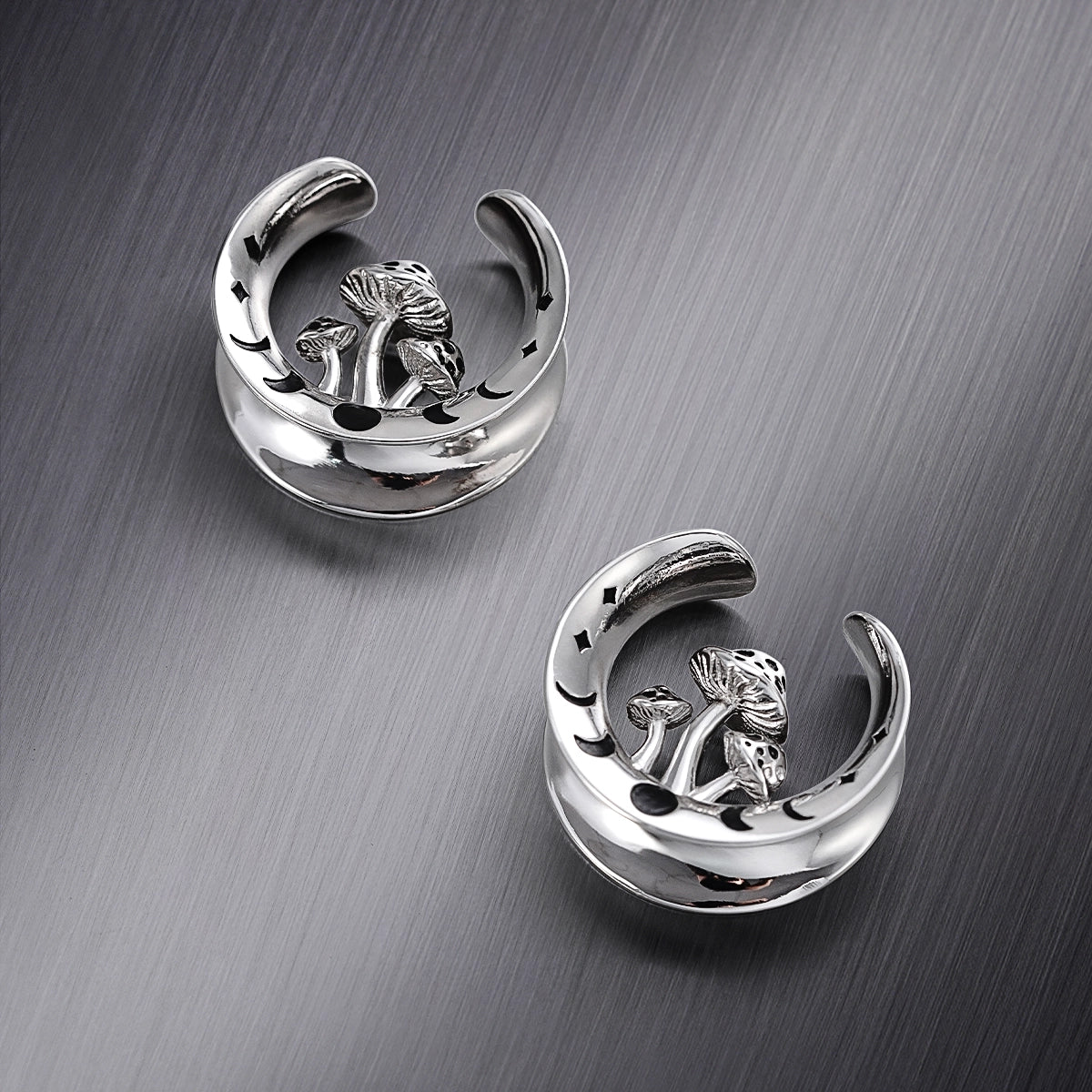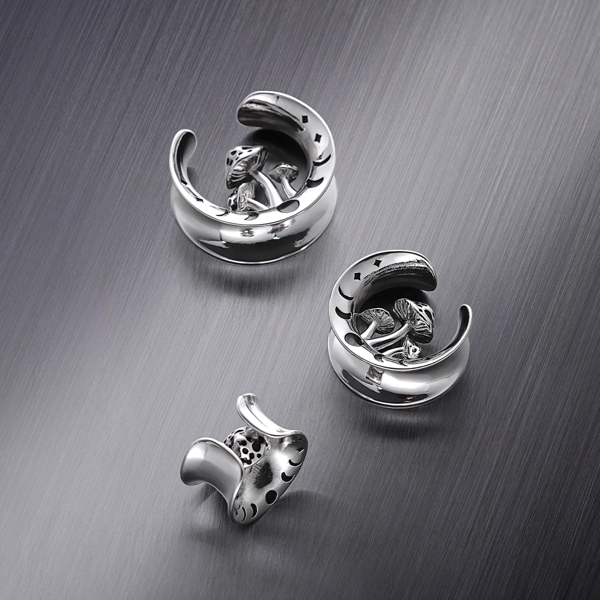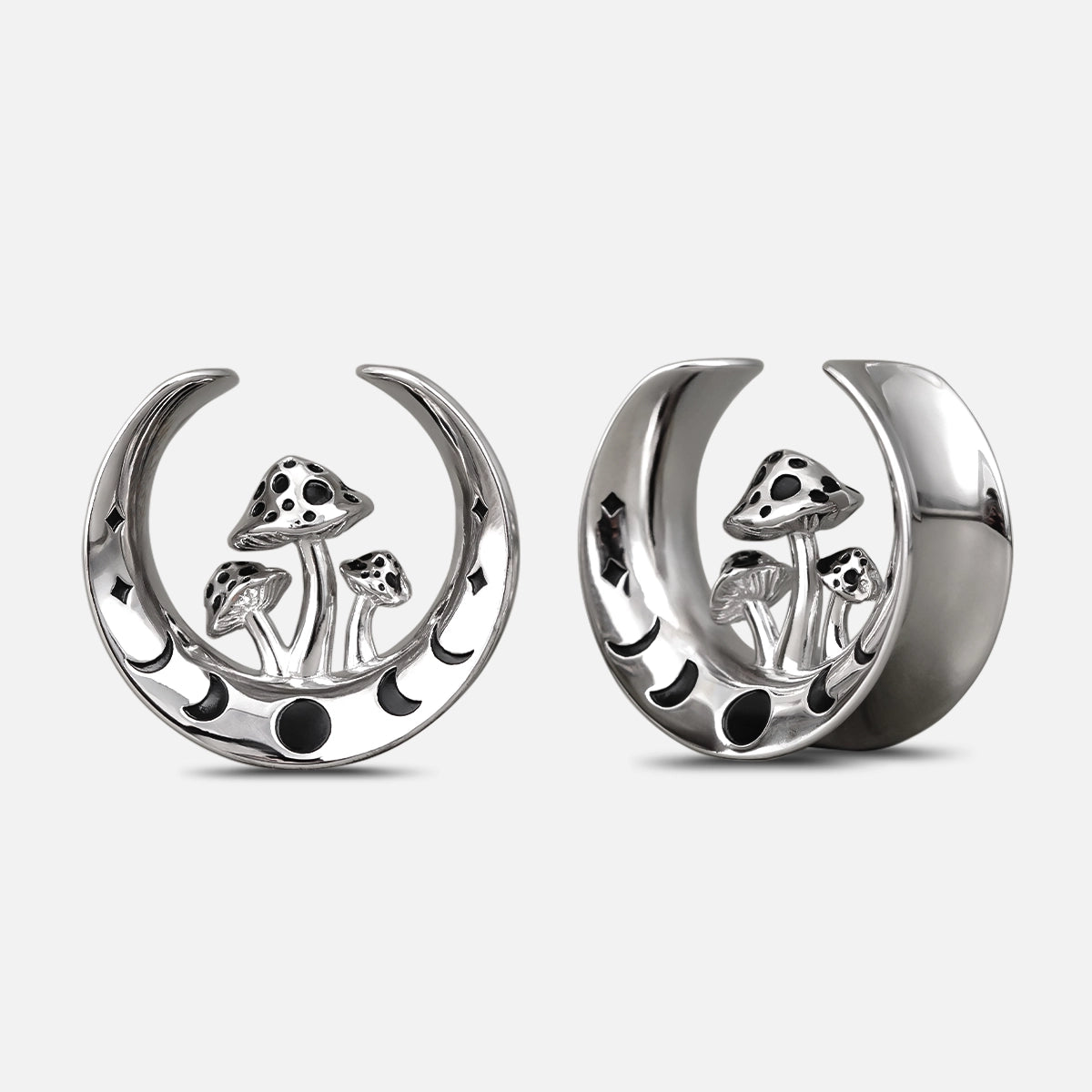 Elegant mushroom and crescent designs in stainless steel showcase enchanting natural beauty. This item is sold as a pair.