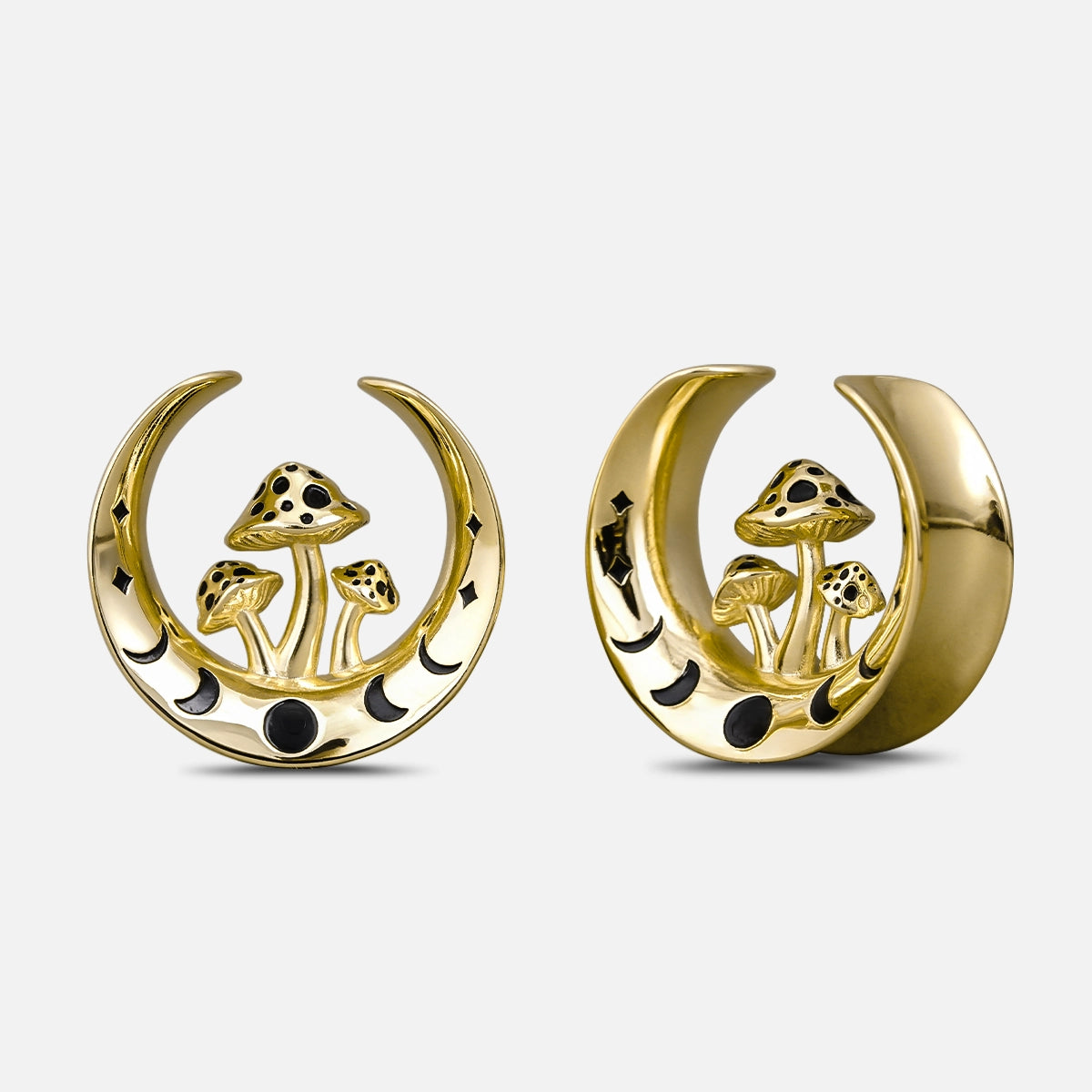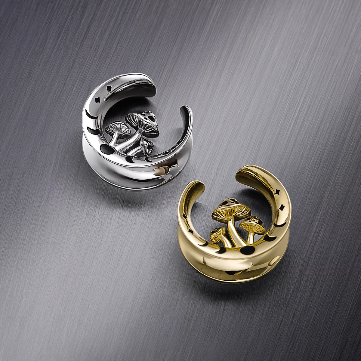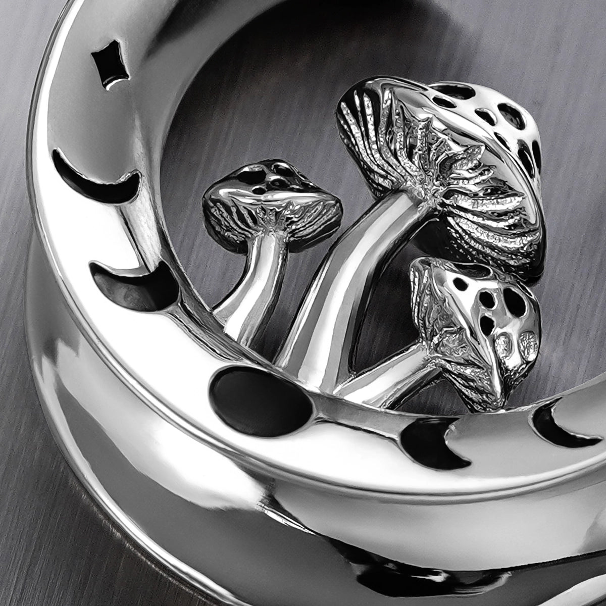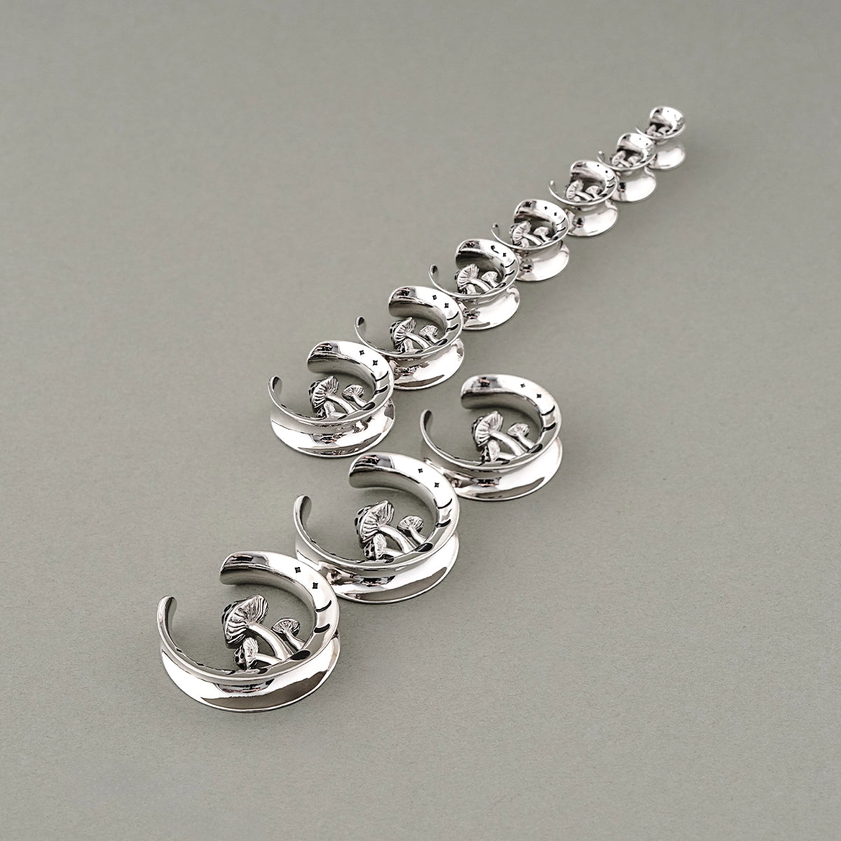 Elegant mushroom and crescent designs in stainless steel showcase enchanting natural beauty. This item is sold as a pair.