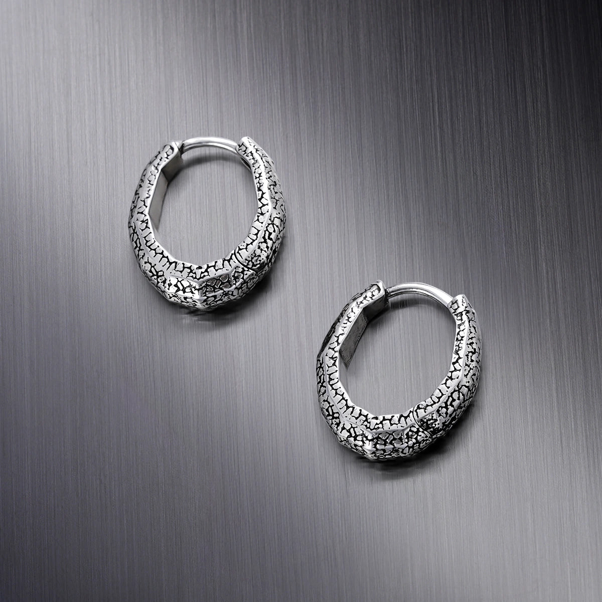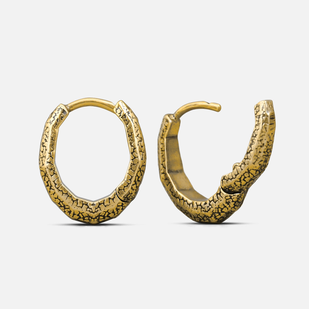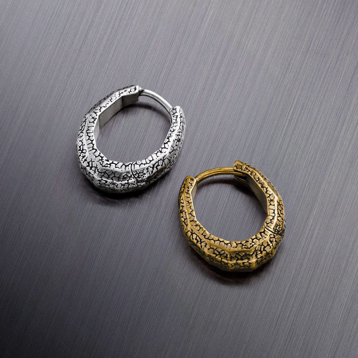 Eroded Scale Earrings feature a timeworn serpent-scale texture, with irregular cracks that give them an ancient, relic-like allure, as if sculpted by nature itself. This item is sold as a pair.