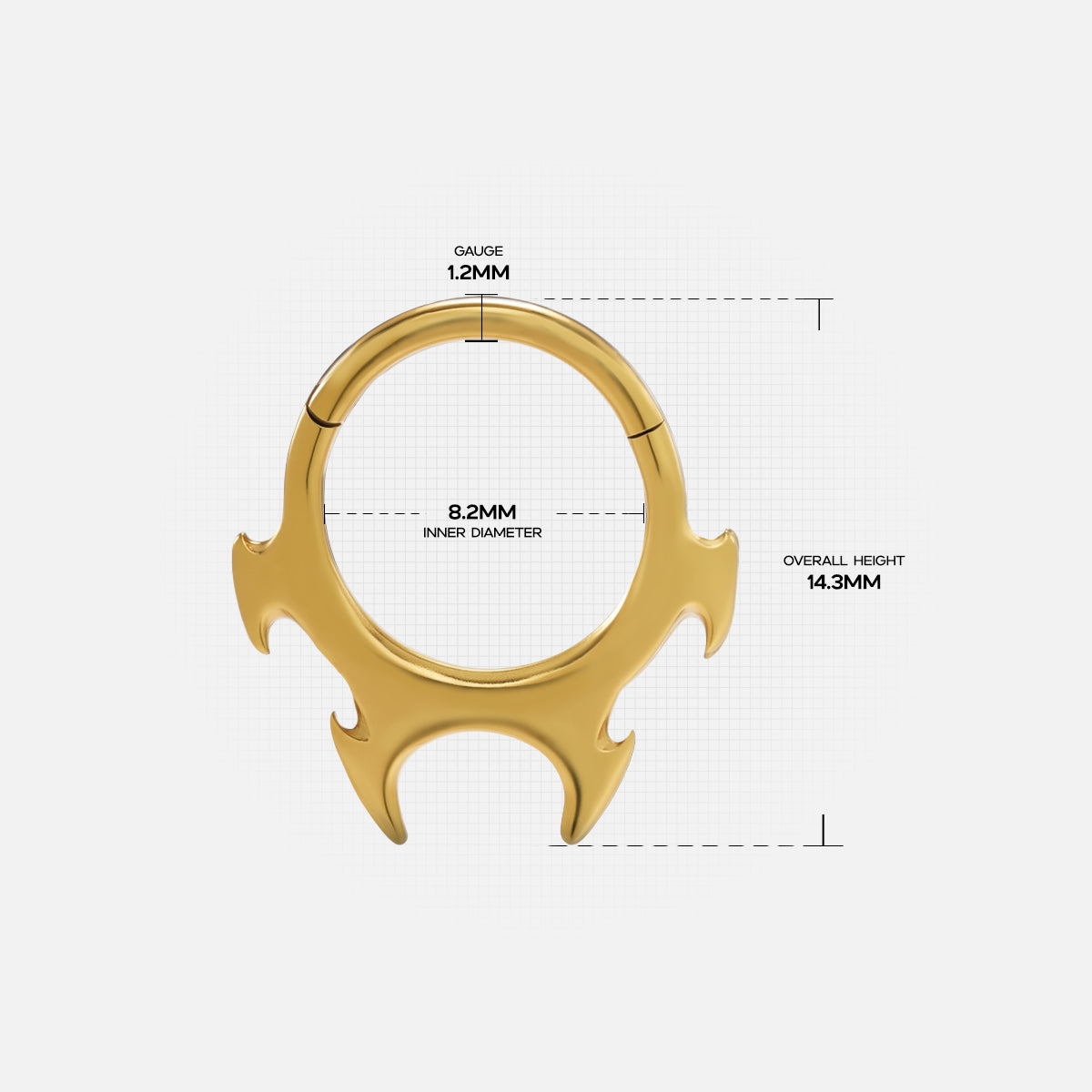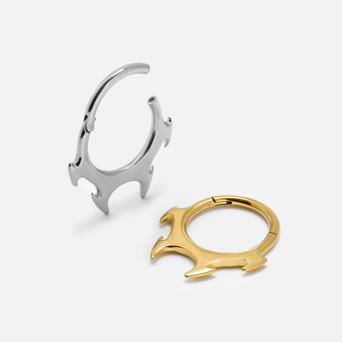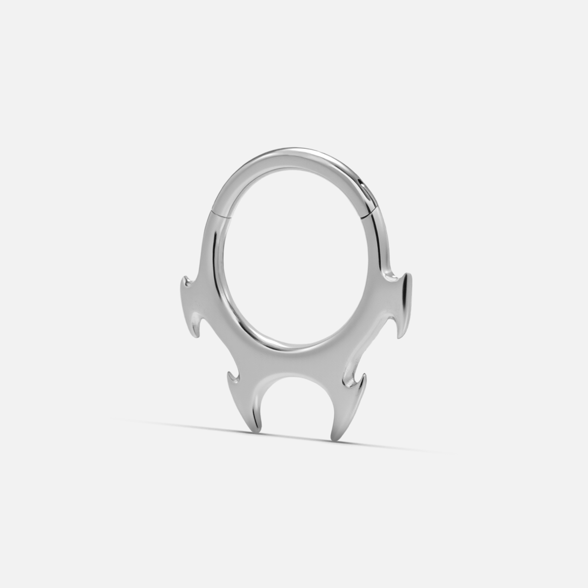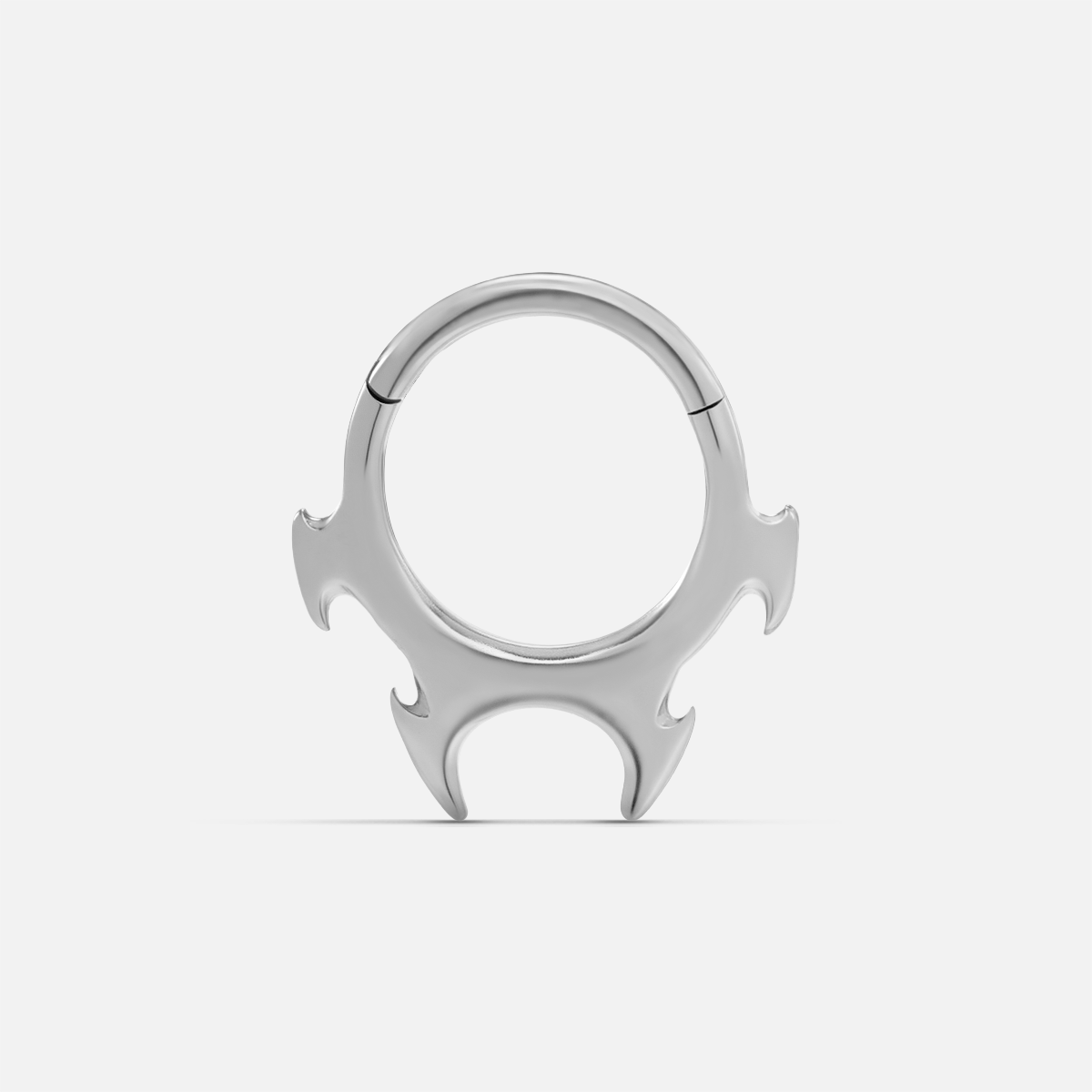 Fangs Septum Clicker features four curved fang-like tips arranged in a fierce symmetrical design, blending elegance with edge. This item is sold individually.