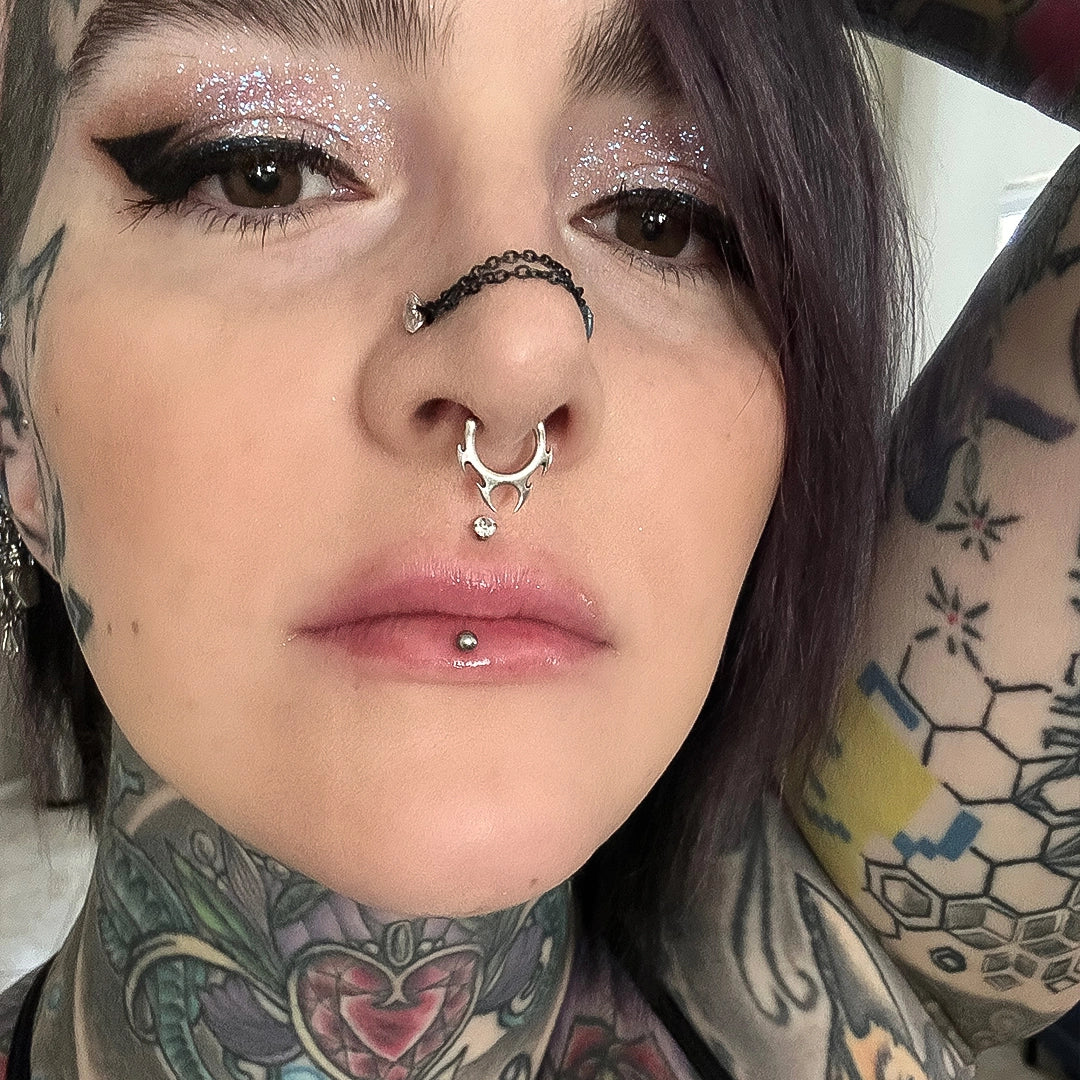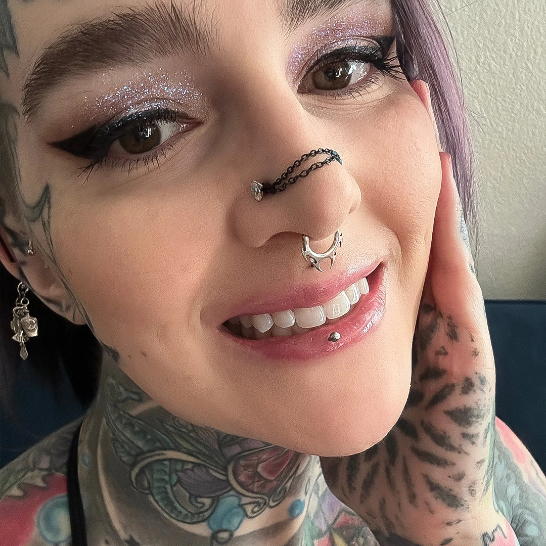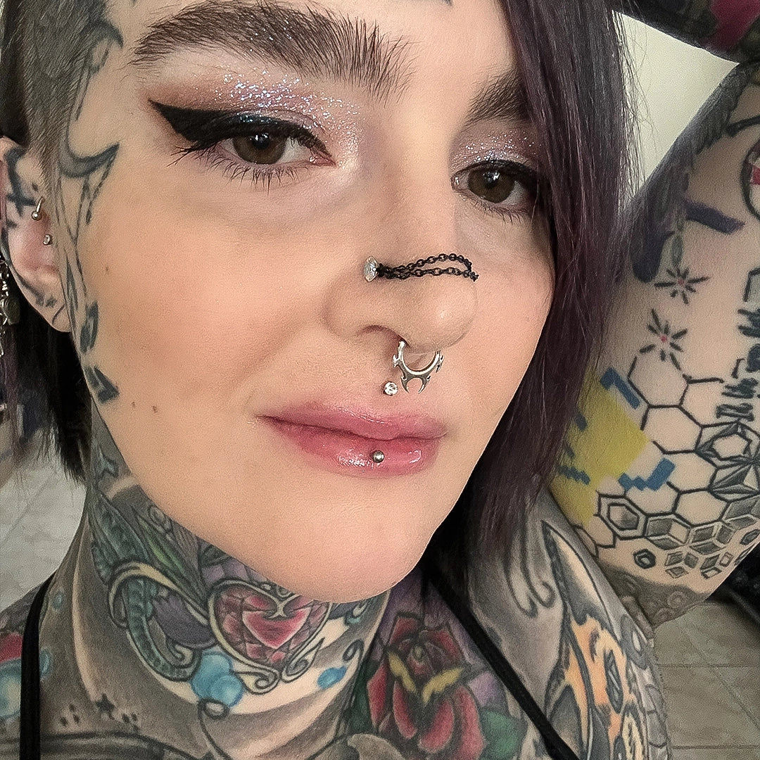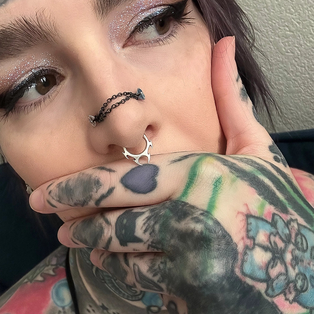 Perfect for lovers of body jewelry, punk piercing, tribal septum clickers, and alternative fashion aesthetics.