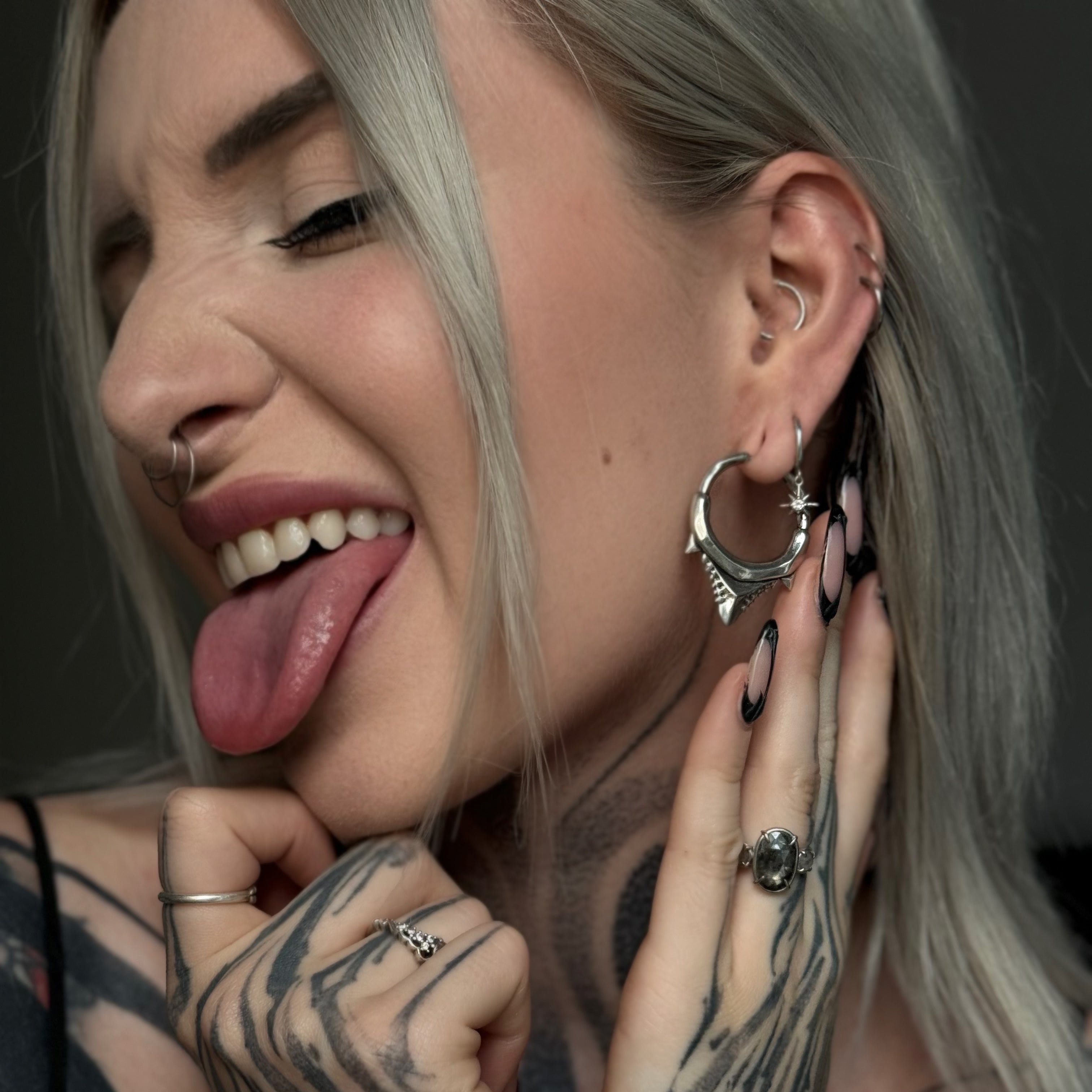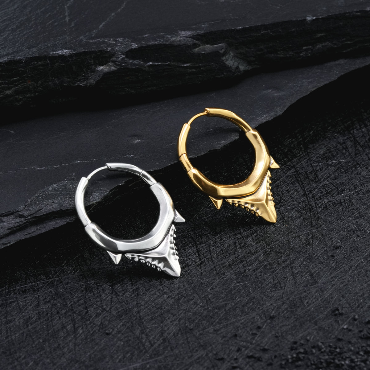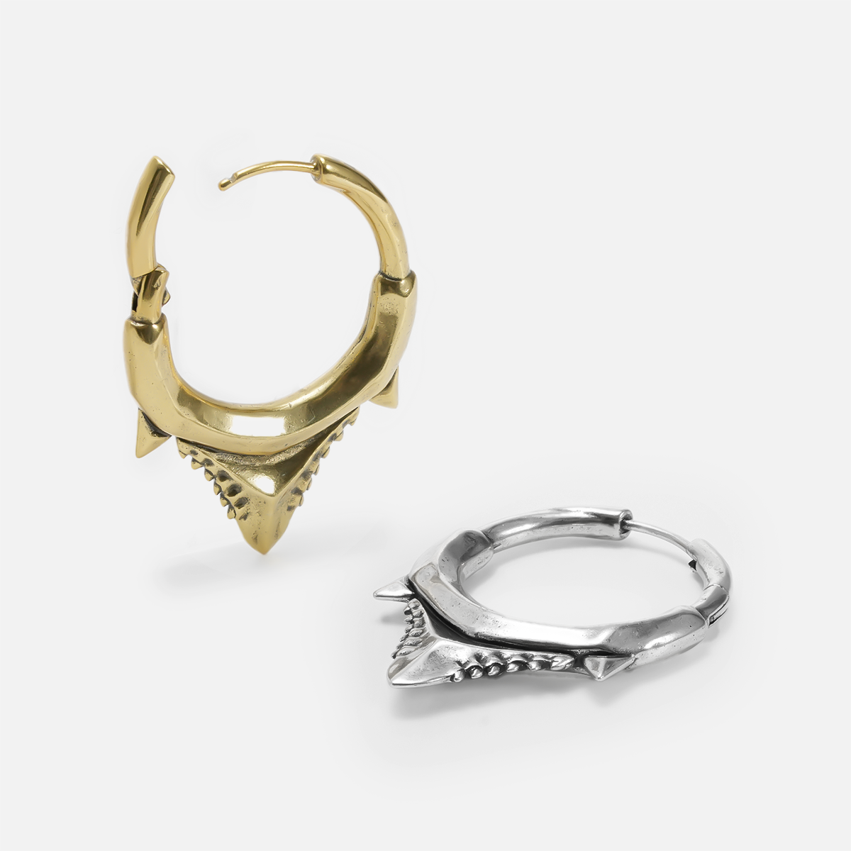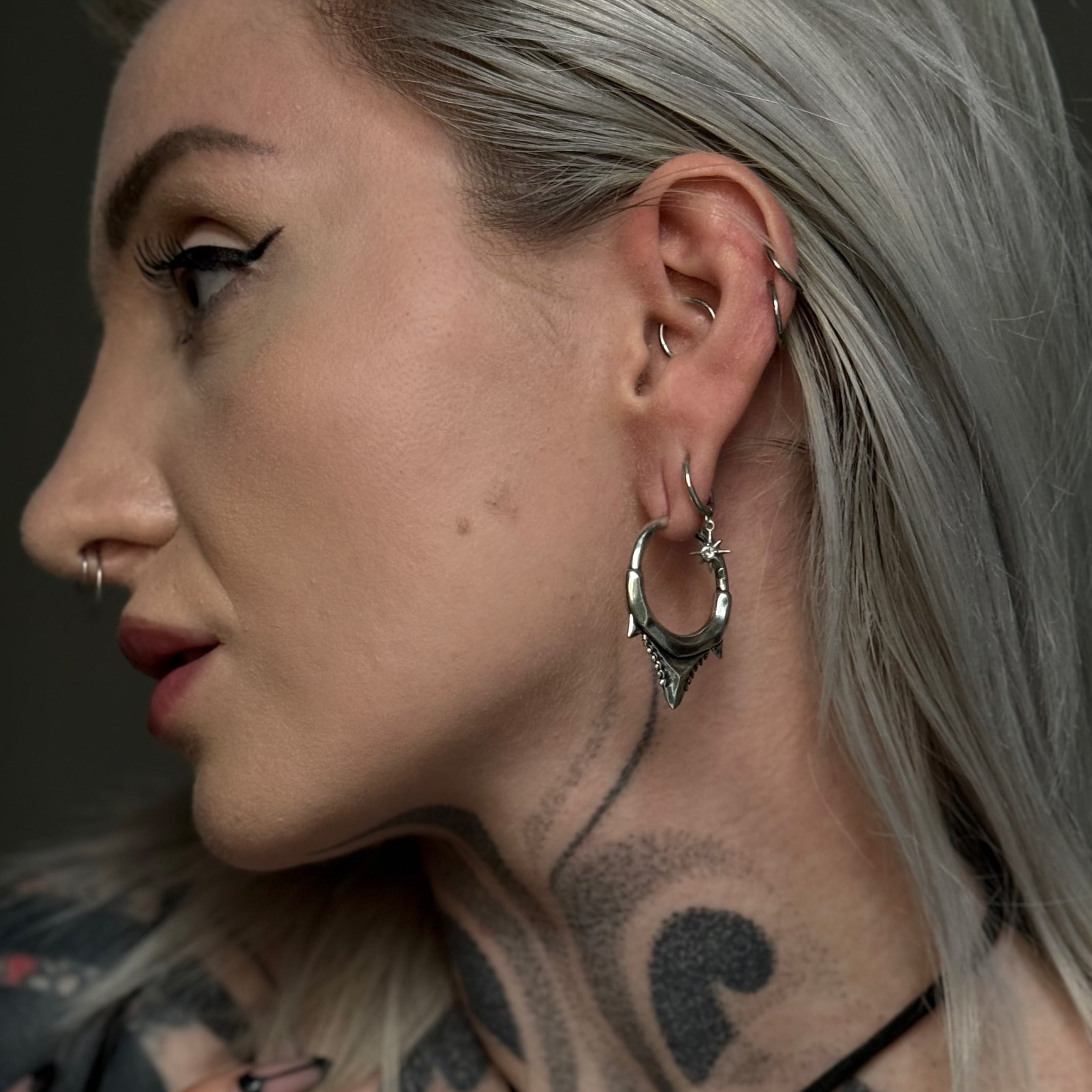 Perfect for lovers of fang earrings, shark jewelry, and edgy body piercing fashion.