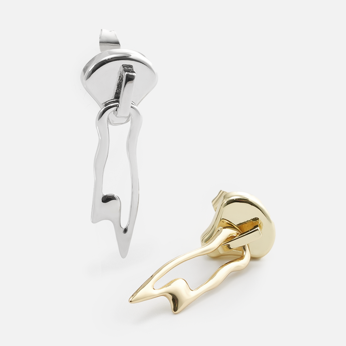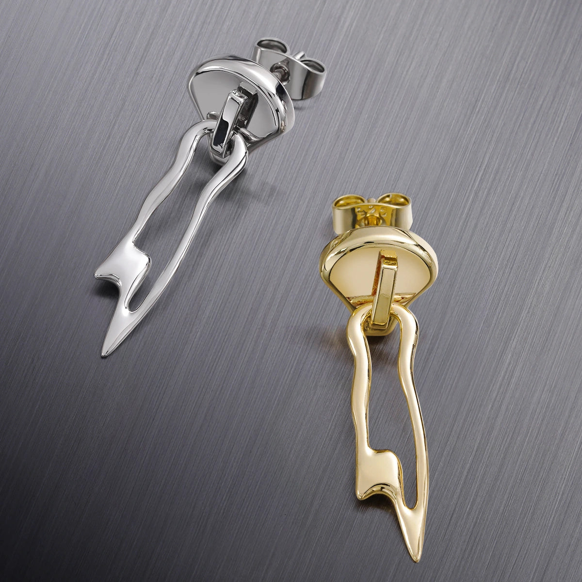 Inspired by contemporary abstract art, these earrings evoke movement and fluidity, reminiscent of dynamic forms.