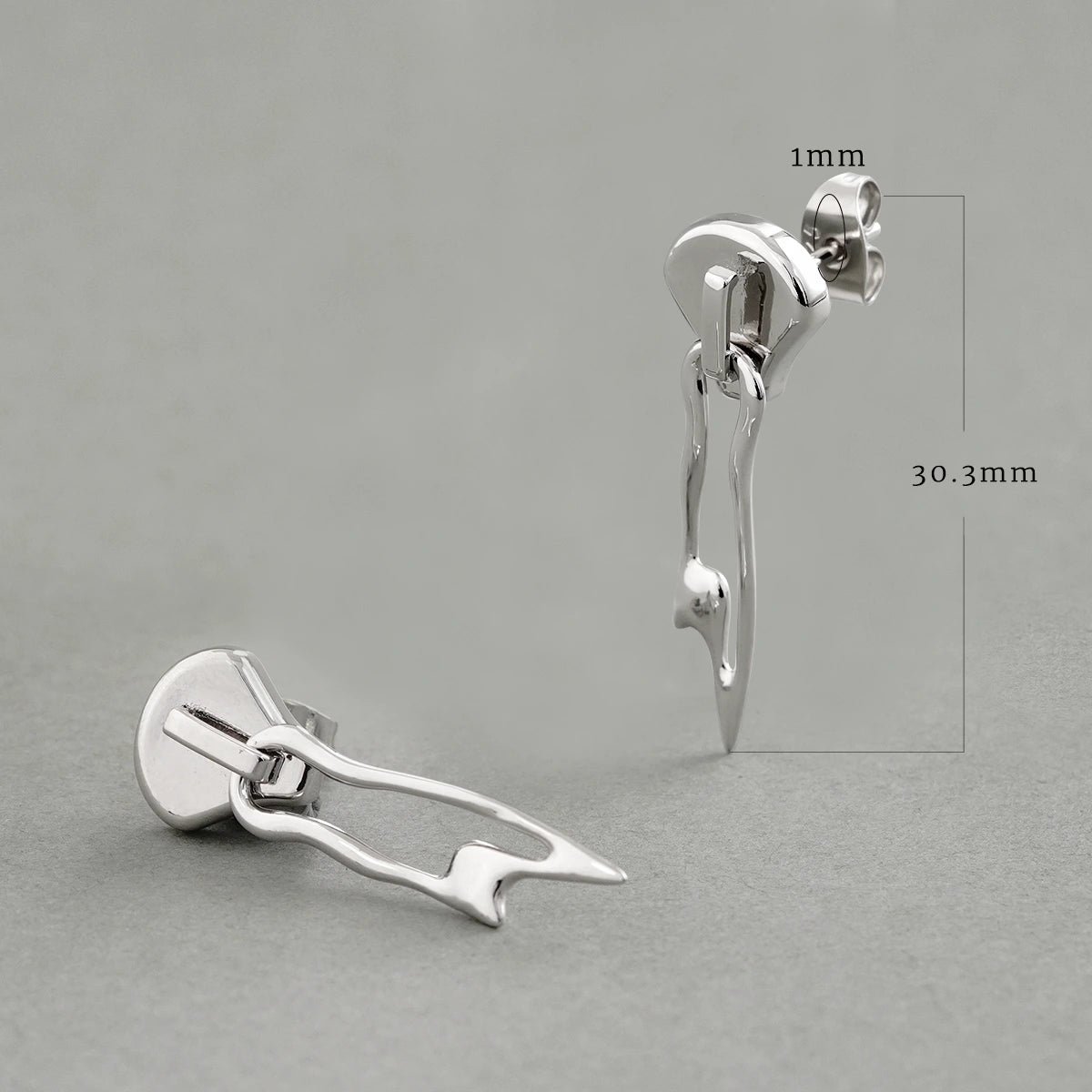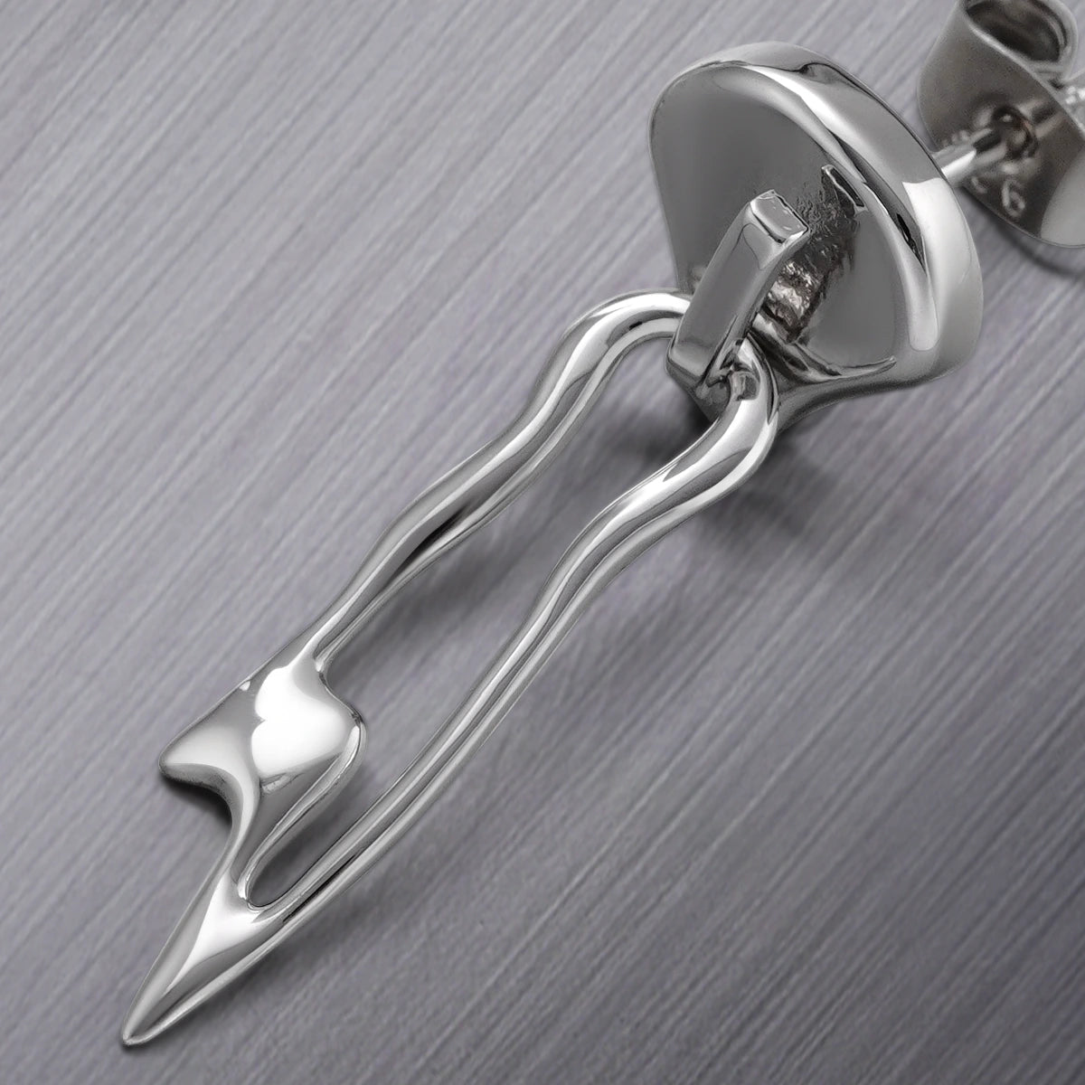 The Fluid Zip Earrings feature sleek, flowing lines that resemble a zipper, creating a striking visual appeal. Their modern design merges artistry with sophistication. This item is sold as a pair.