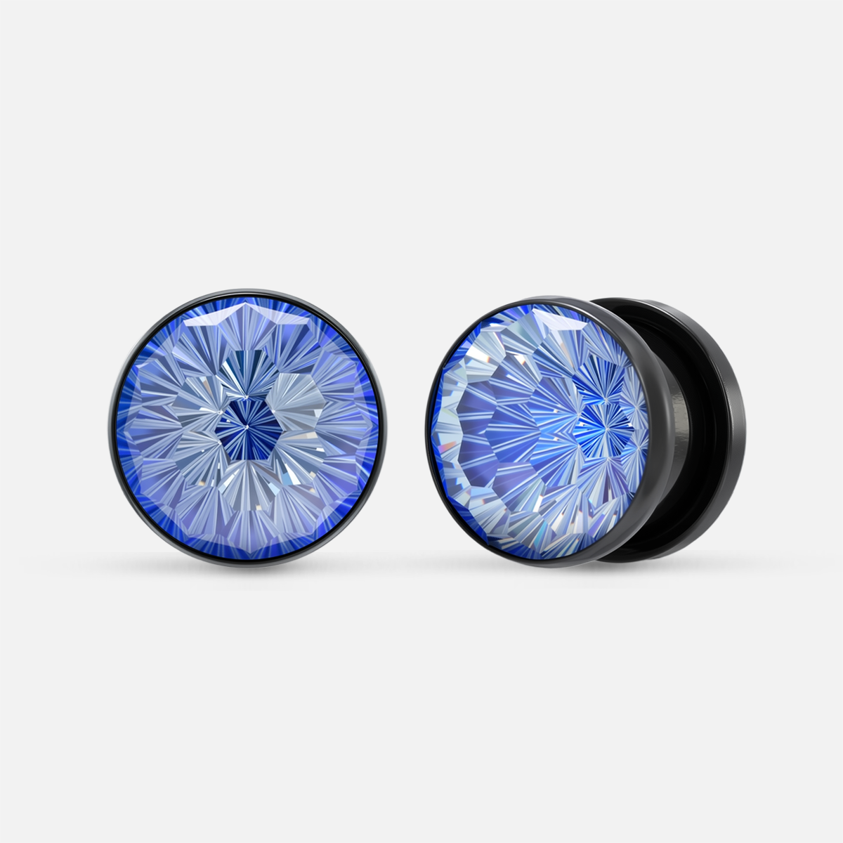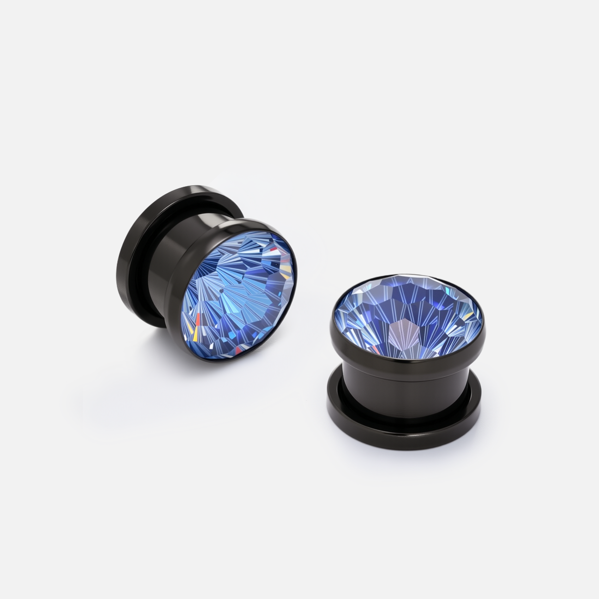 Frozen Star Plugs feature a faceted zircon with icy brilliance, set in a deep black tunnel base for striking contrast. This item is sold as a pair.