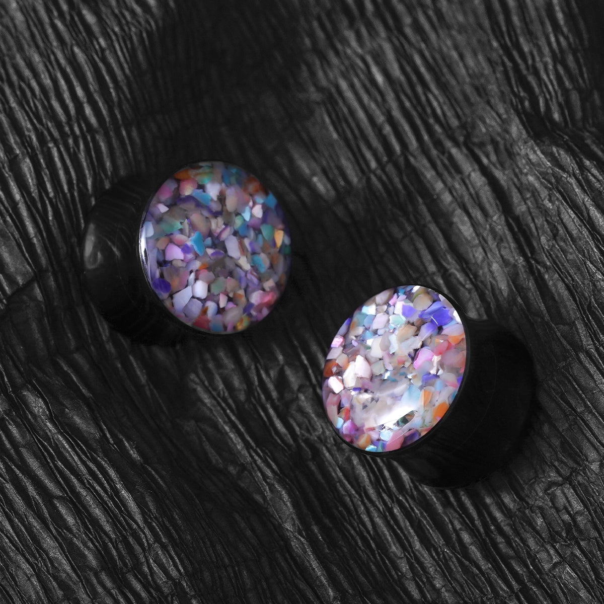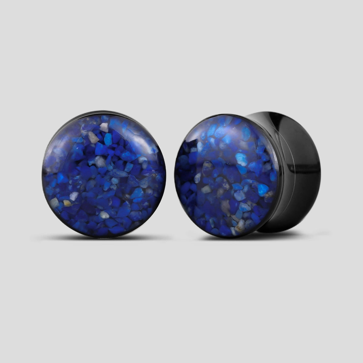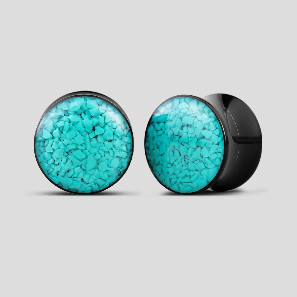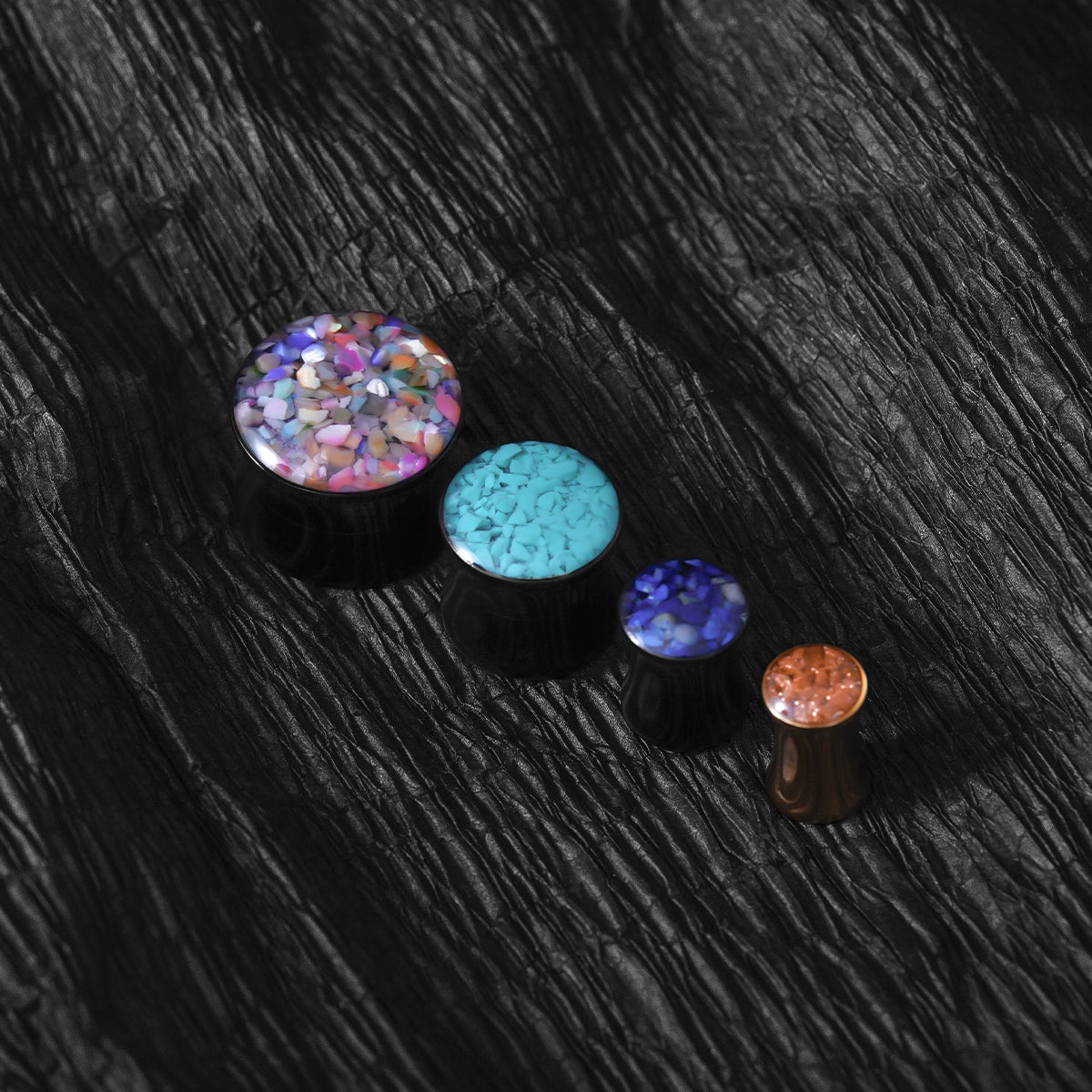 Turquoise, tourmaline, lapis lazuli, and goldstone form a vibrant mosaic, showcasing nature's harmony. This item is sold as a pair.