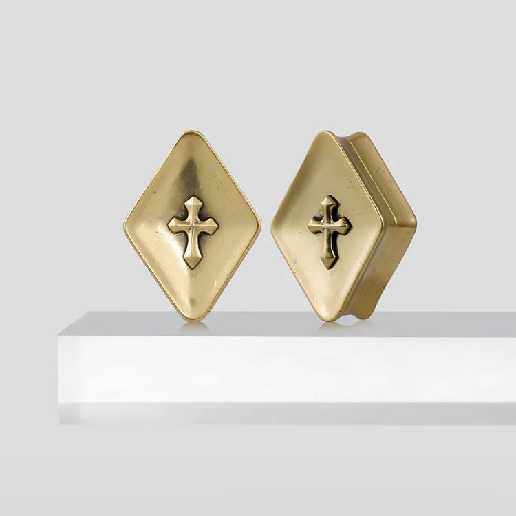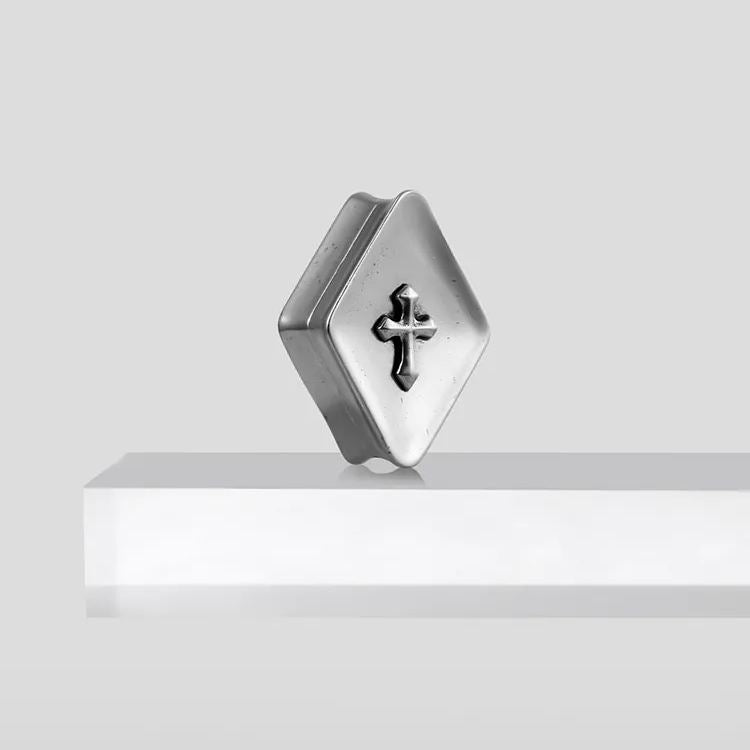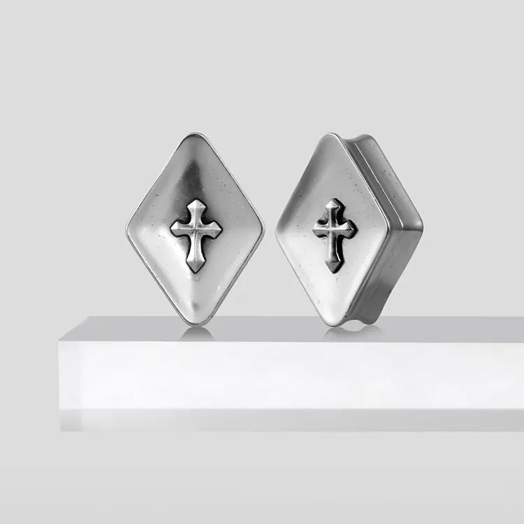 Gothic Cross Plugs feature a sleek, diamond-shaped design with a prominent cross at the center, exuding a powerful and elegant aesthetic.This item is sold as a pair.