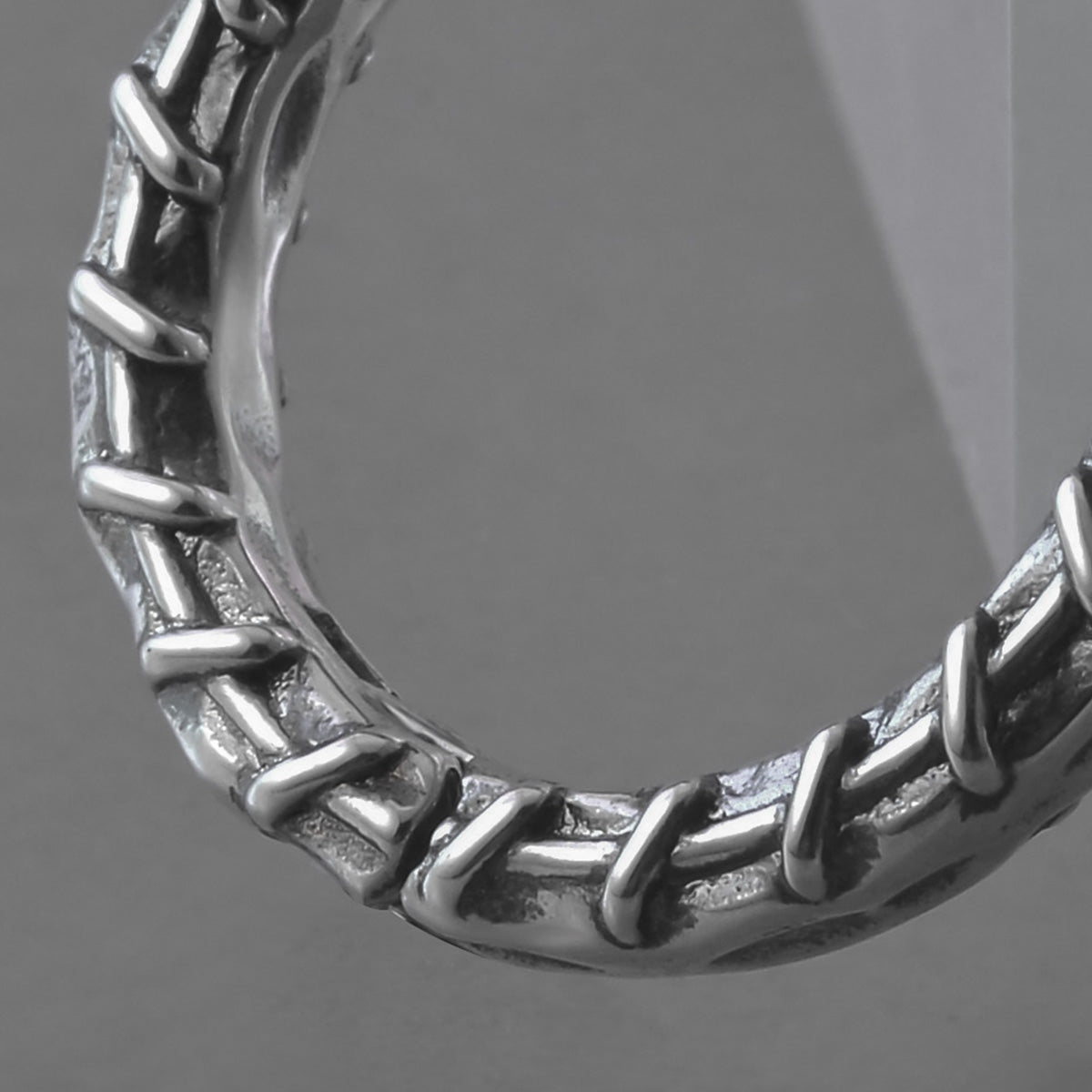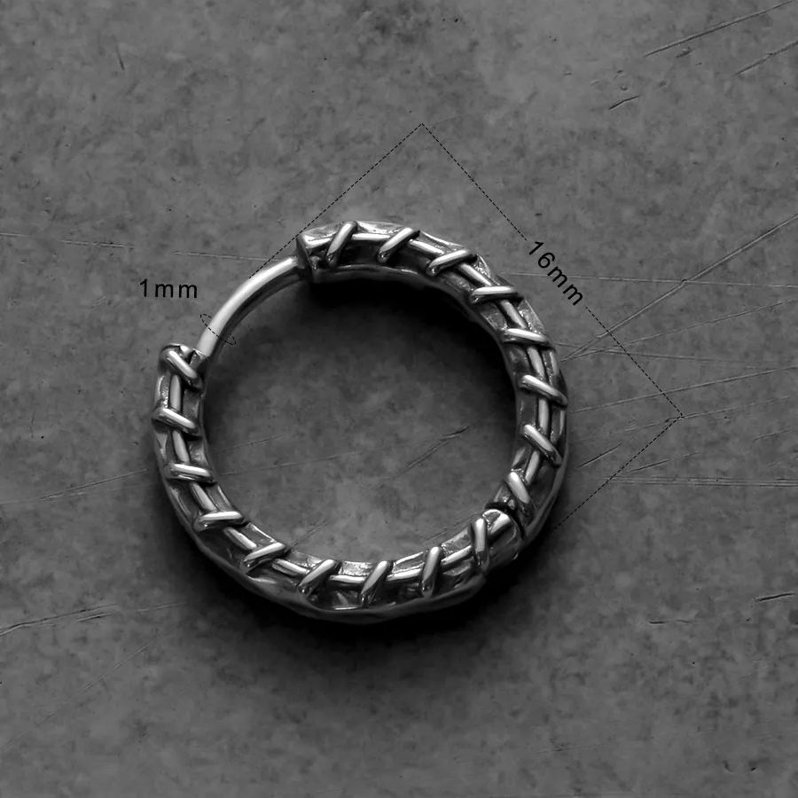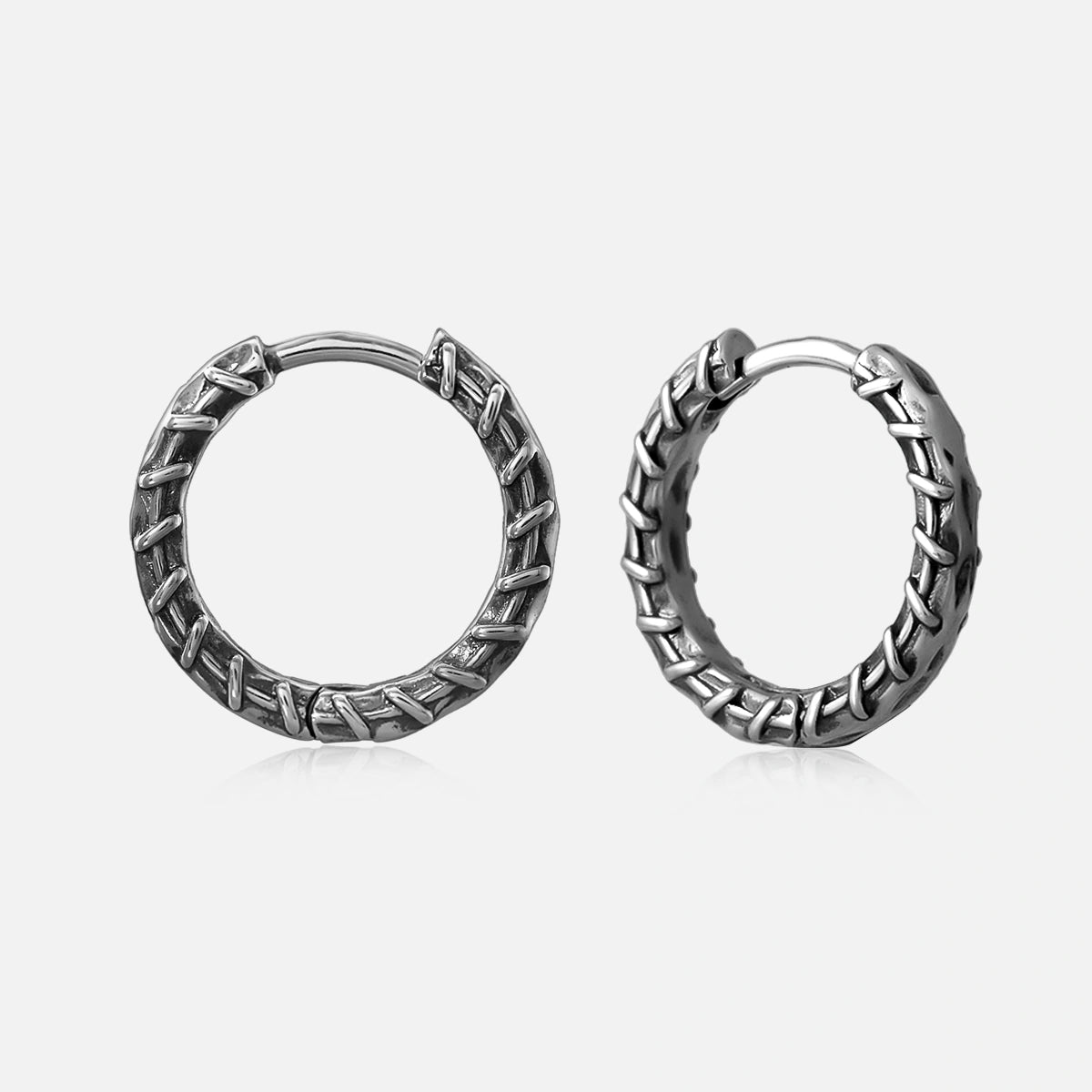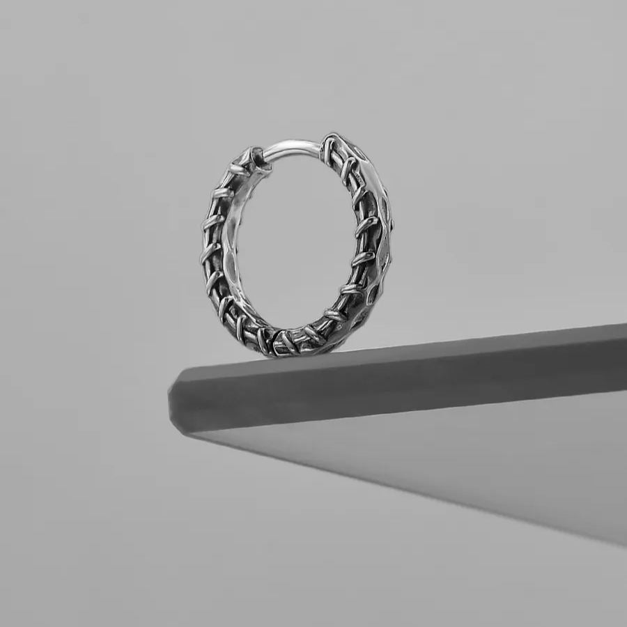The earrings feature an intricate stitched pattern, creating a robust and detailed look reminiscent of healing and mending. This item is sold as a pair.