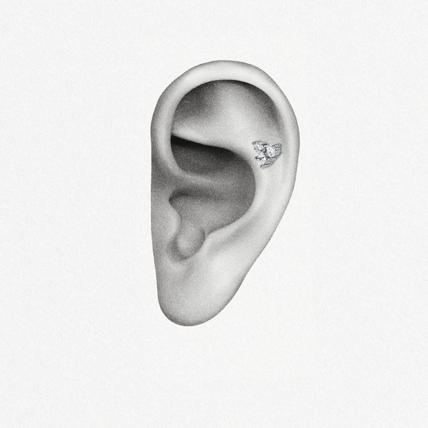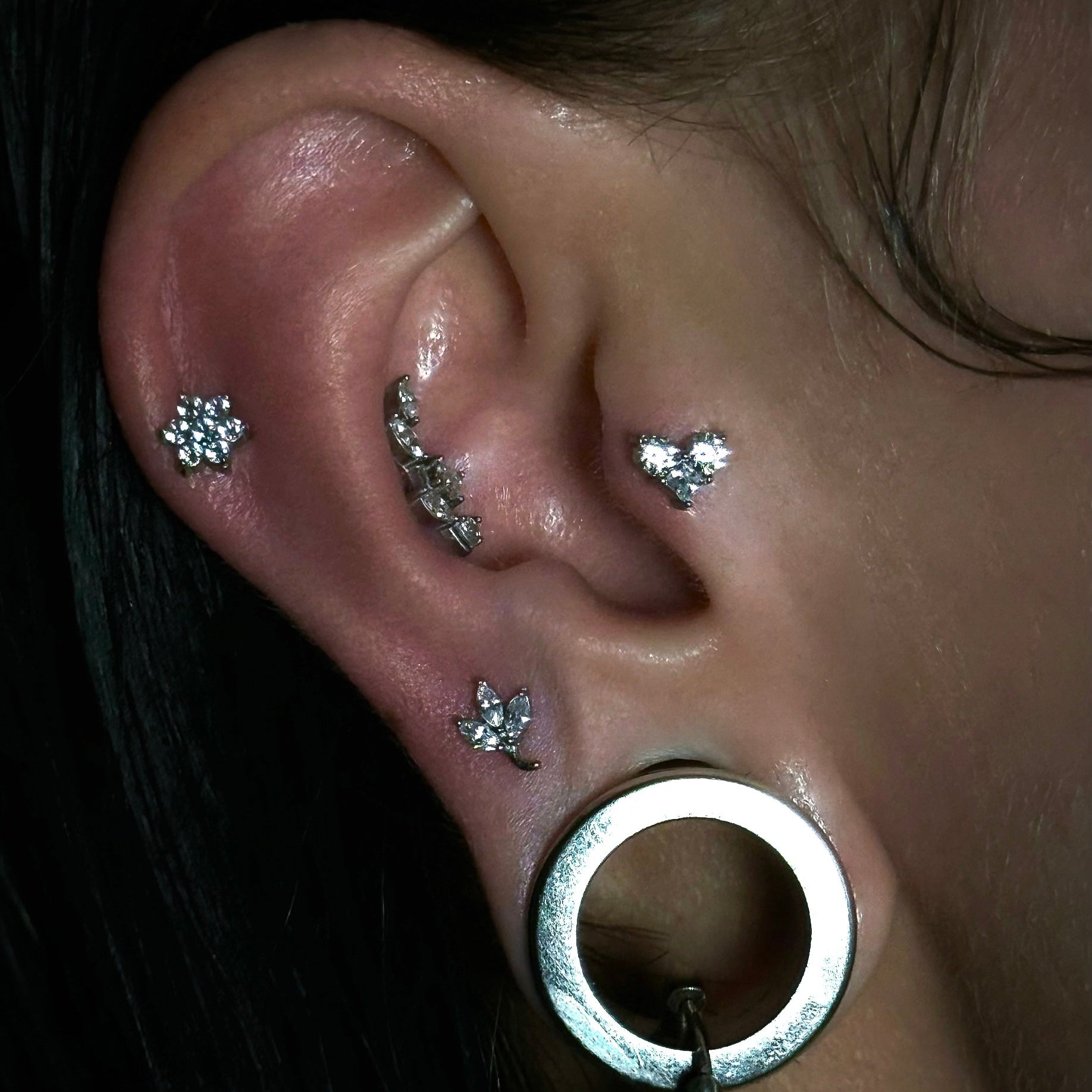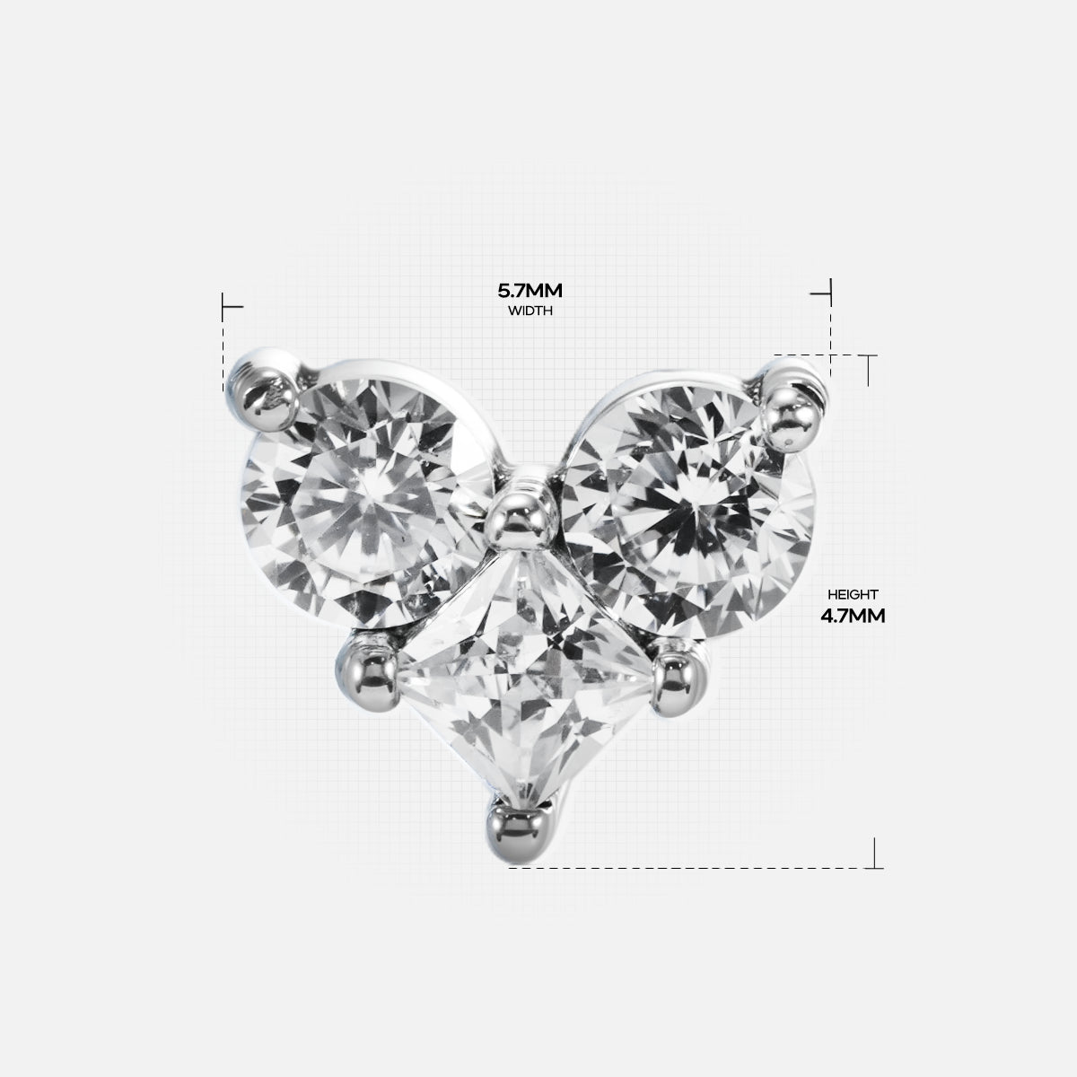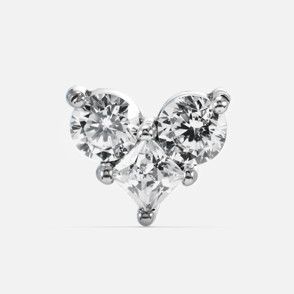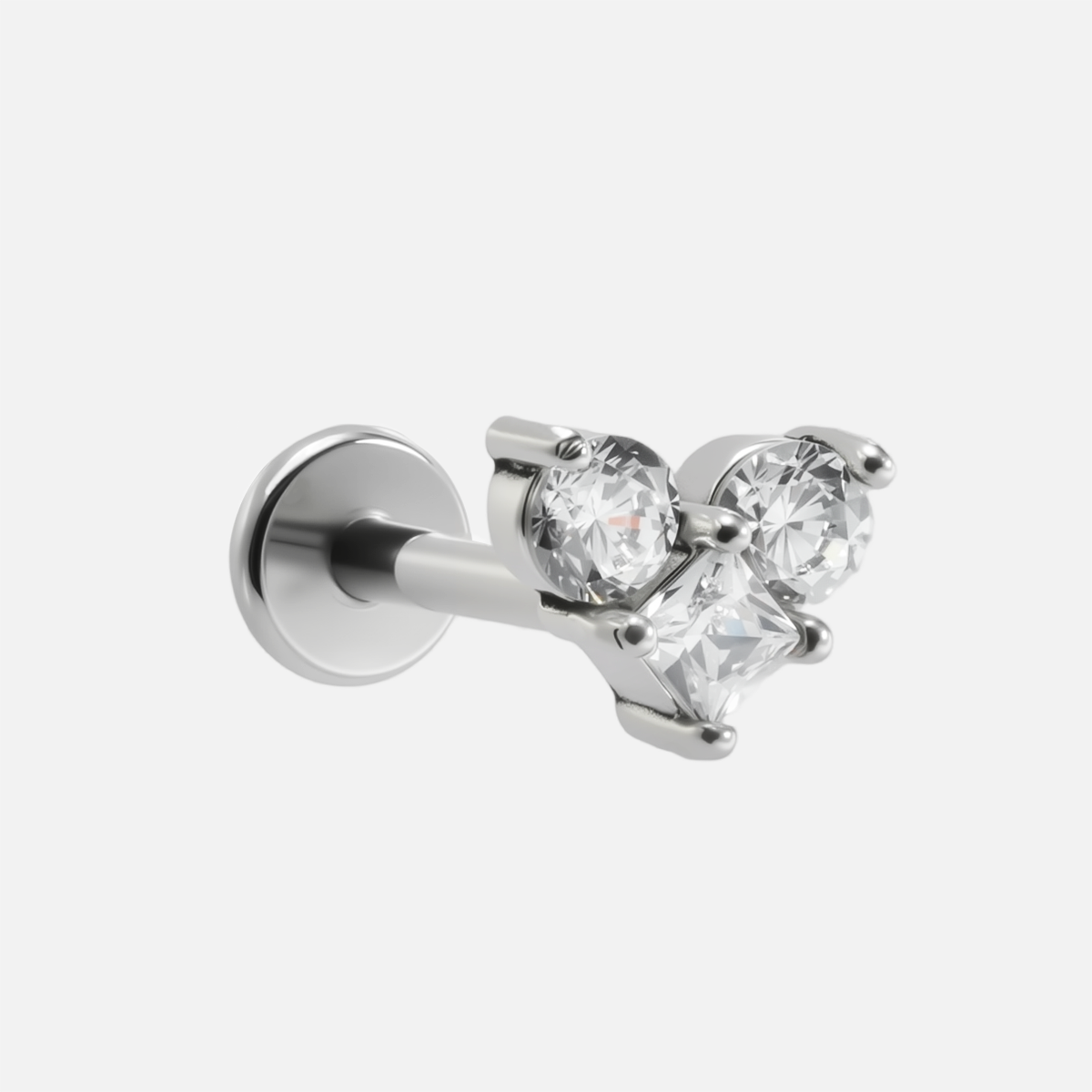 The Heart Gemstone Flat Back Studs feature a unique geometric arrangement of three sparkling gemstones, blending elegance with modern style, perfect for various piercing looks. This item is sold individually.