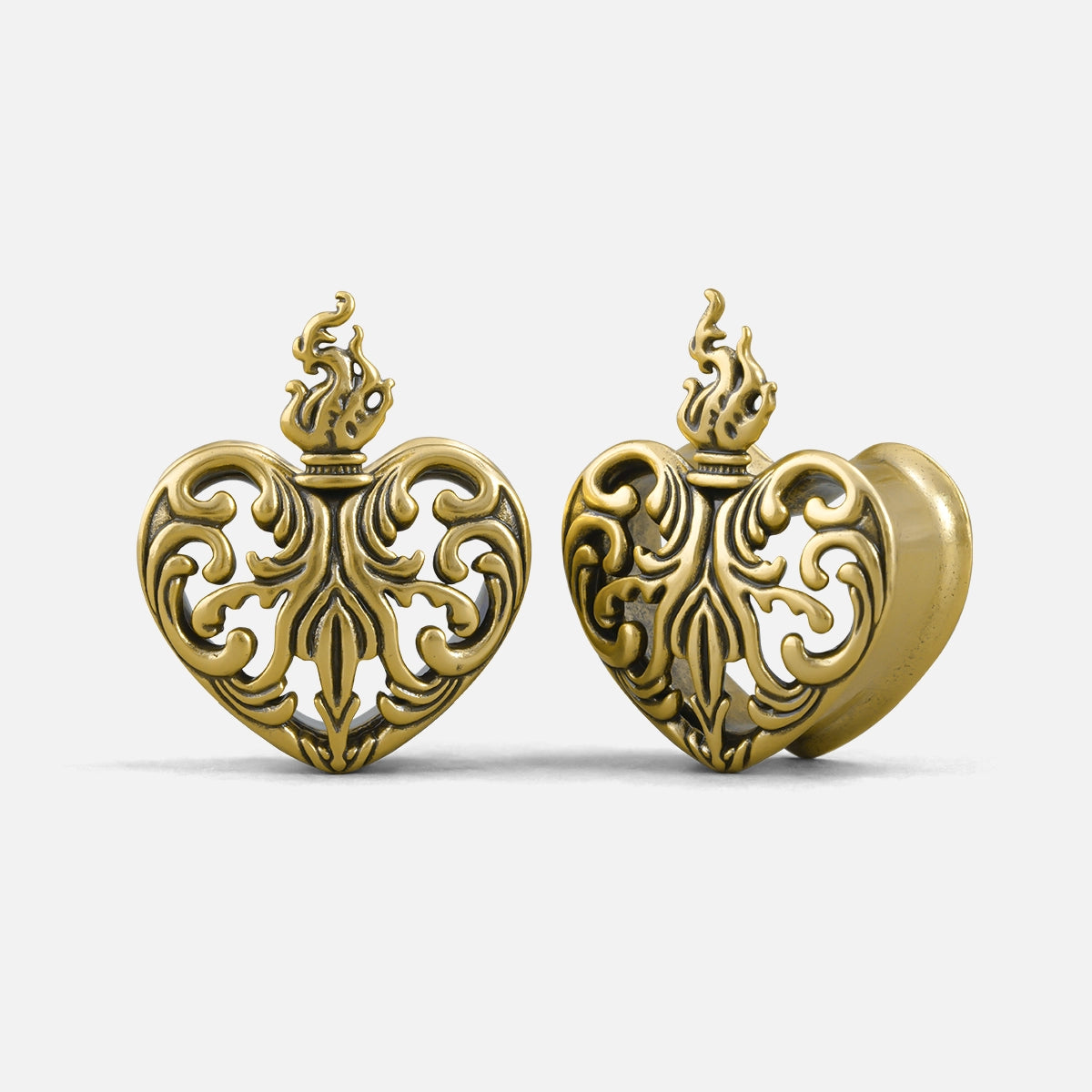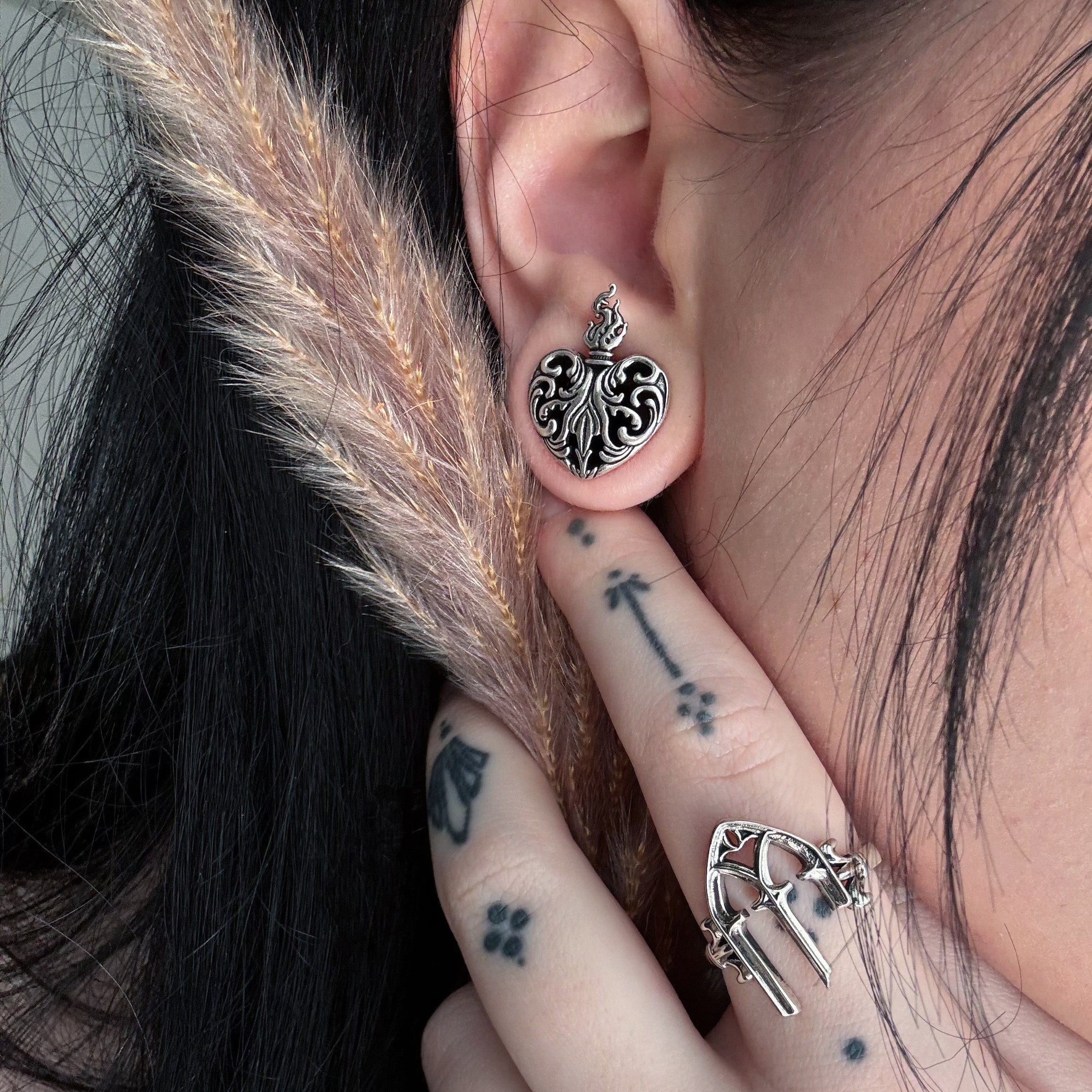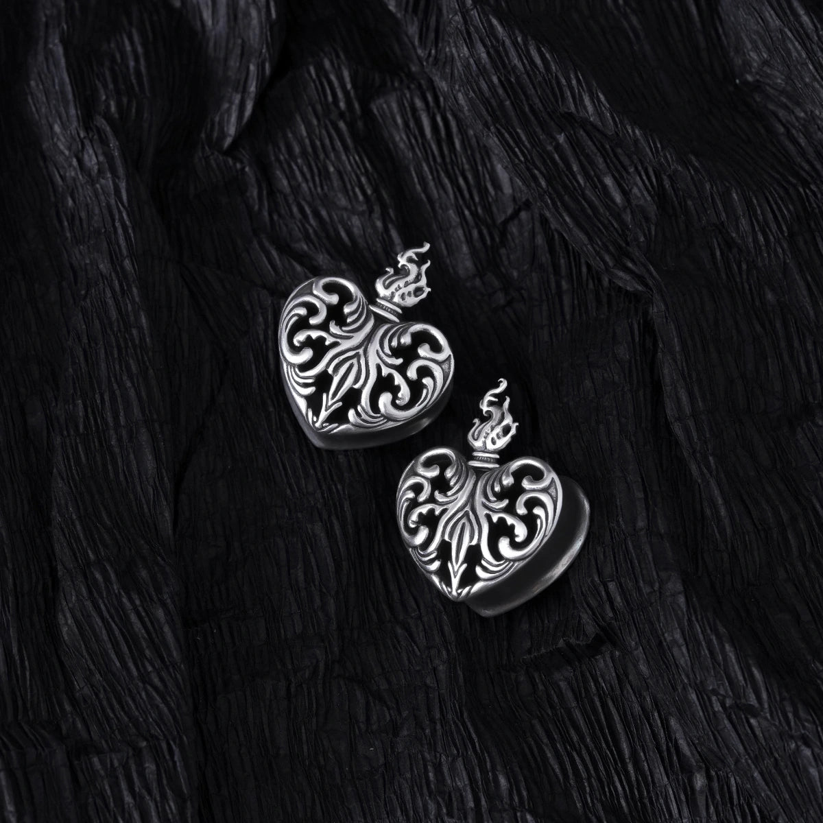 Exquisite heart-shaped piercing jewelry, adorned with flame motifs, showcasing inner passion and beauty. This item is sold as a pair.