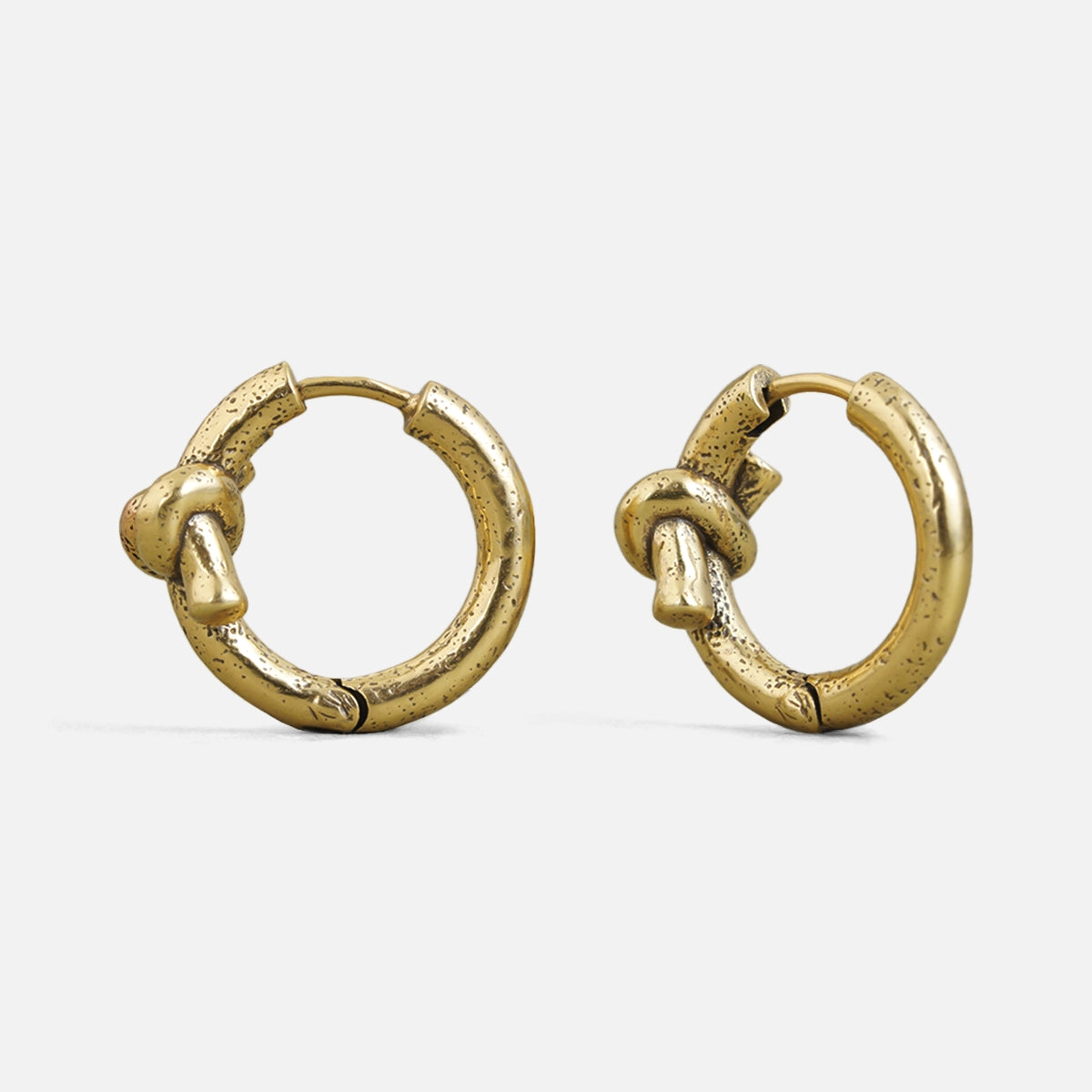 Heritage Loop Earrings feature a timeless circular design with intricate knot details, offering a vintage aesthetic. This item is sold as a pair.