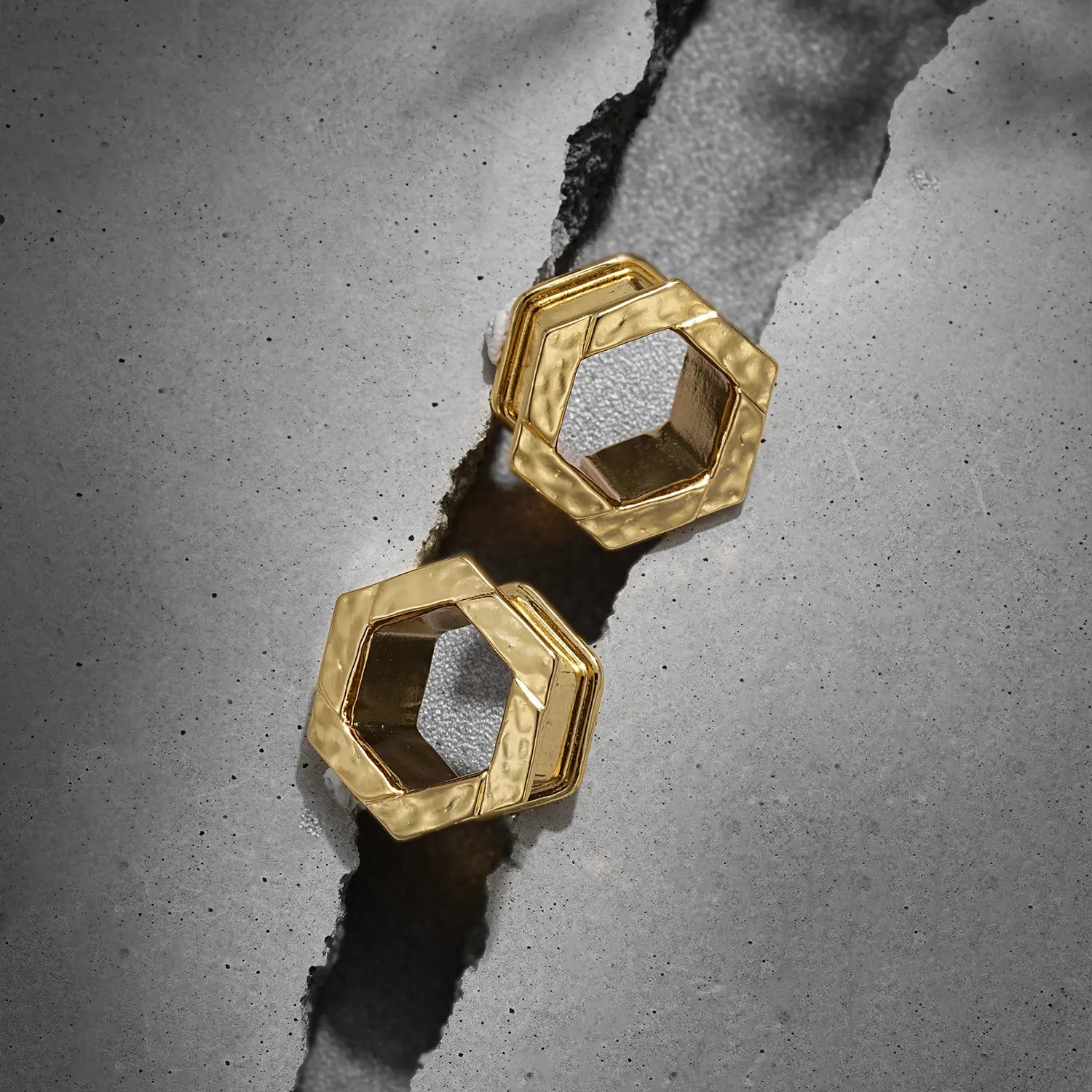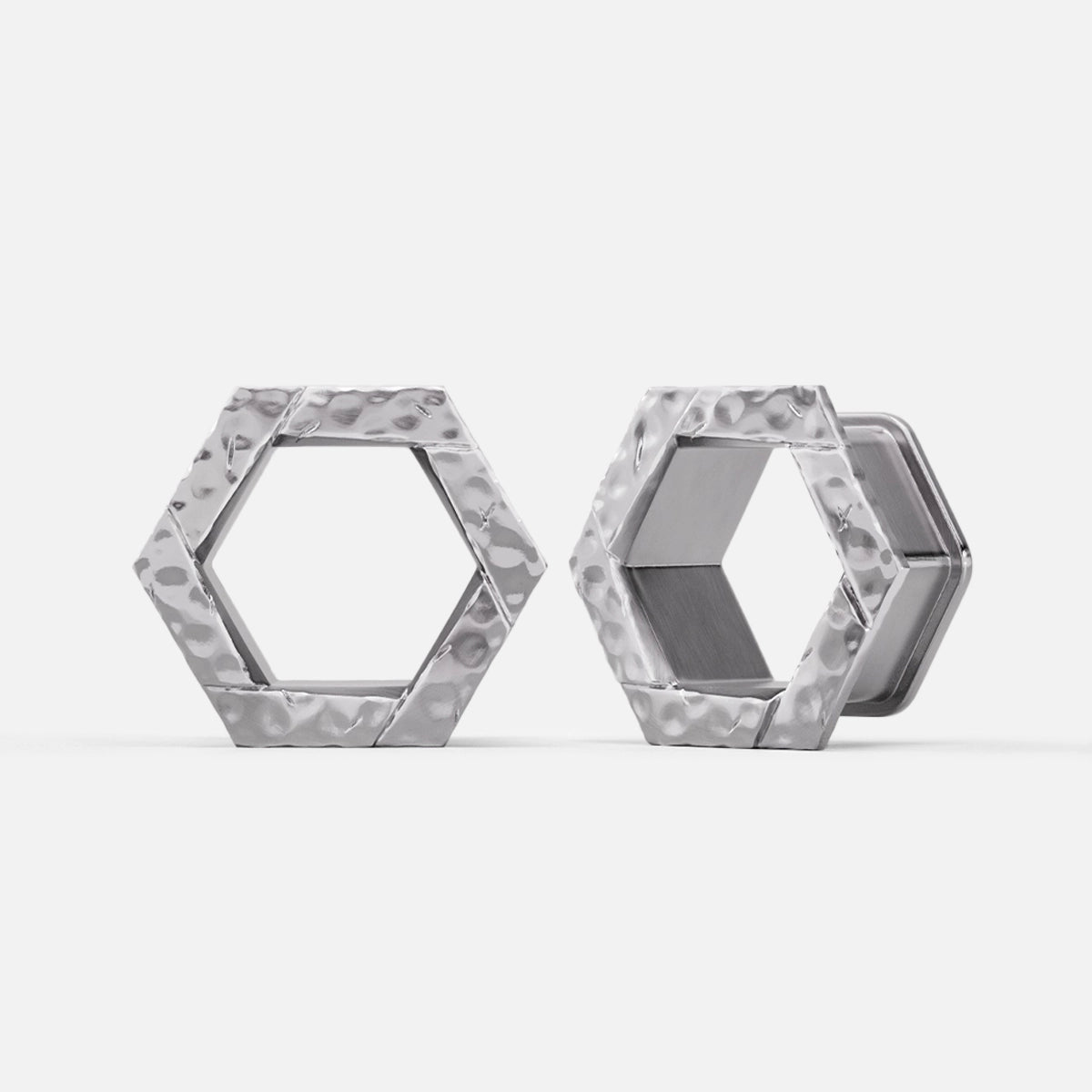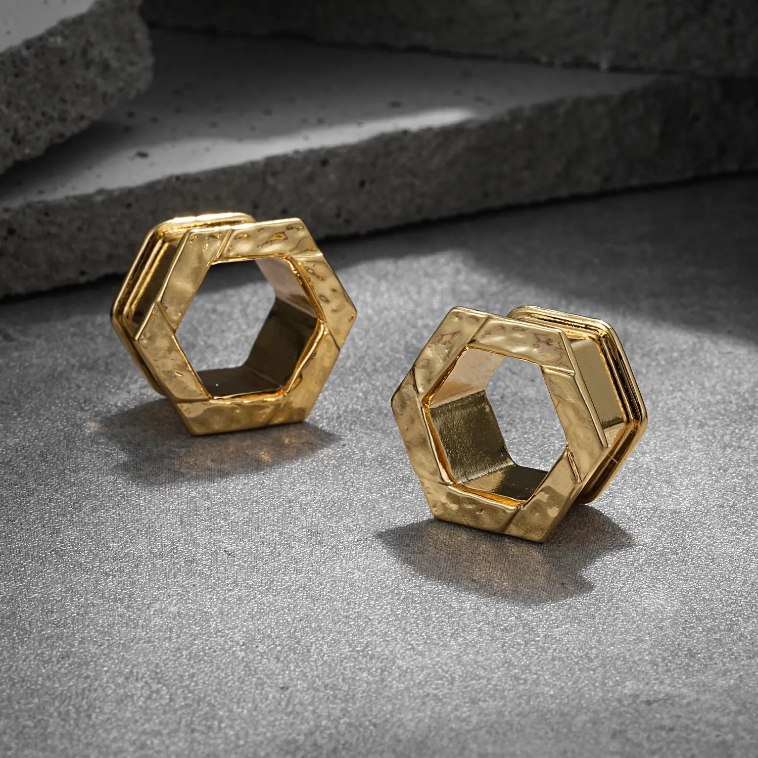 Featuring a stunning hexagonal design, this piece combines modern and classic elements to showcase unique geometric beauty. This item is sold as a pair.