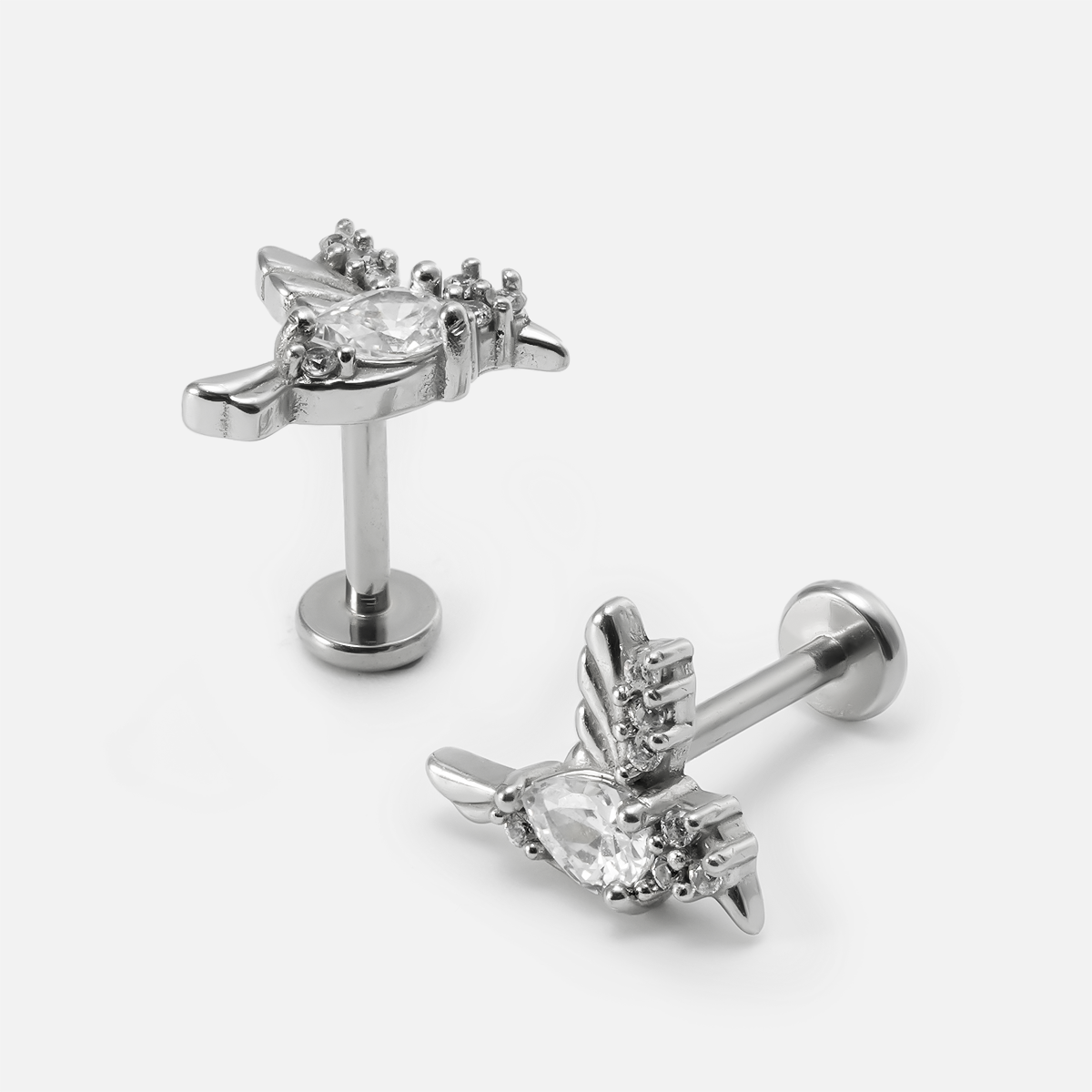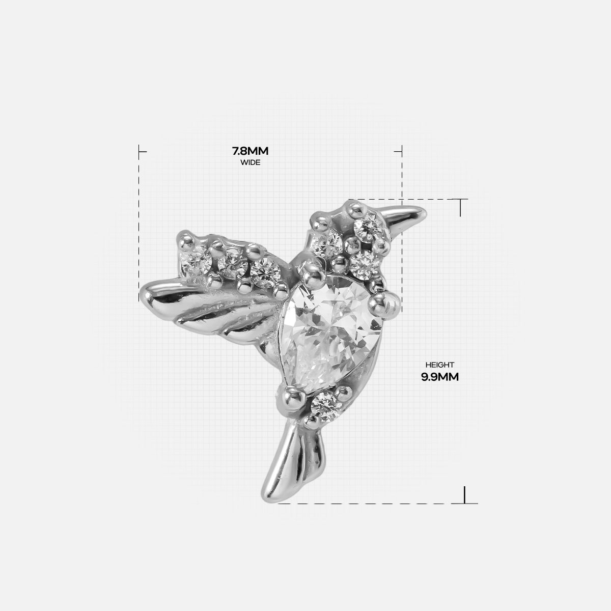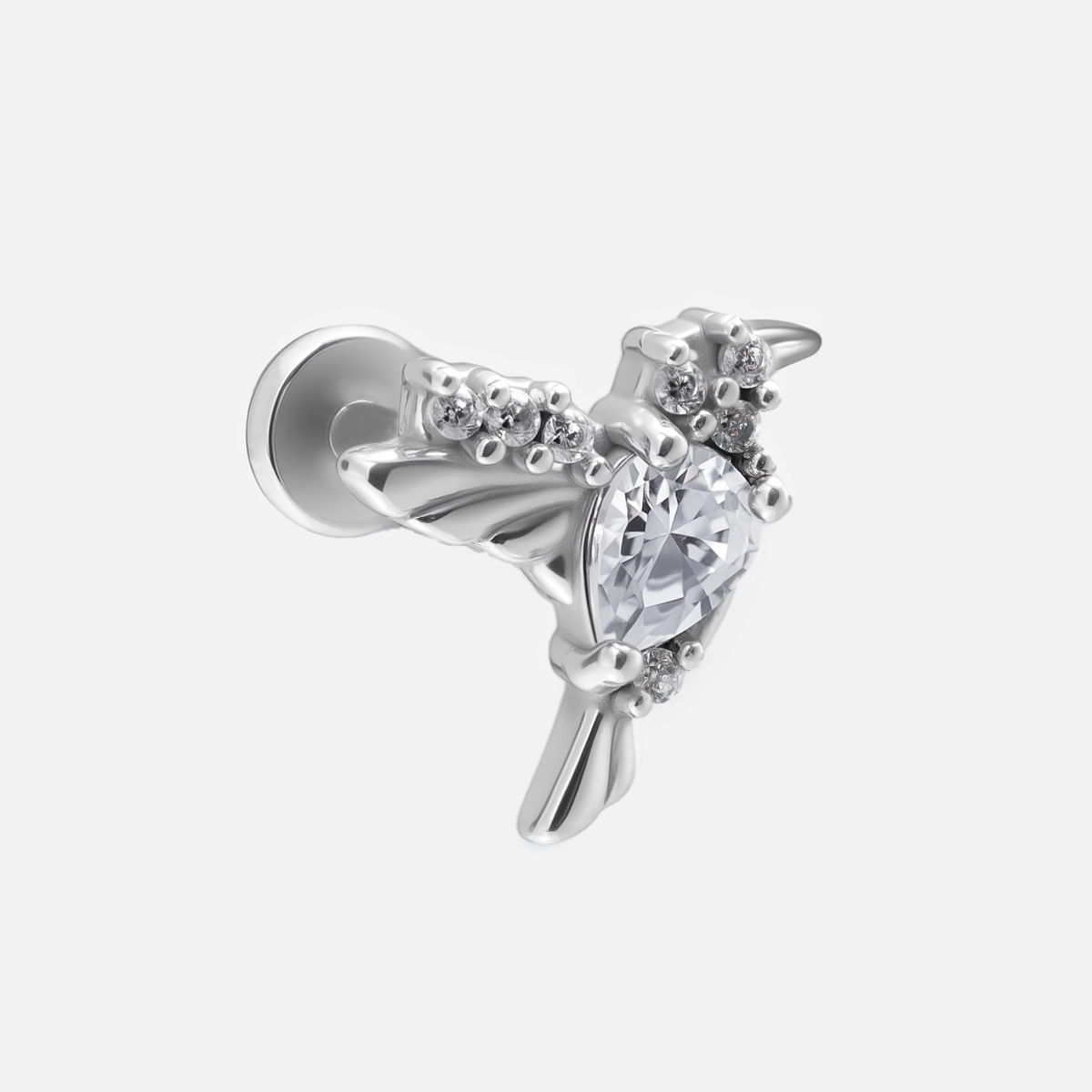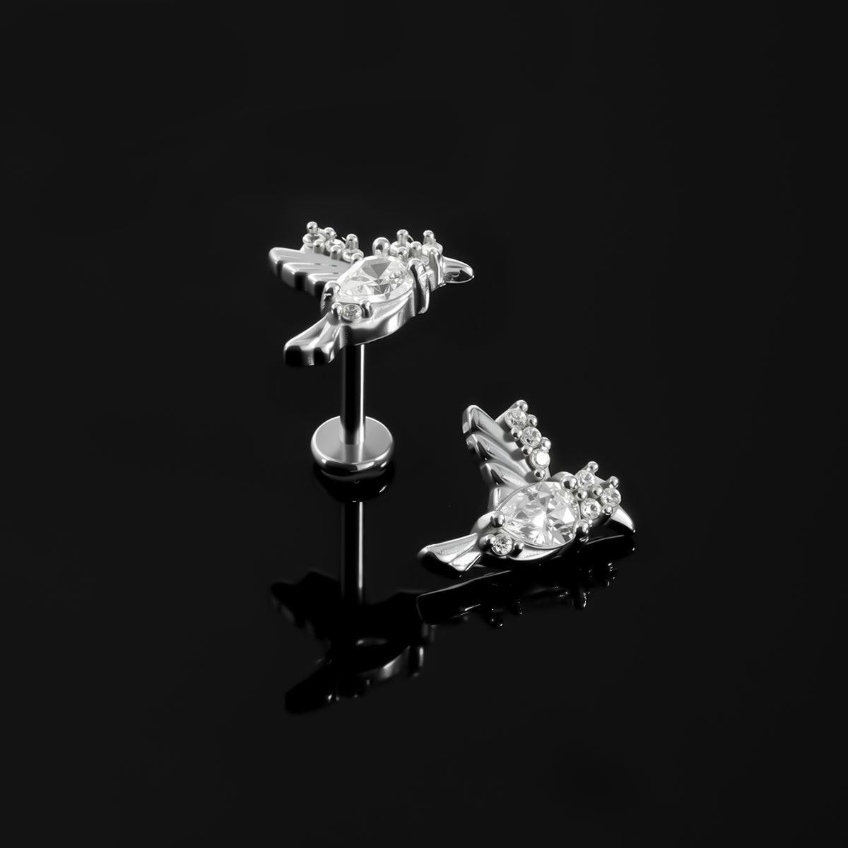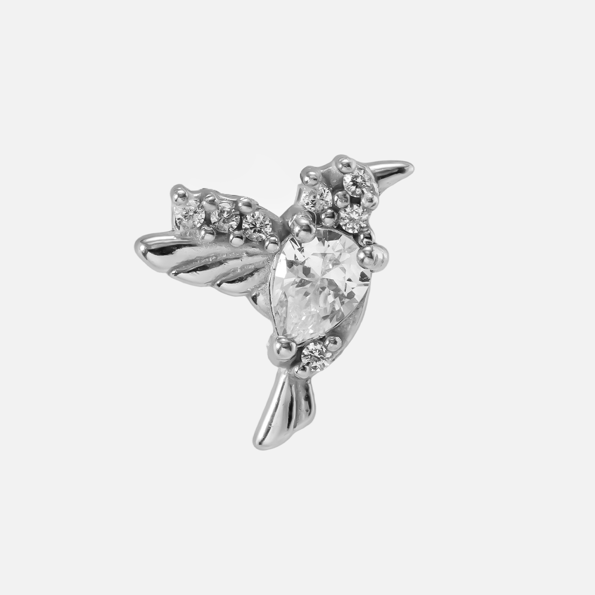 The Hummingbird Grace Flat Back Stud features an exquisite hummingbird design, embodying nature's elegance and vitality, perfect for modern piercing jewelry. This item is sold individually.