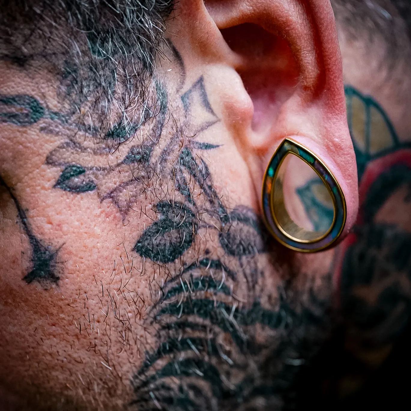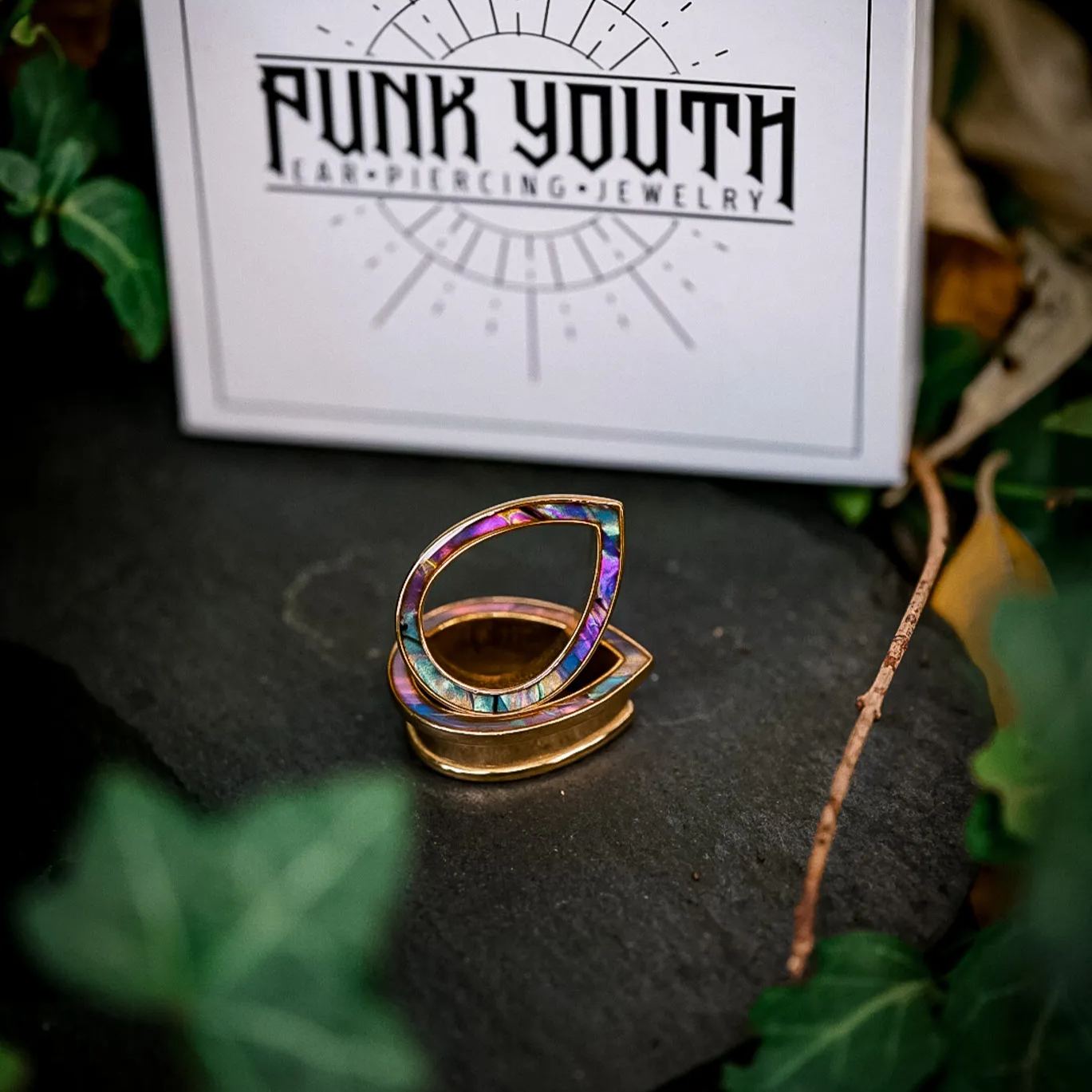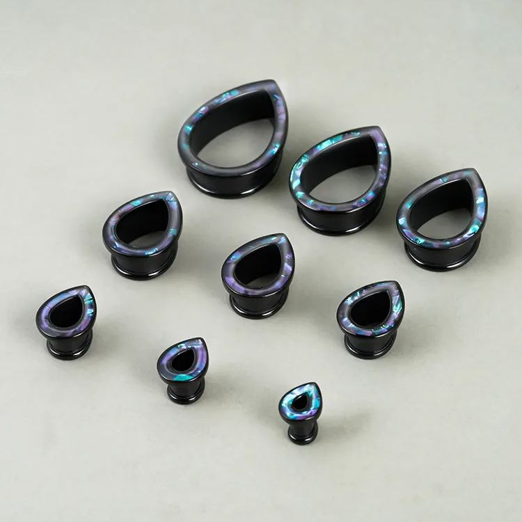 The design features a sleek teardrop shape with an iridescent finish that changes color at different angles, creating a mesmerizing visual effect. This item is sold as a pair.