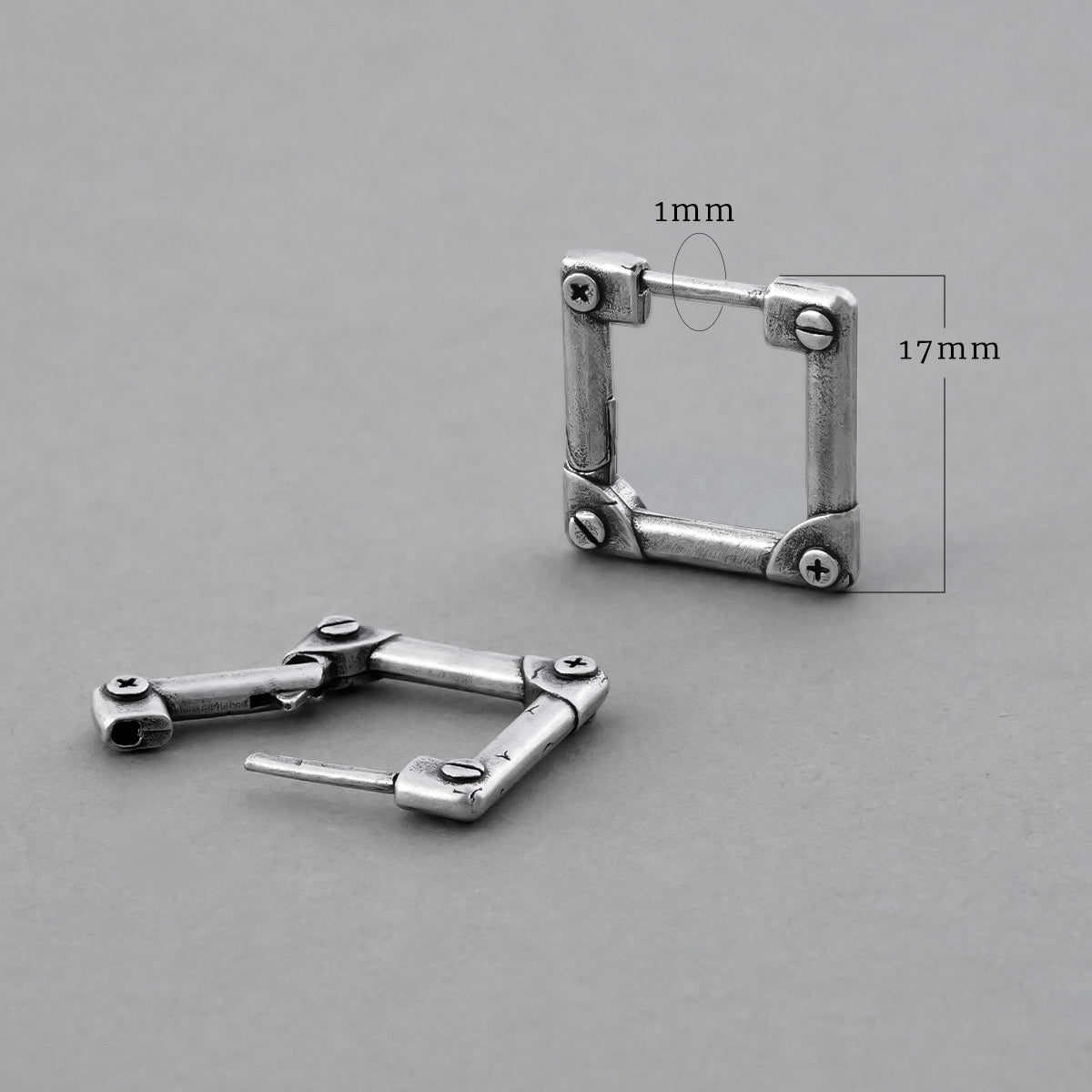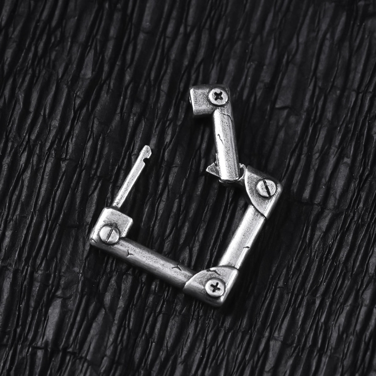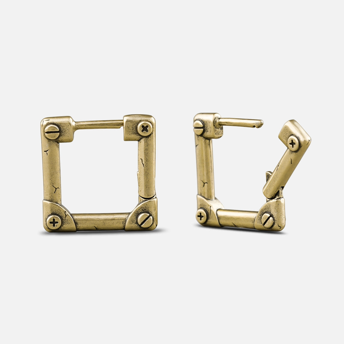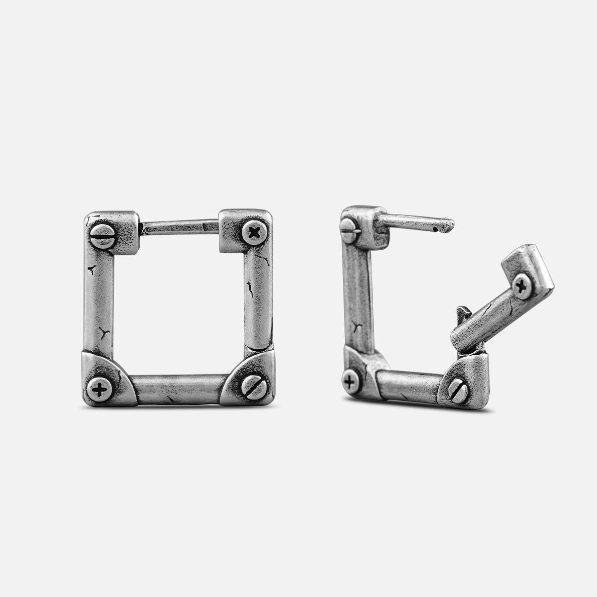 The design features an industrial style with a bold, mechanical hinge-like structure. This item is sold as a pair.