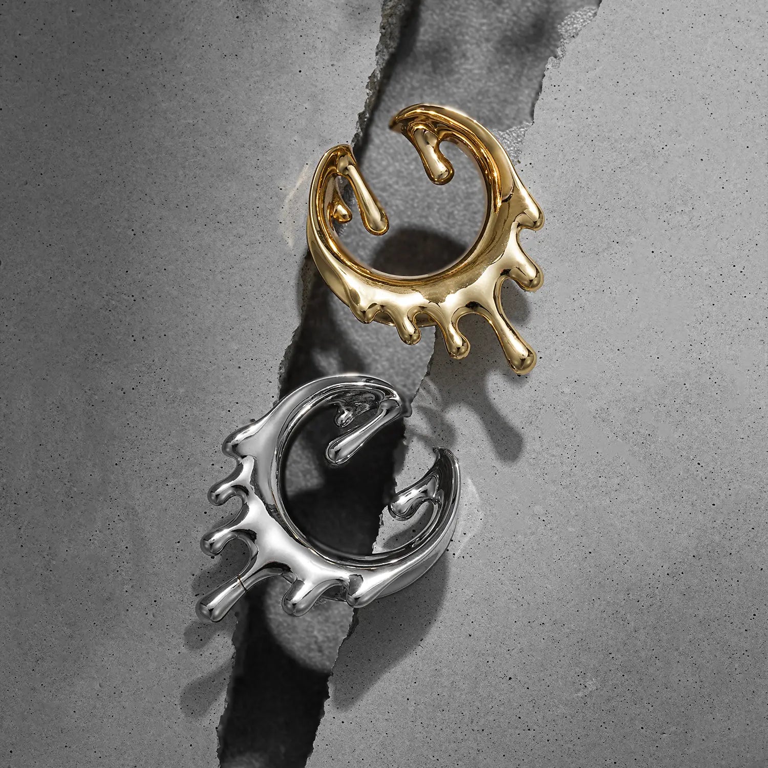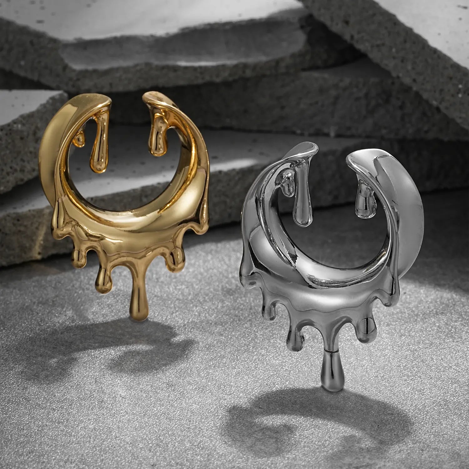 Experience the fluid elegance of our Melting Surreal Tunnels. These ear tunnels feature a unique, flowing design that captivates the eye. This item is sold as a pair.