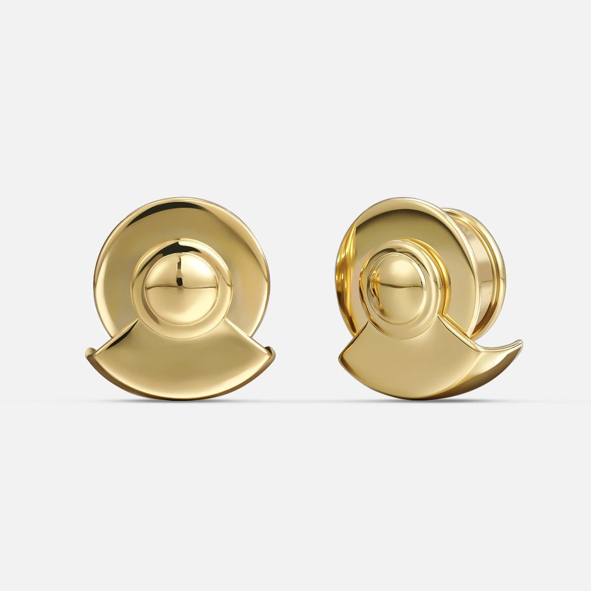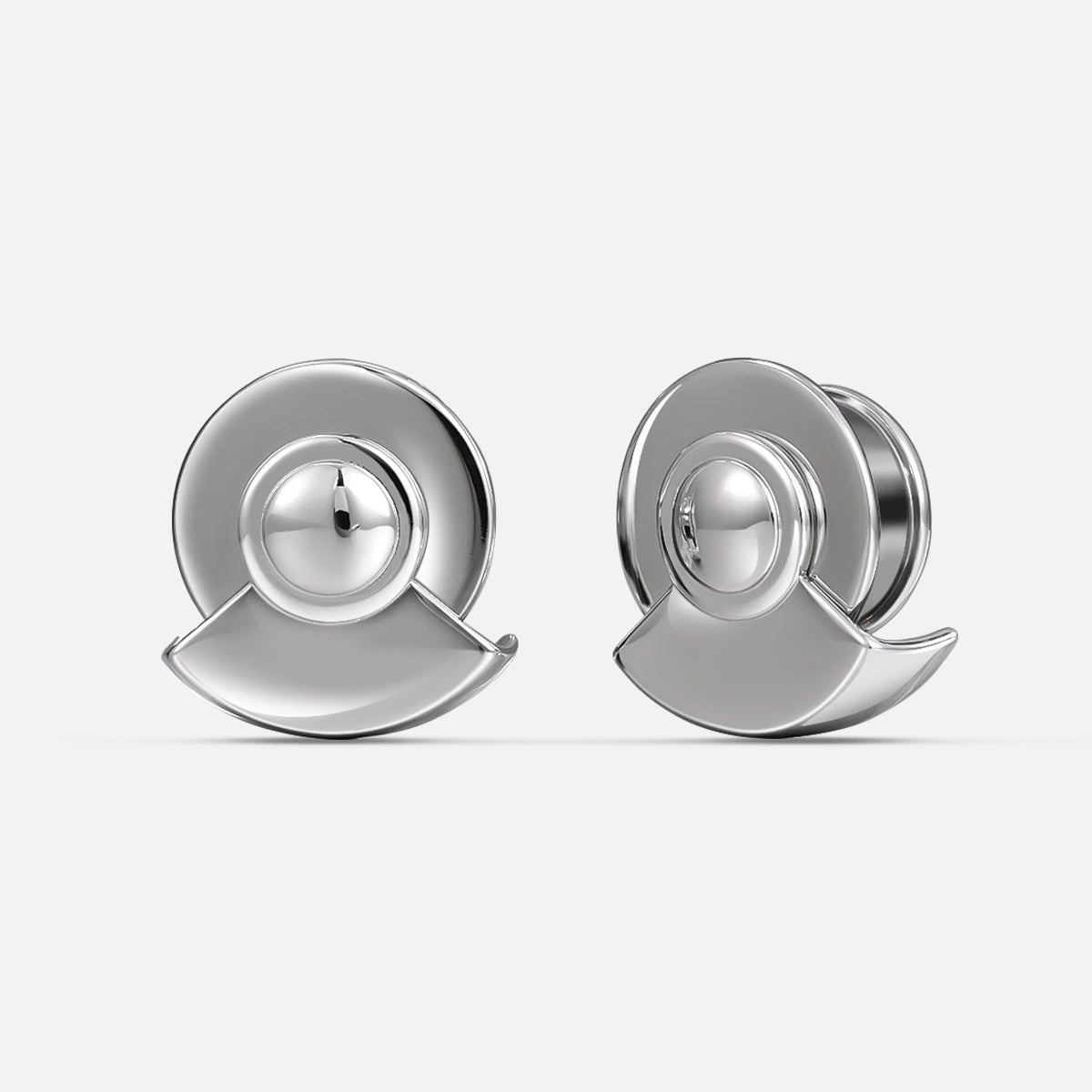 Sculpted in polished silver-tone, these plugs feature a turbine-inspired silhouette with geometric curves and a central dome. This item is sold as a pair.
