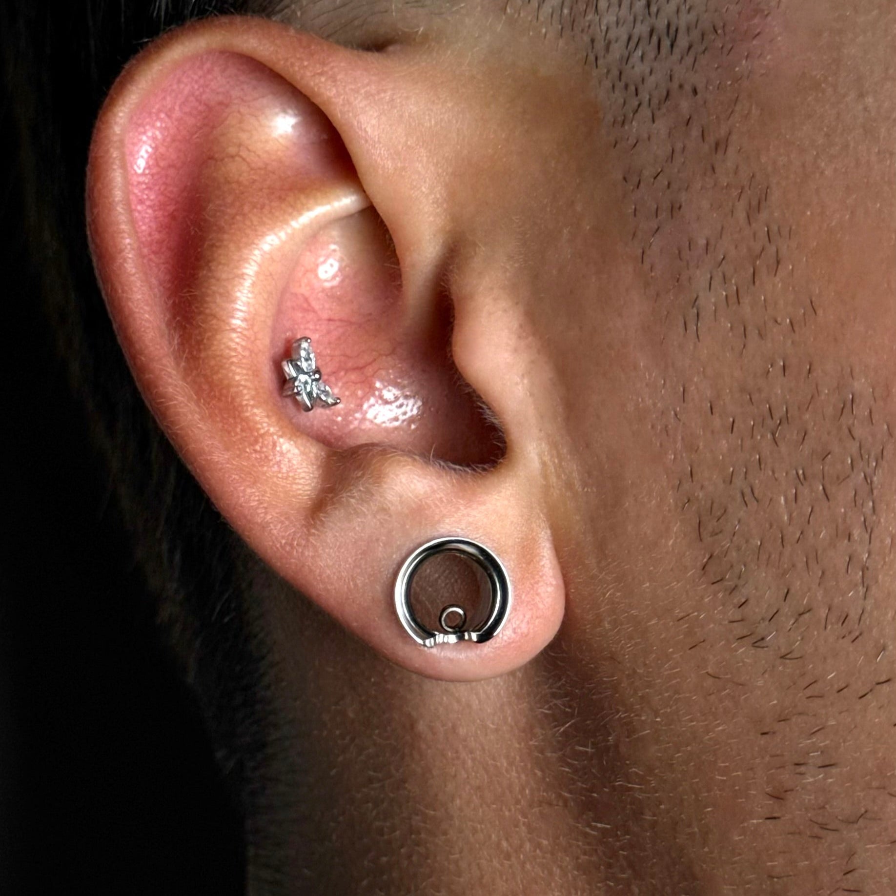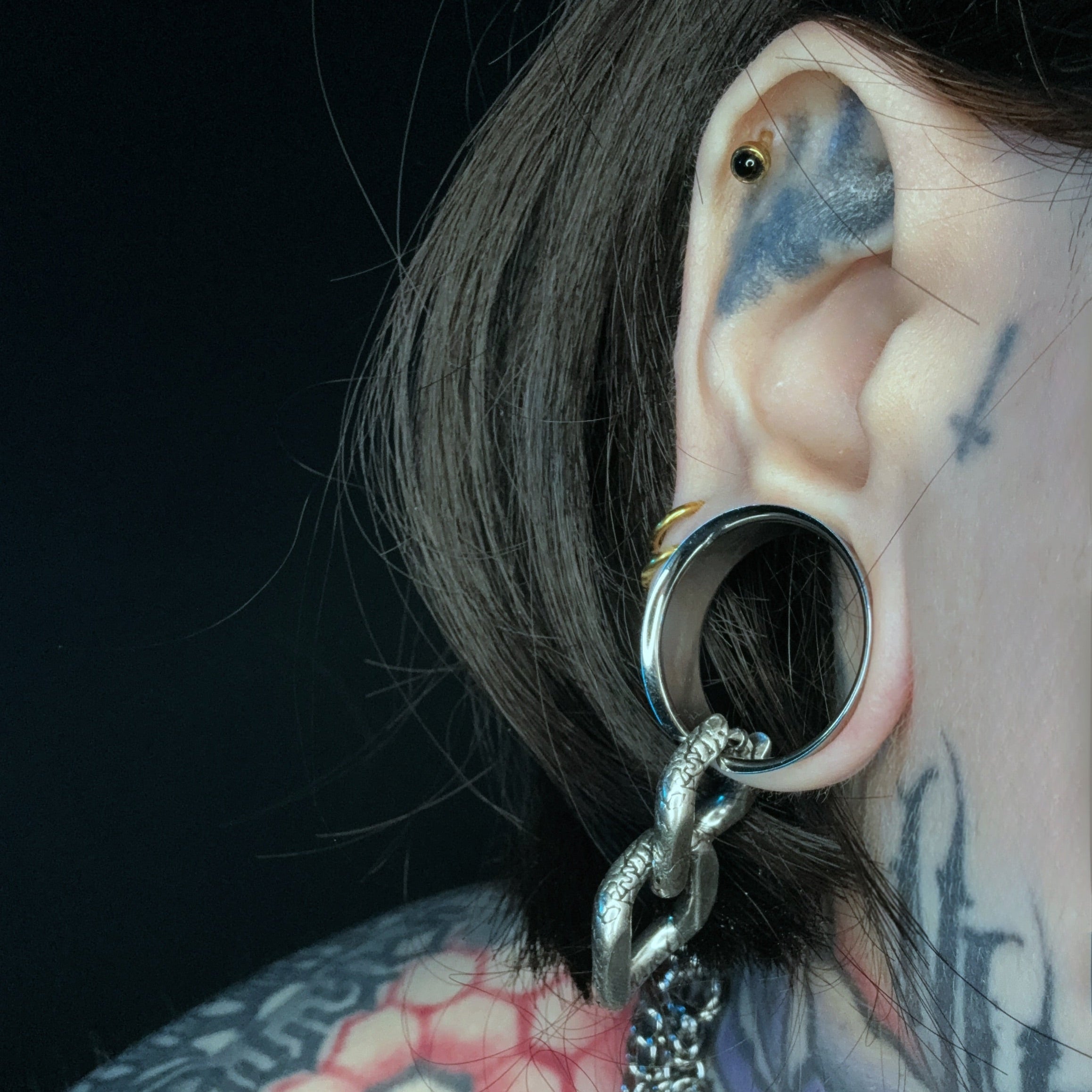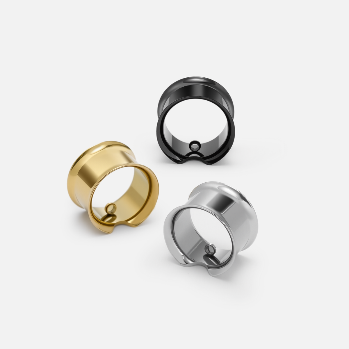 Modular Ring Tunnel blends a sleek tunnel shape with an integrated ring for endless styling options. This item is sold as a pair.