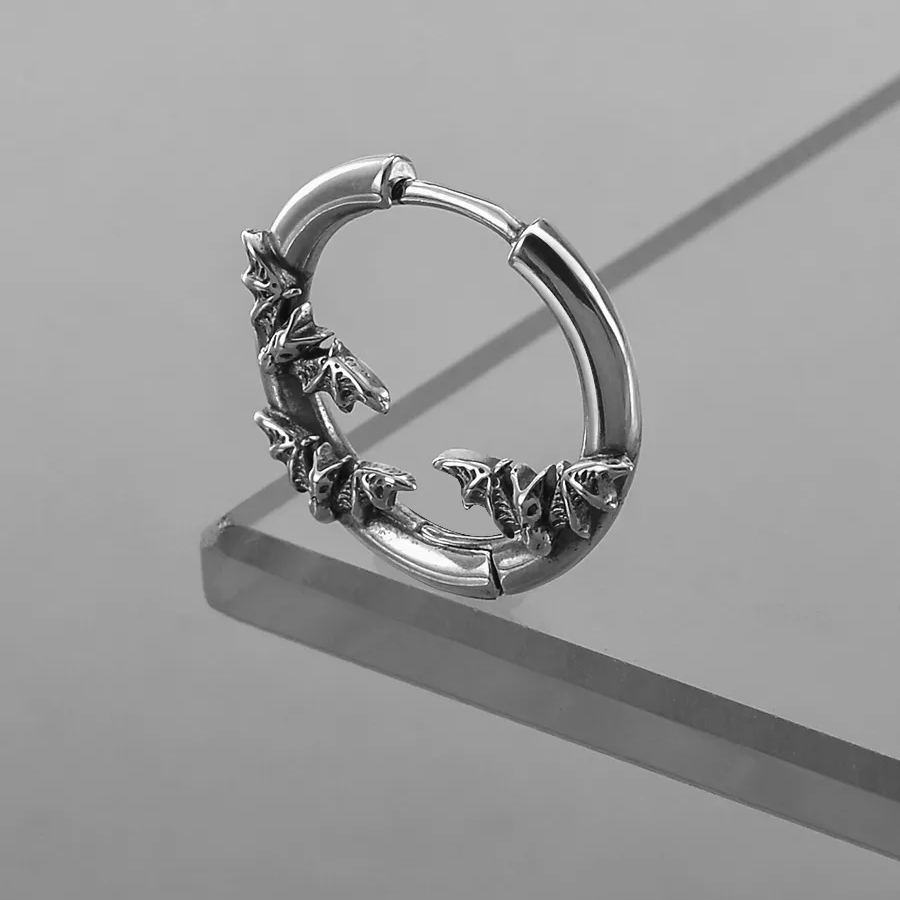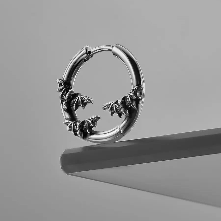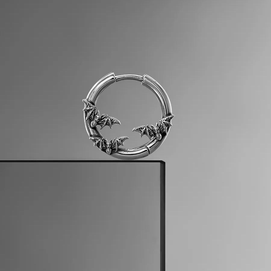 The combination of bat motifs and the circular structure symbolizes insight and intuition, ideal for those who appreciate bold, meaningful jewelry and value personal expression.