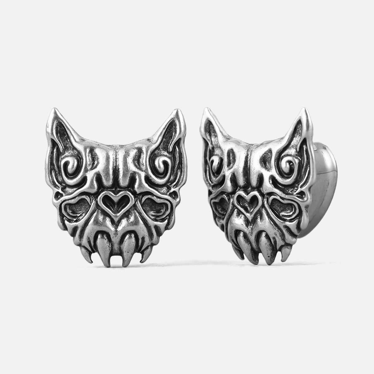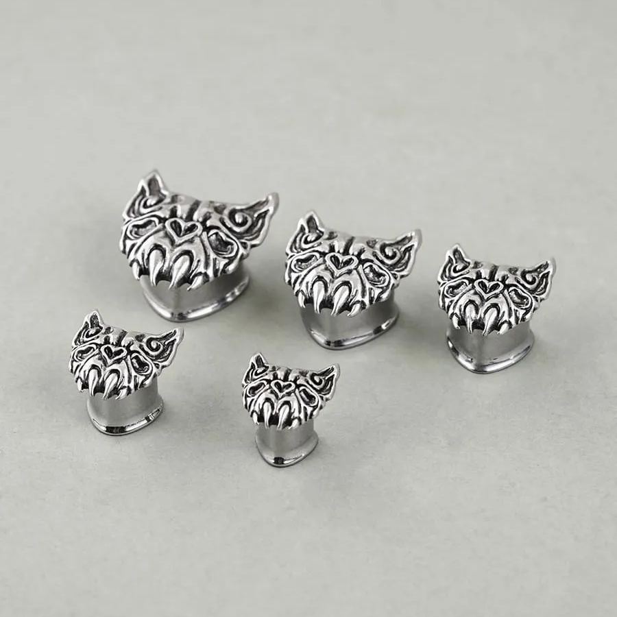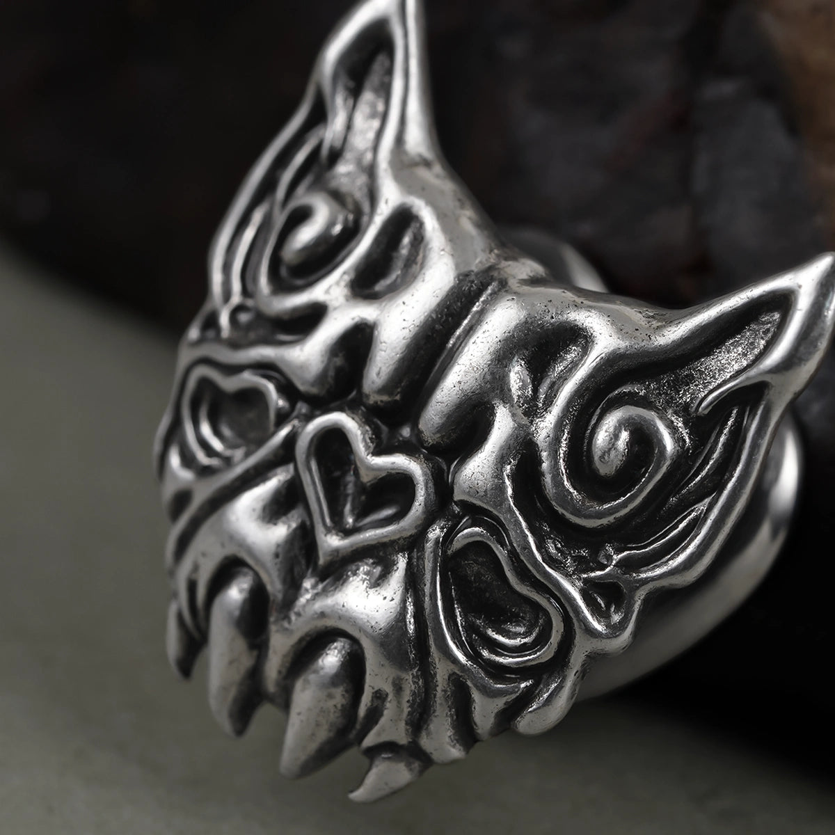 Nightmare Mask Plugs feature a complex beast face design with sharp ears and deep eye sockets, exuding power and mystery. This item is sold as a pair.