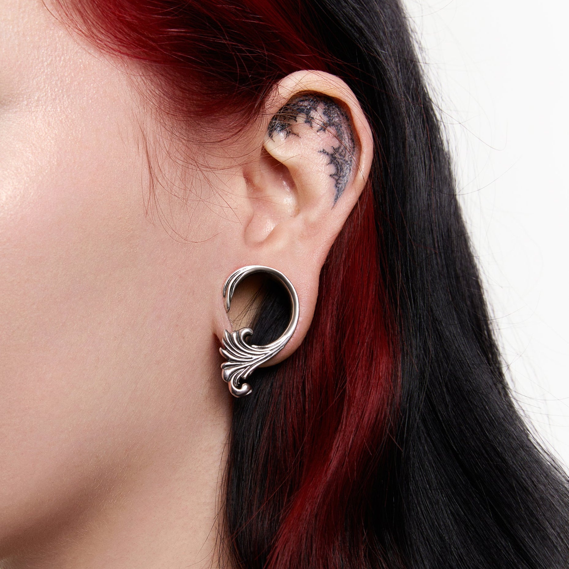 Inspired by the fluid grace of ocean waves, these tunnels feature a sleek, flowing design that captures the essence of the sea. This item is sold as a pair.