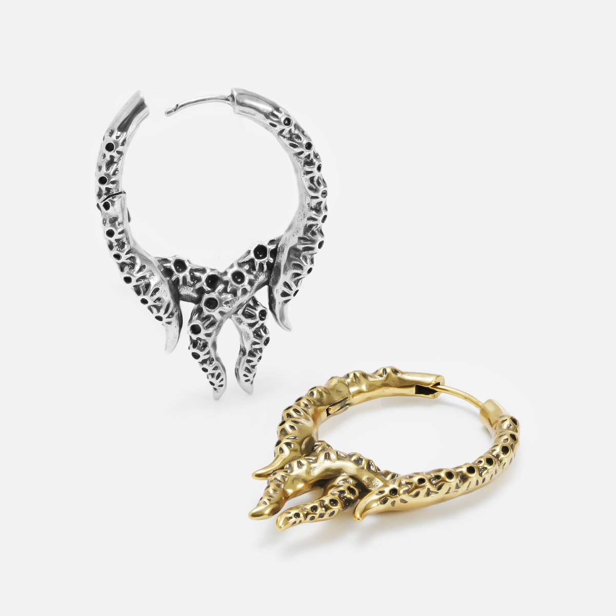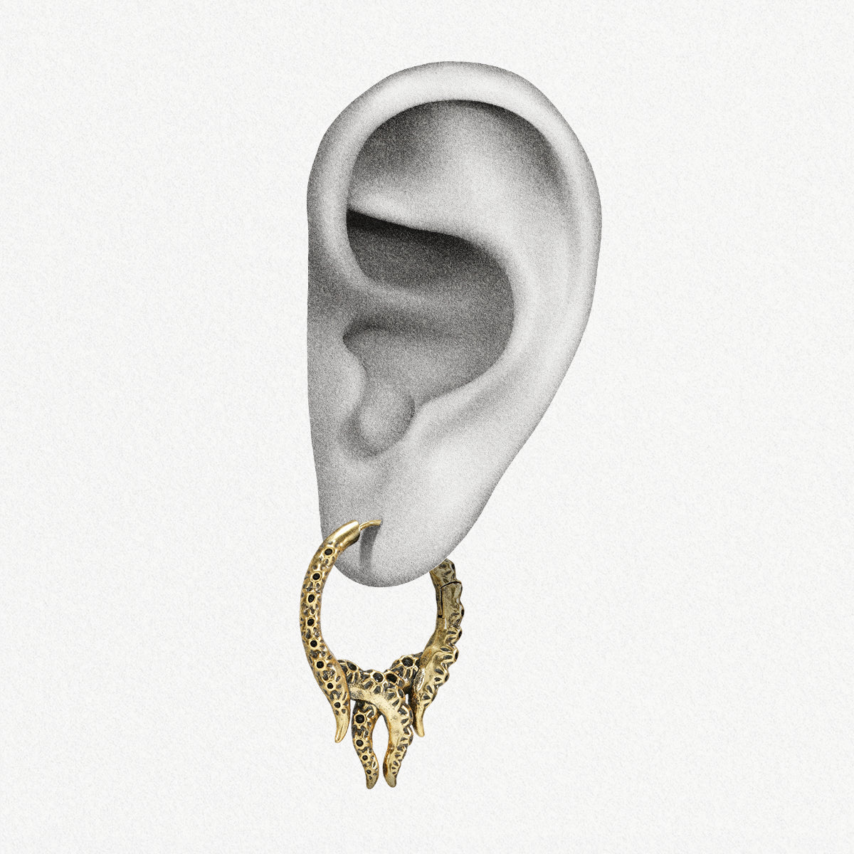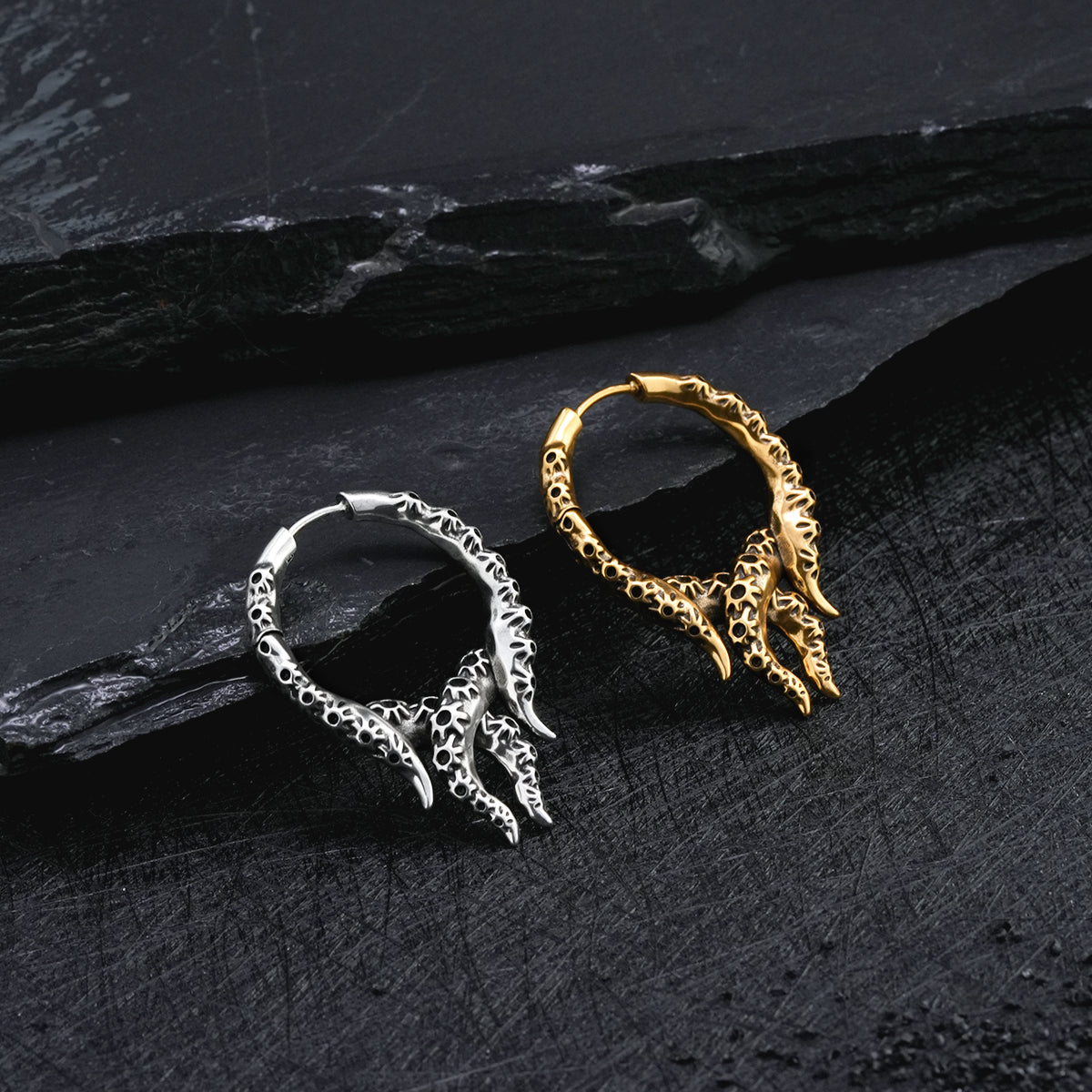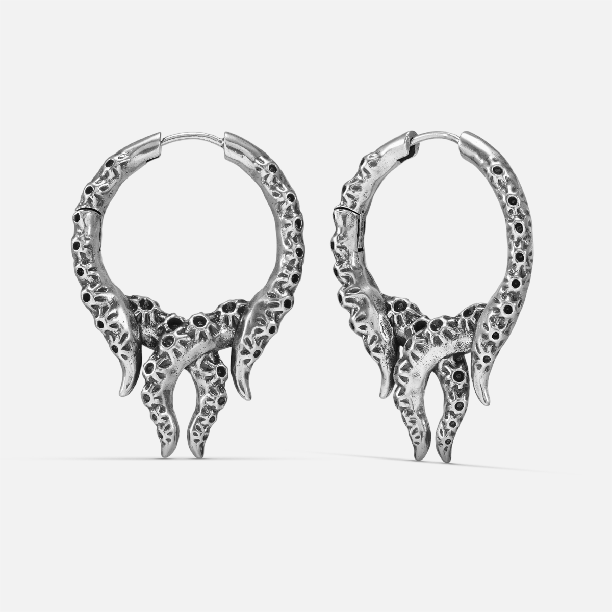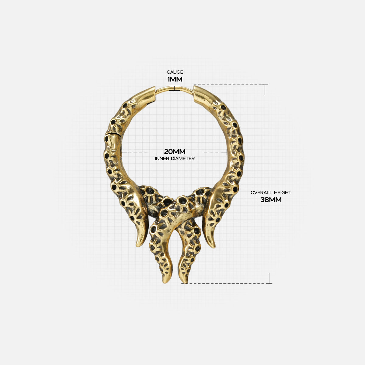 The Octopus Tentacle Earrings feature a fluid, organic design inspired by the graceful movement of octopus tentacles, perfectly hugging the ear for a unique touch. This item is sold as a pair.