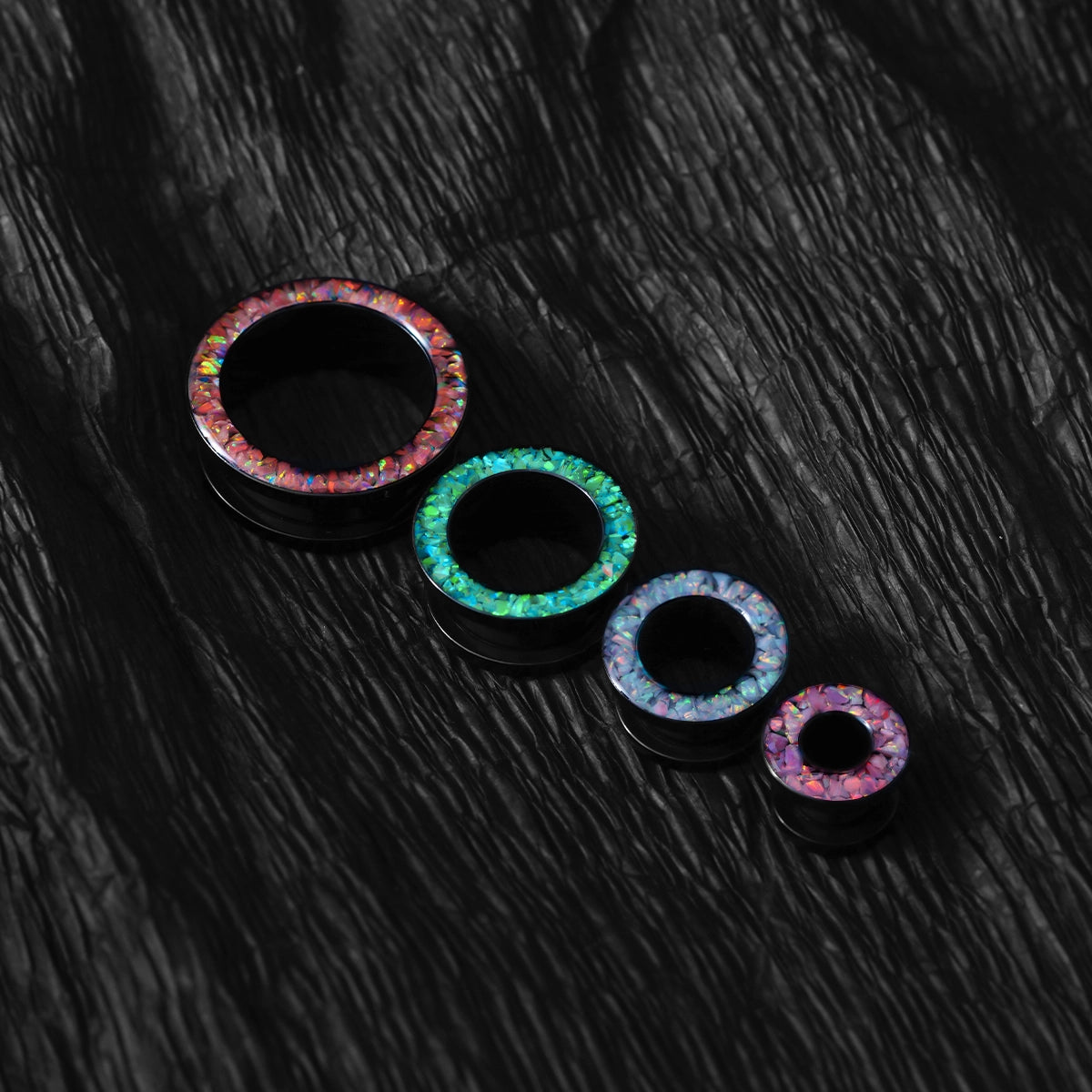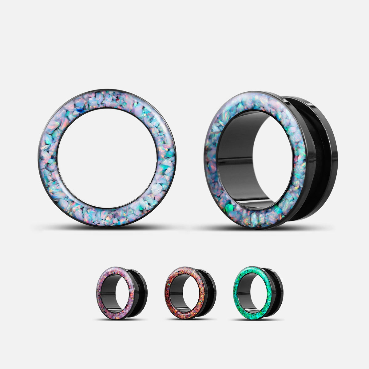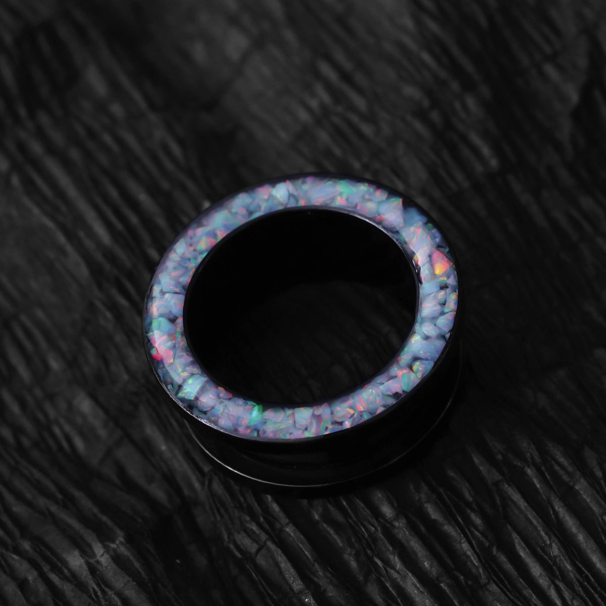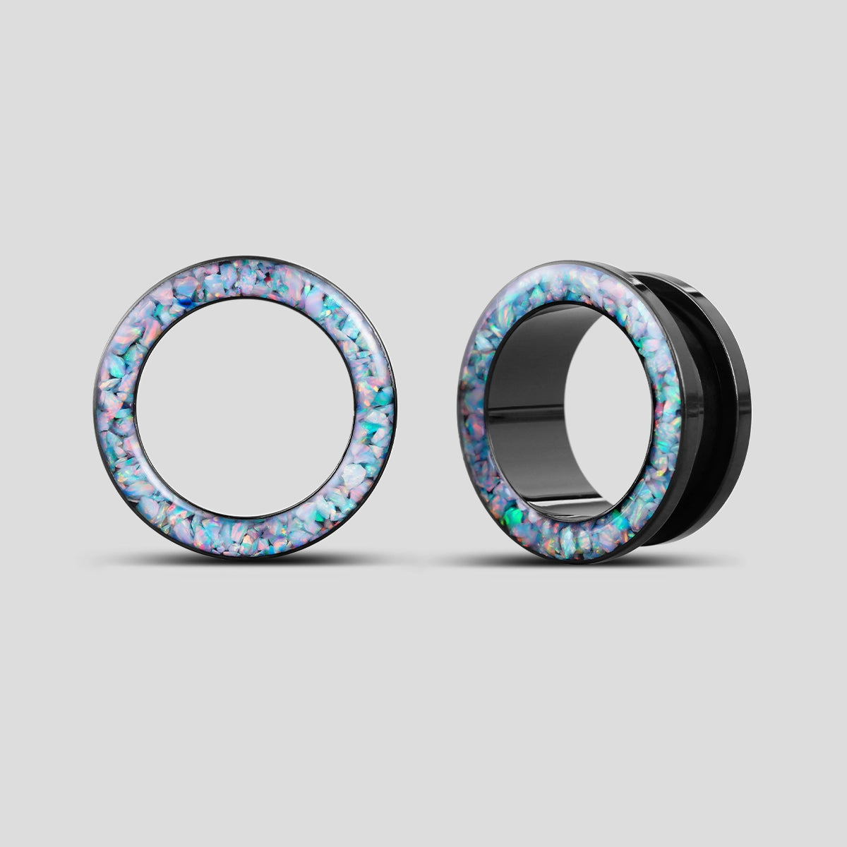 Opal Radiance Tunnels showcase a mesmerizing glow with a blend of modern and classic design, ideal for piercings. This item is sold as a pair.