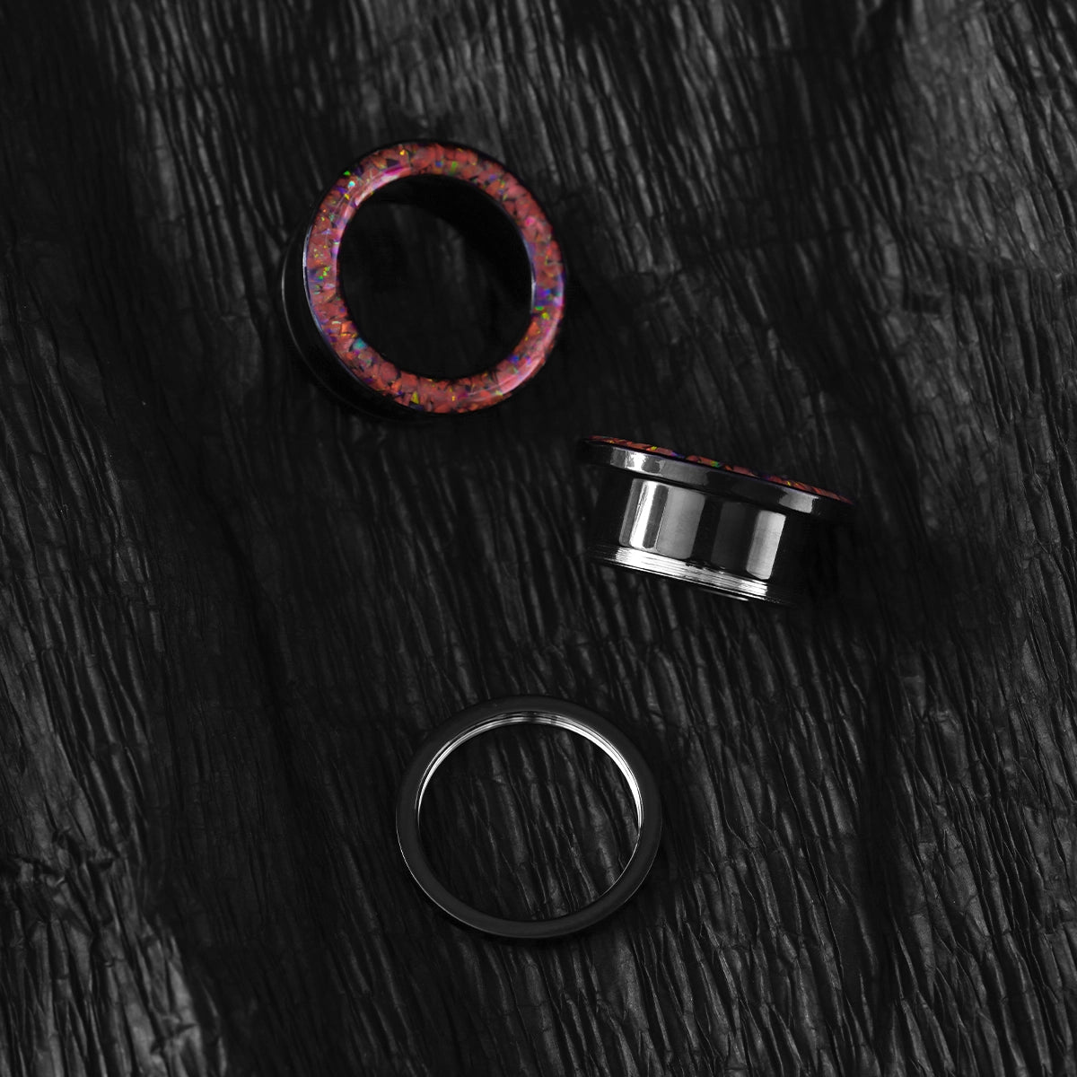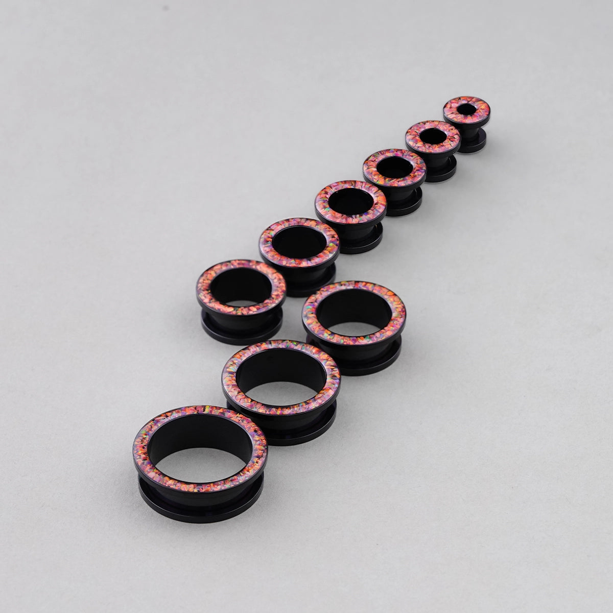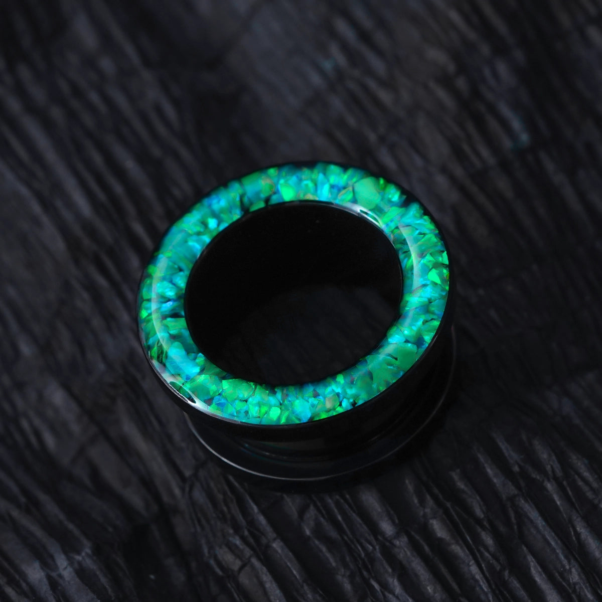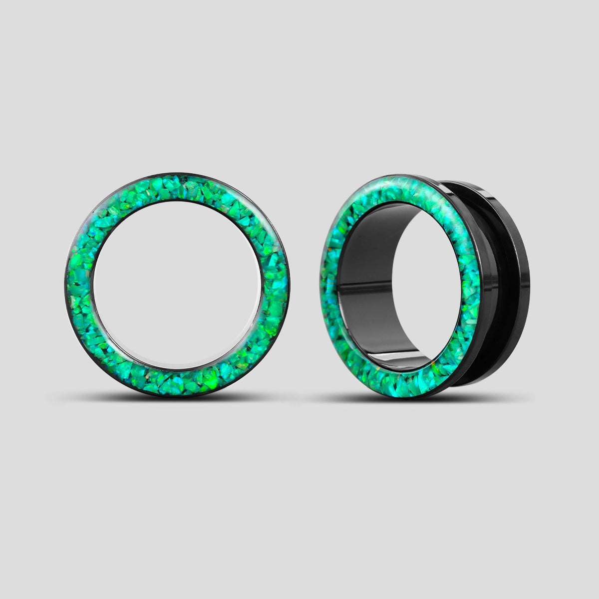 Opal Radiance Tunnels showcase a mesmerizing glow with a blend of modern and classic design, ideal for piercings. This item is sold as a pair.