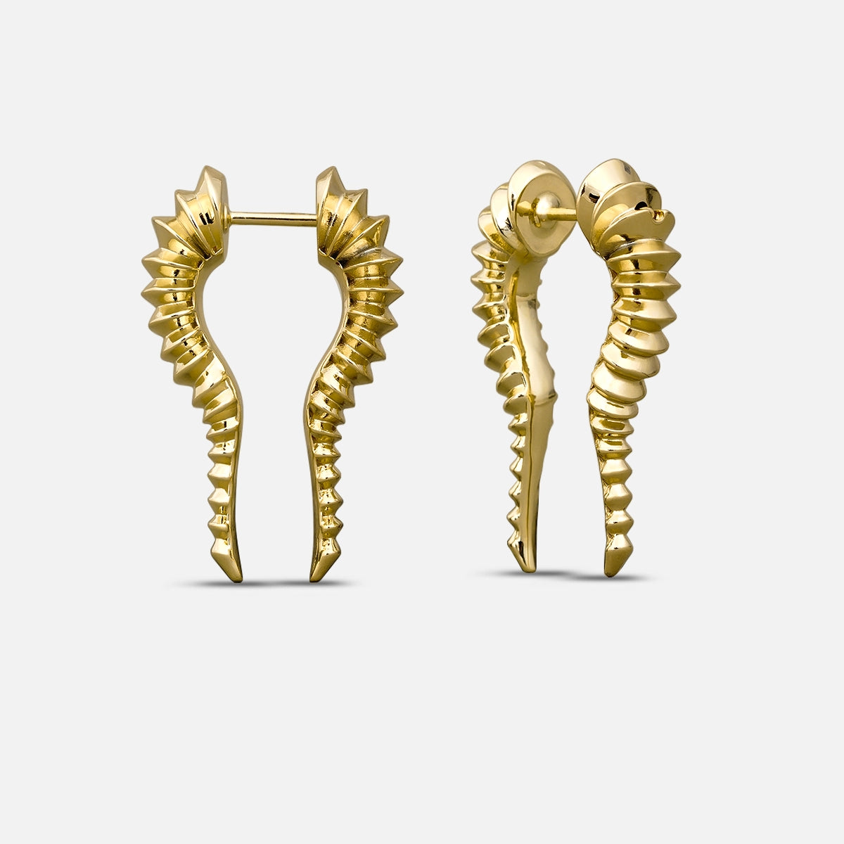 Inspired by the graceful curves of natural spirals, these earrings capture the essence of organic beauty. The design echoes the fluidity found in nature, reminiscent of swirling seashells. This item is sold as a pair.