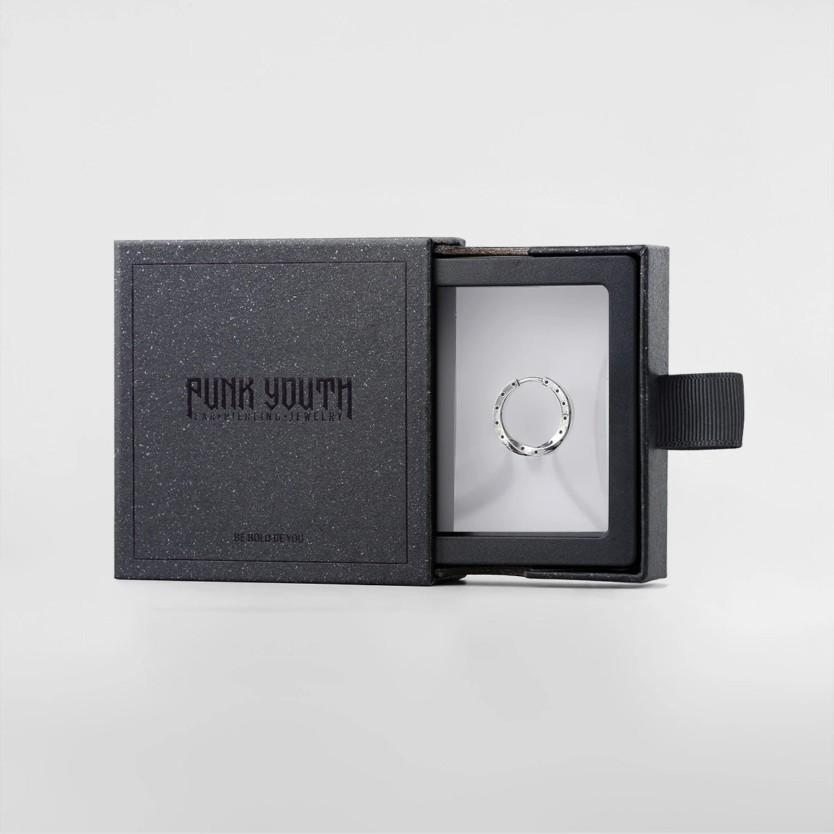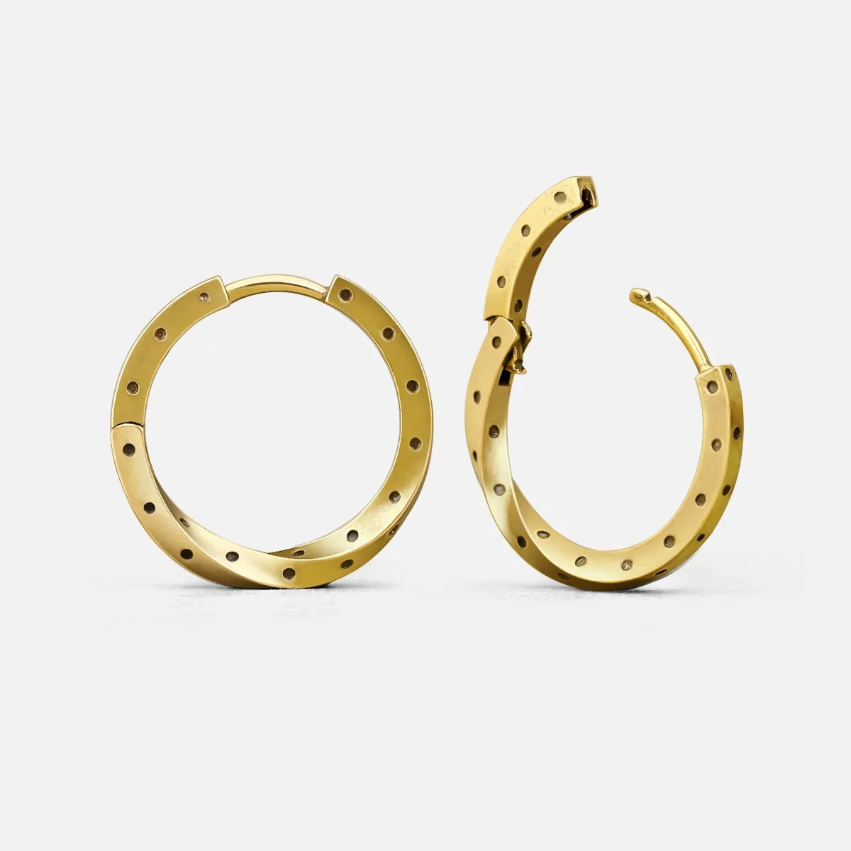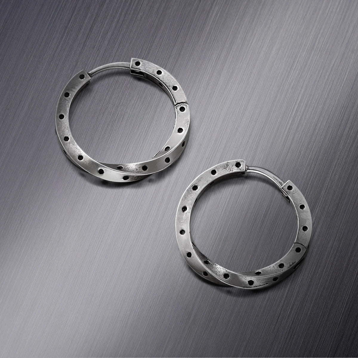 These earrings feature a sleek, modern hoop design with evenly spaced perforations for a unique texture. This item is sold as a pair.