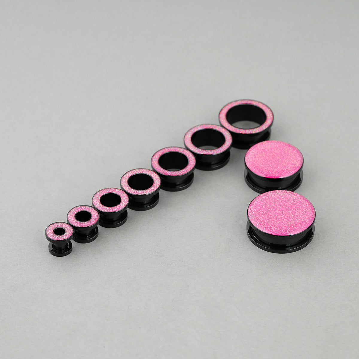 Our Pink Glam Pop Plugs feature a dazzling pink surface with a high-gloss finish, offering a vibrant and chic look with smooth, rounded edges. This item is sold as a pair.