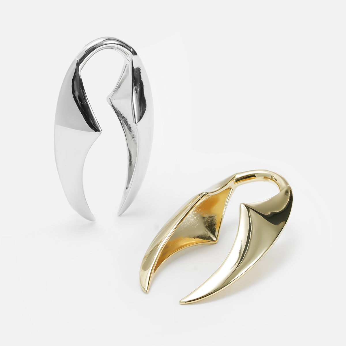 Predator Curve Ear Weights feature sharp, arched blades that taper into sculptural points with a symmetrical V shape. This item is sold as a pair.