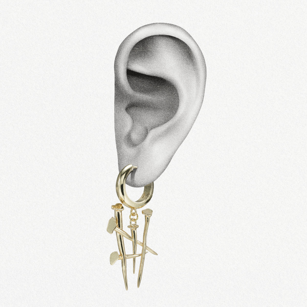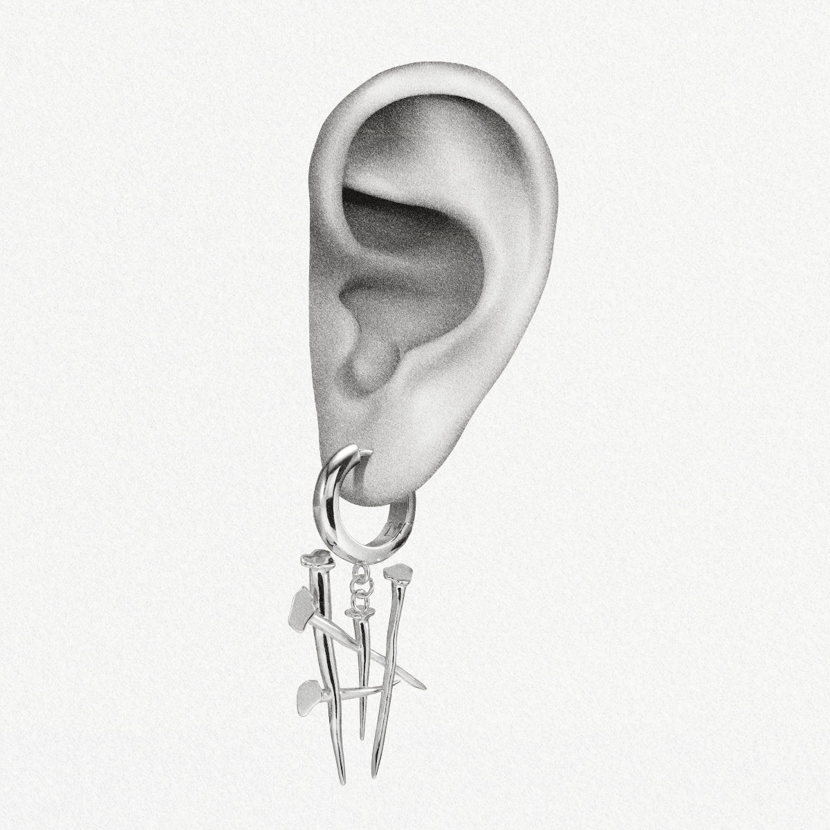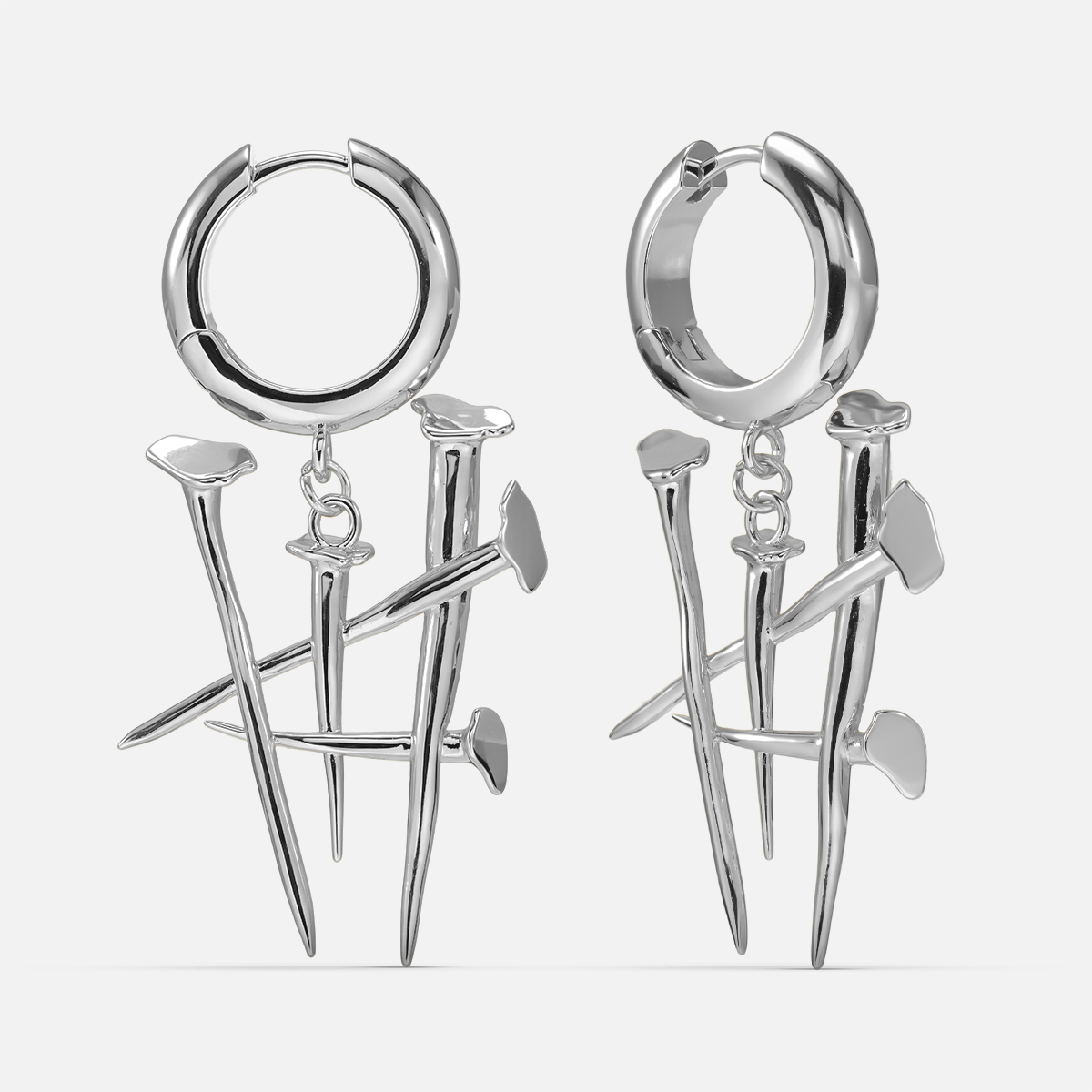 The Ritual Nails Earrings feature a striking nail-inspired design, blending industrial aesthetics with contemporary art for a bold statement. This item is sold as a pair.